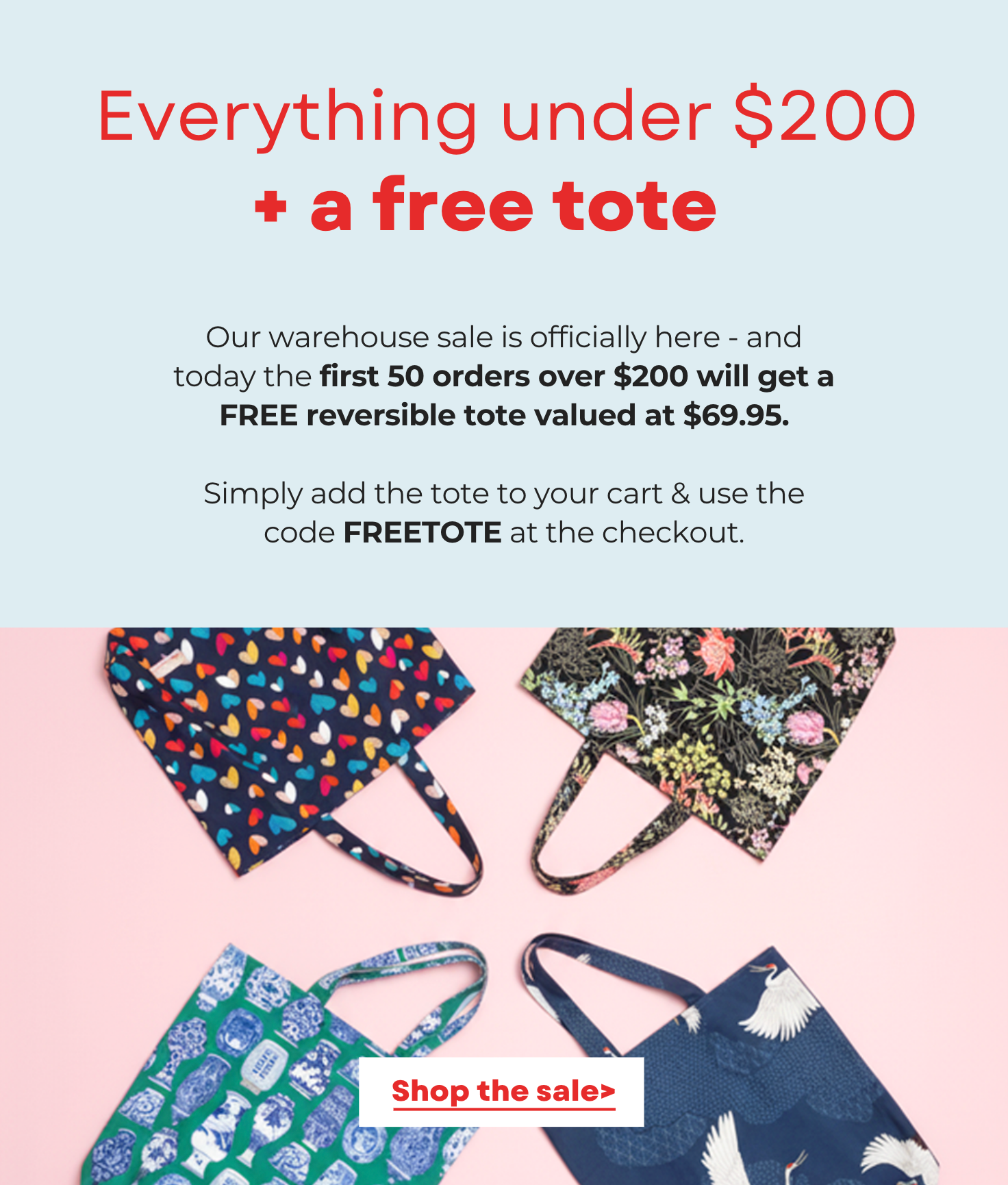 WAREHOUSE SALE - FREE TOTE