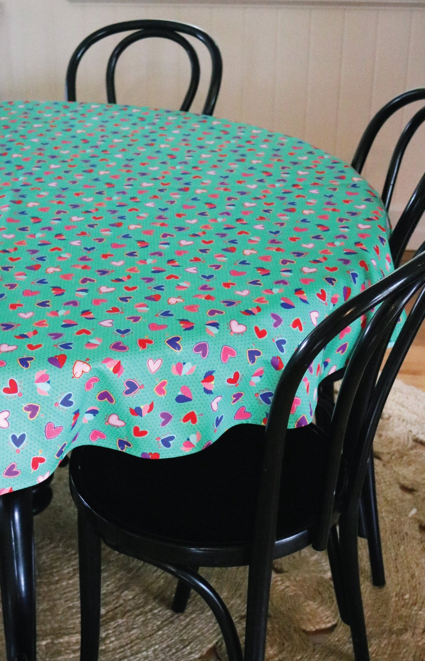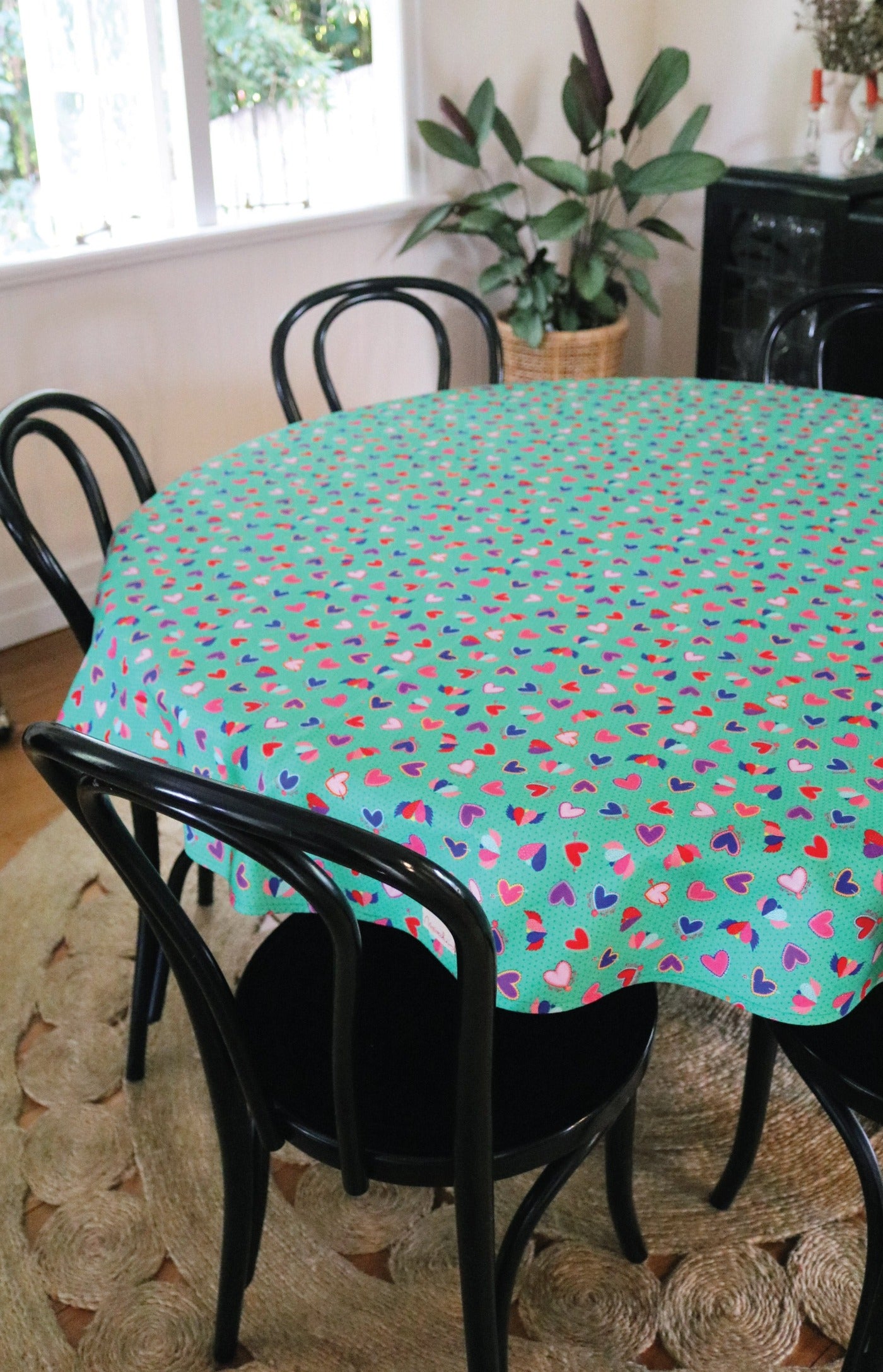 Tablecloth Round in queen of hearts green