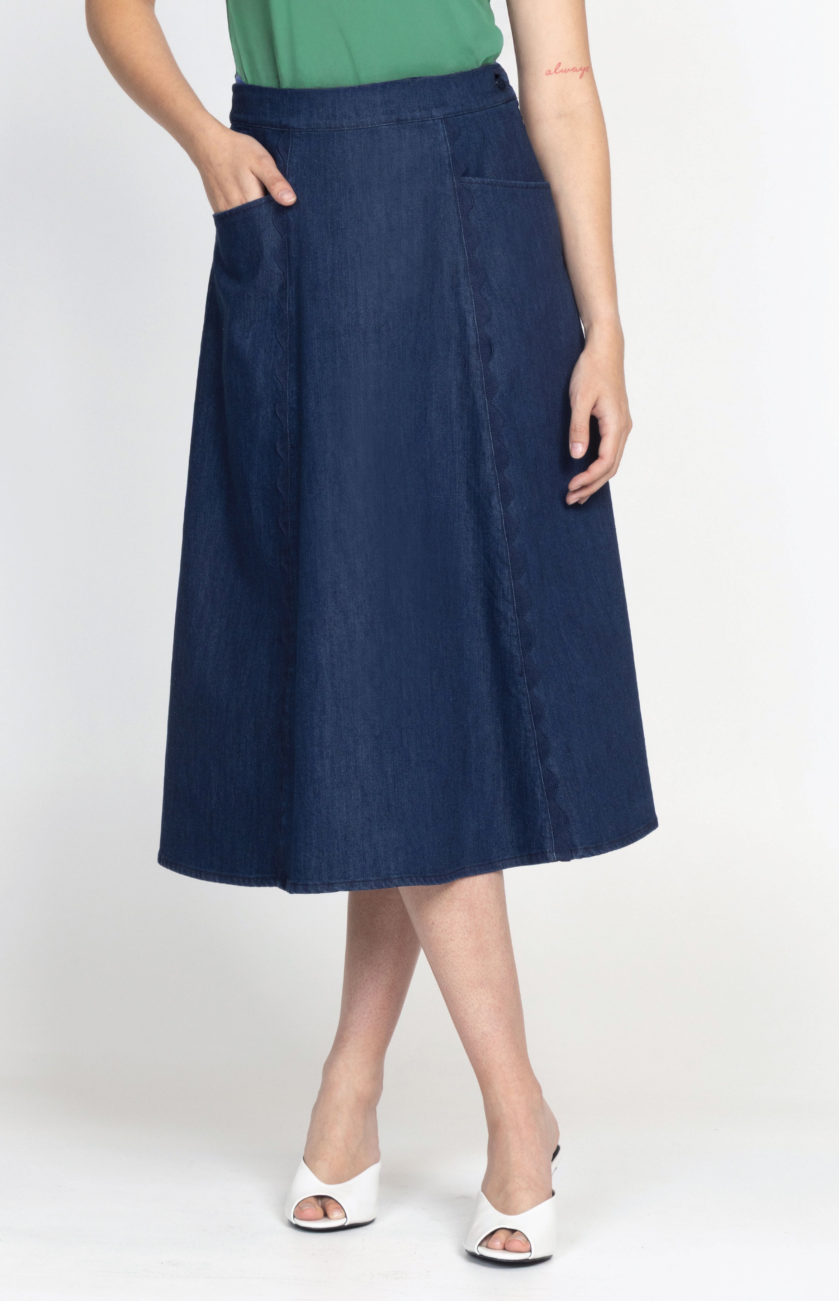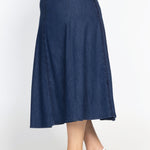 Ooze effortless style in our fabulous new denim Bella Skirt, where comfort meets chic. She features elastic at the back for an easy fit, panel lines for shape, and pockets!