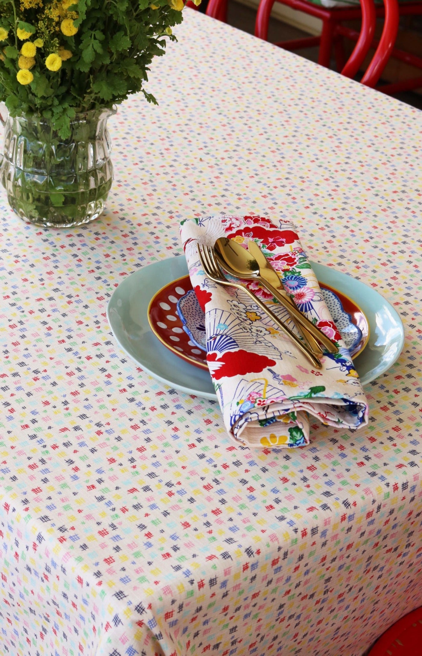 Our tablecloths are made from the same thick textured cotton that we use for our tote bags. They are the perfect addition to your table for the garden party of your dreams or just for day to day.