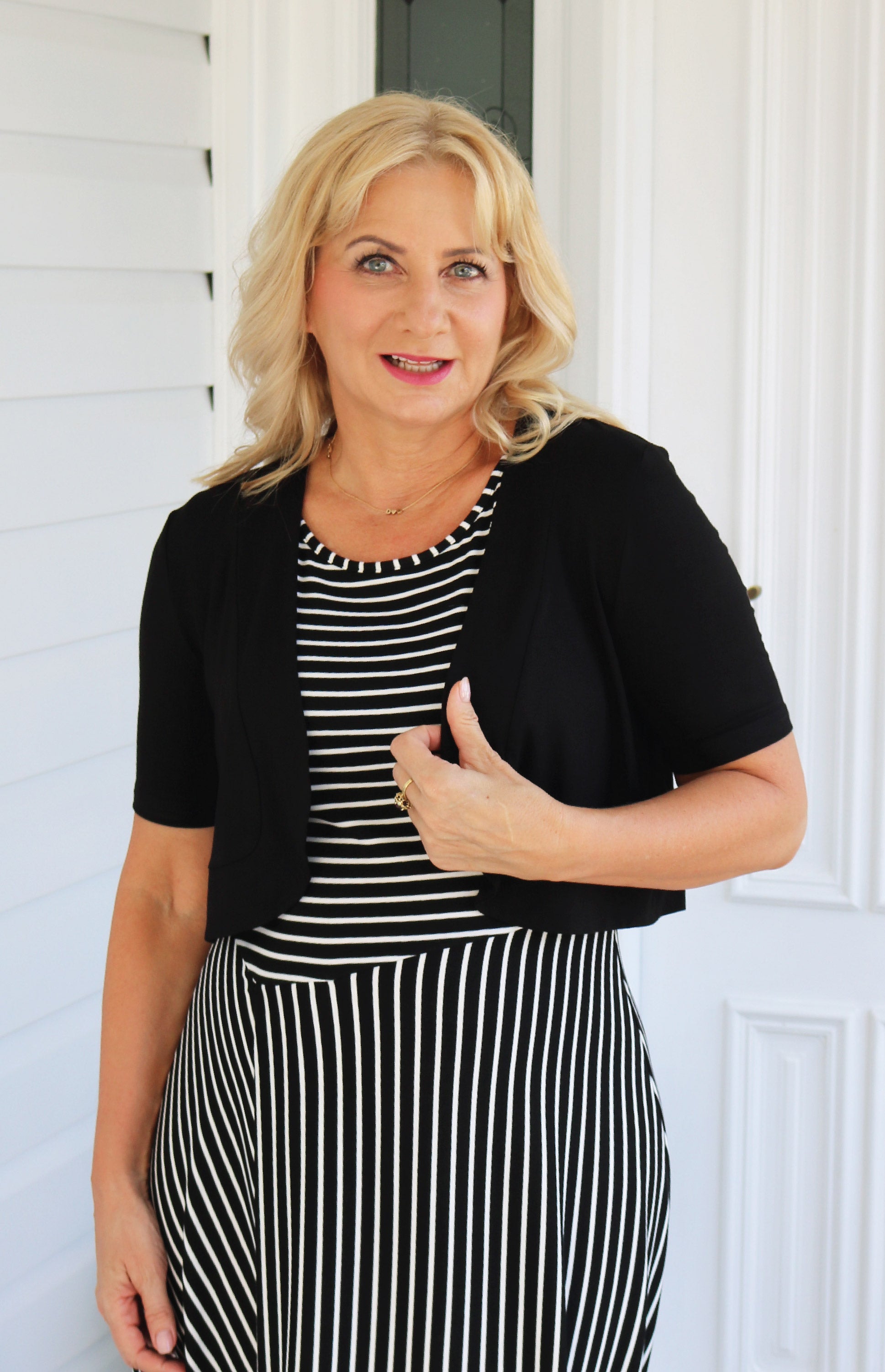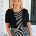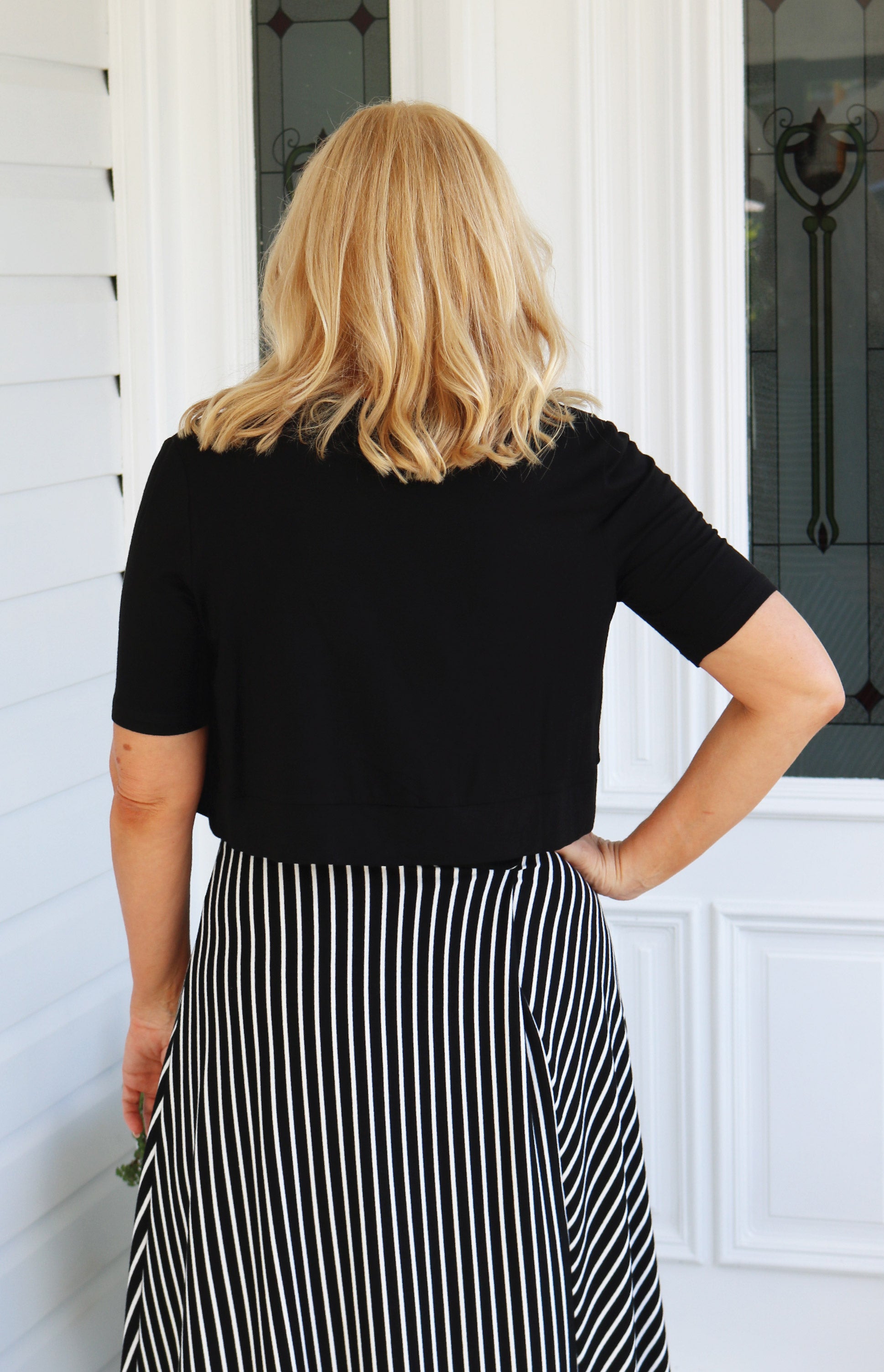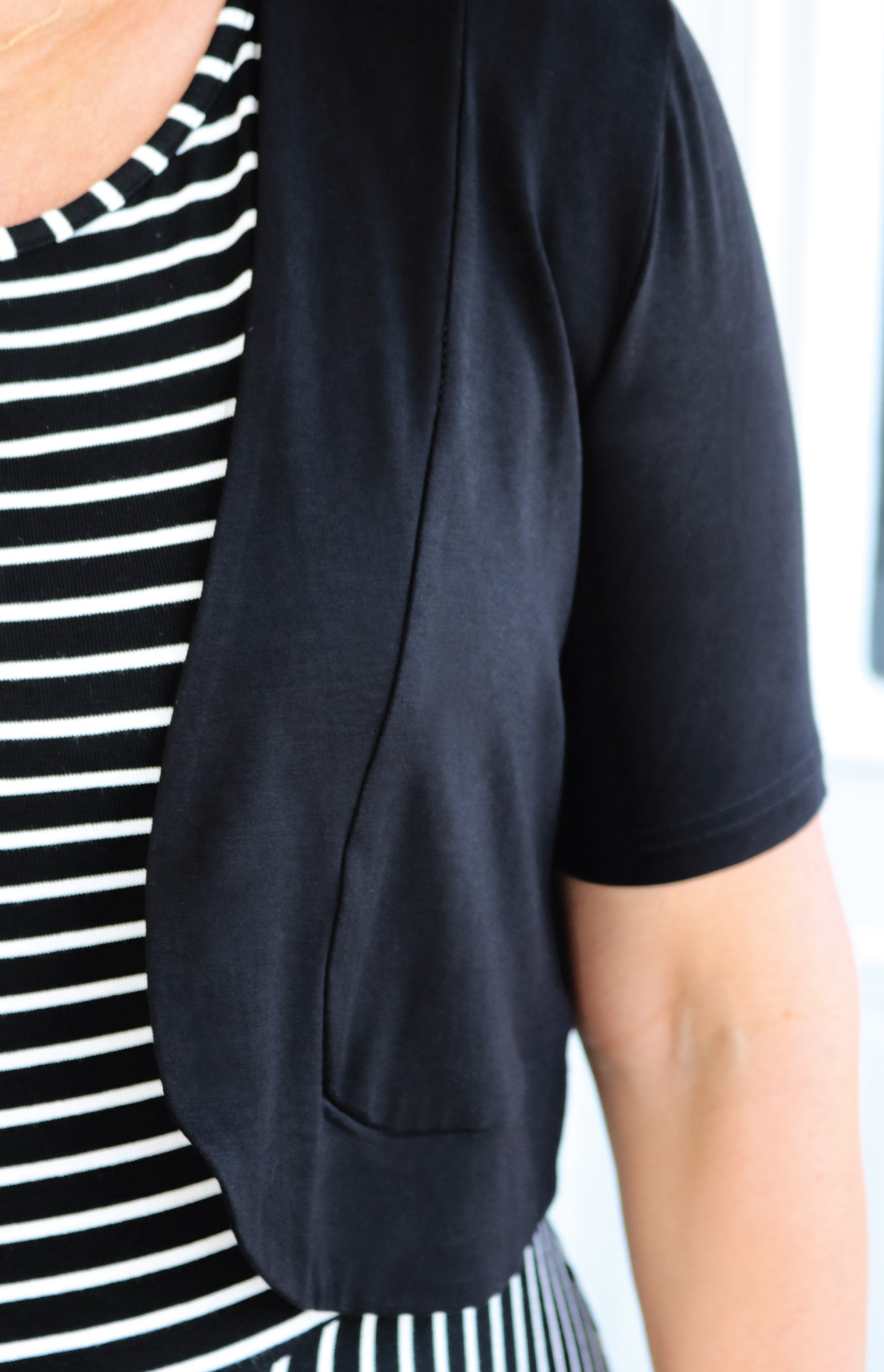 A classic cropped cardie in oh so soft bamboo which is eco-friendly and a natural fibre that breathes. The perfect layering piece.