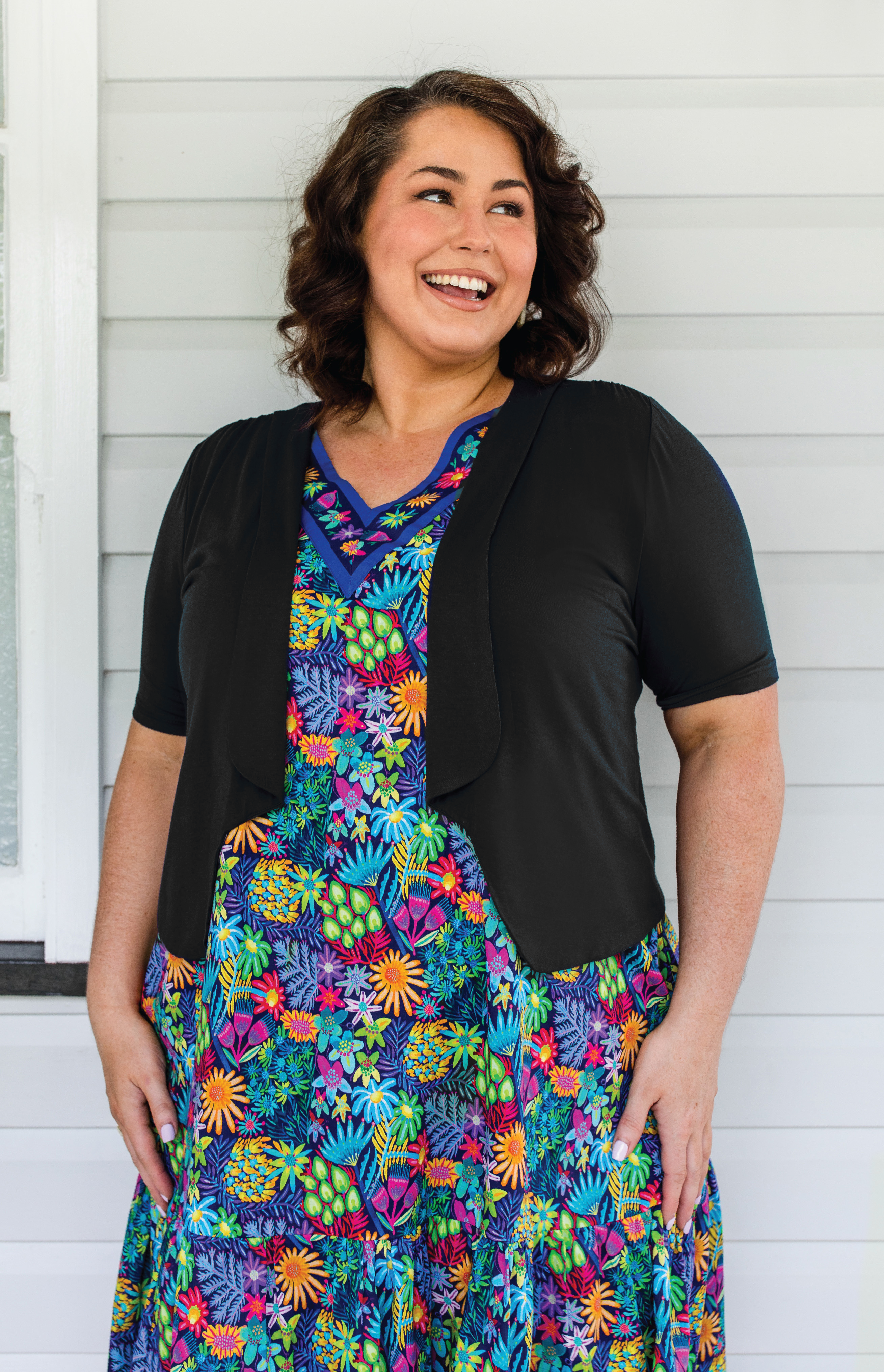 A classic cardie in oh so soft bamboo which is eco-friendly and a natural fibre that breathes. The perfect layering piece.