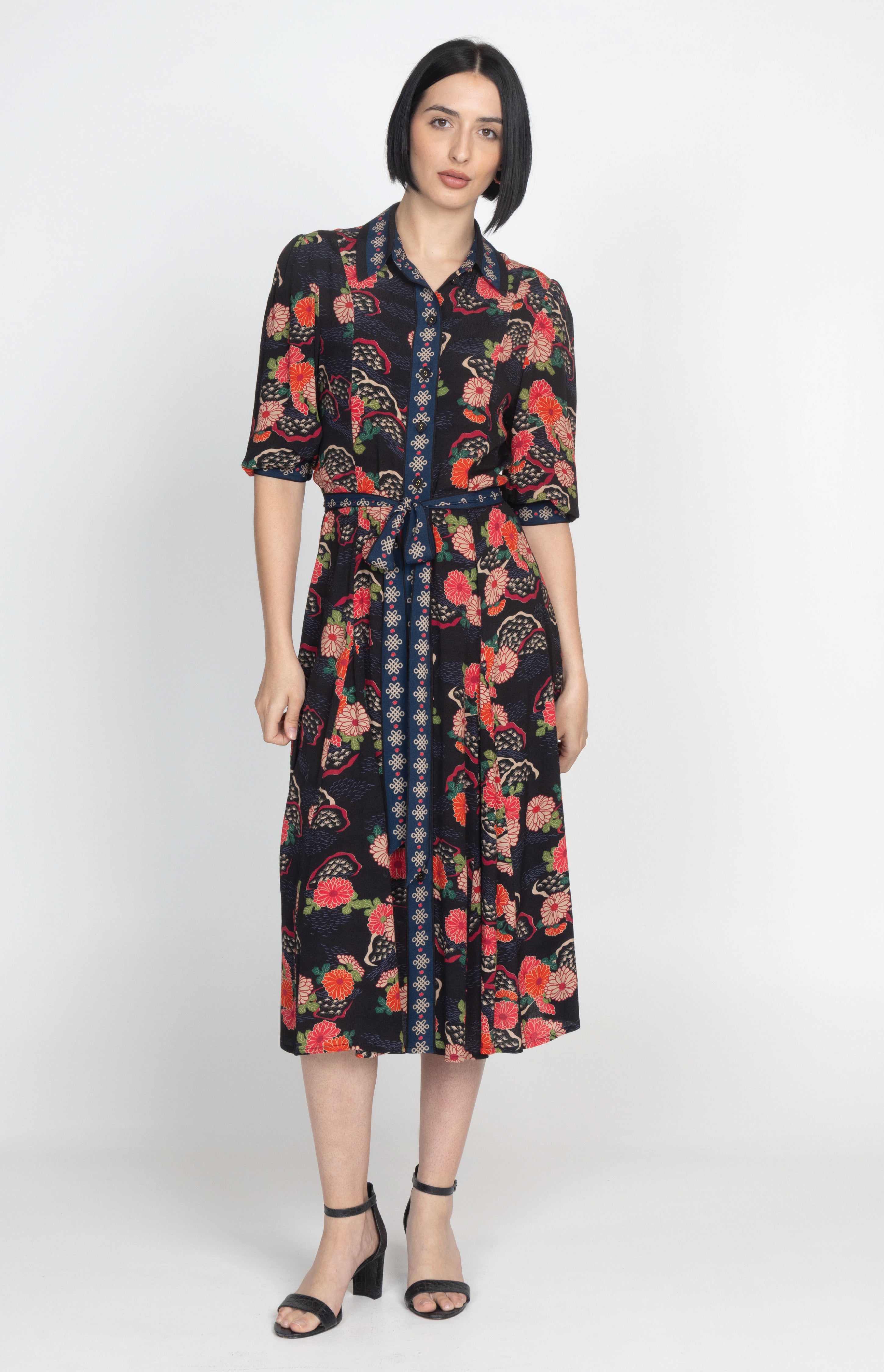 She features a contrast centre front panel, sleeve cuffs, and collar for a special Maiocchi twist. Add the removable waist tie to dress her up, or leave it off for effortless everyday style.