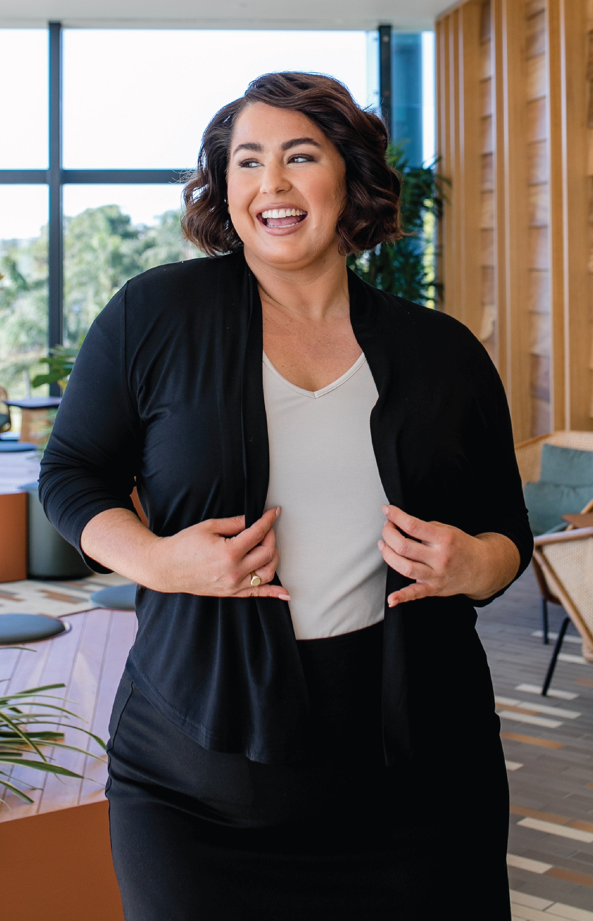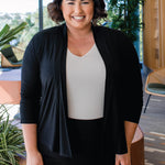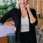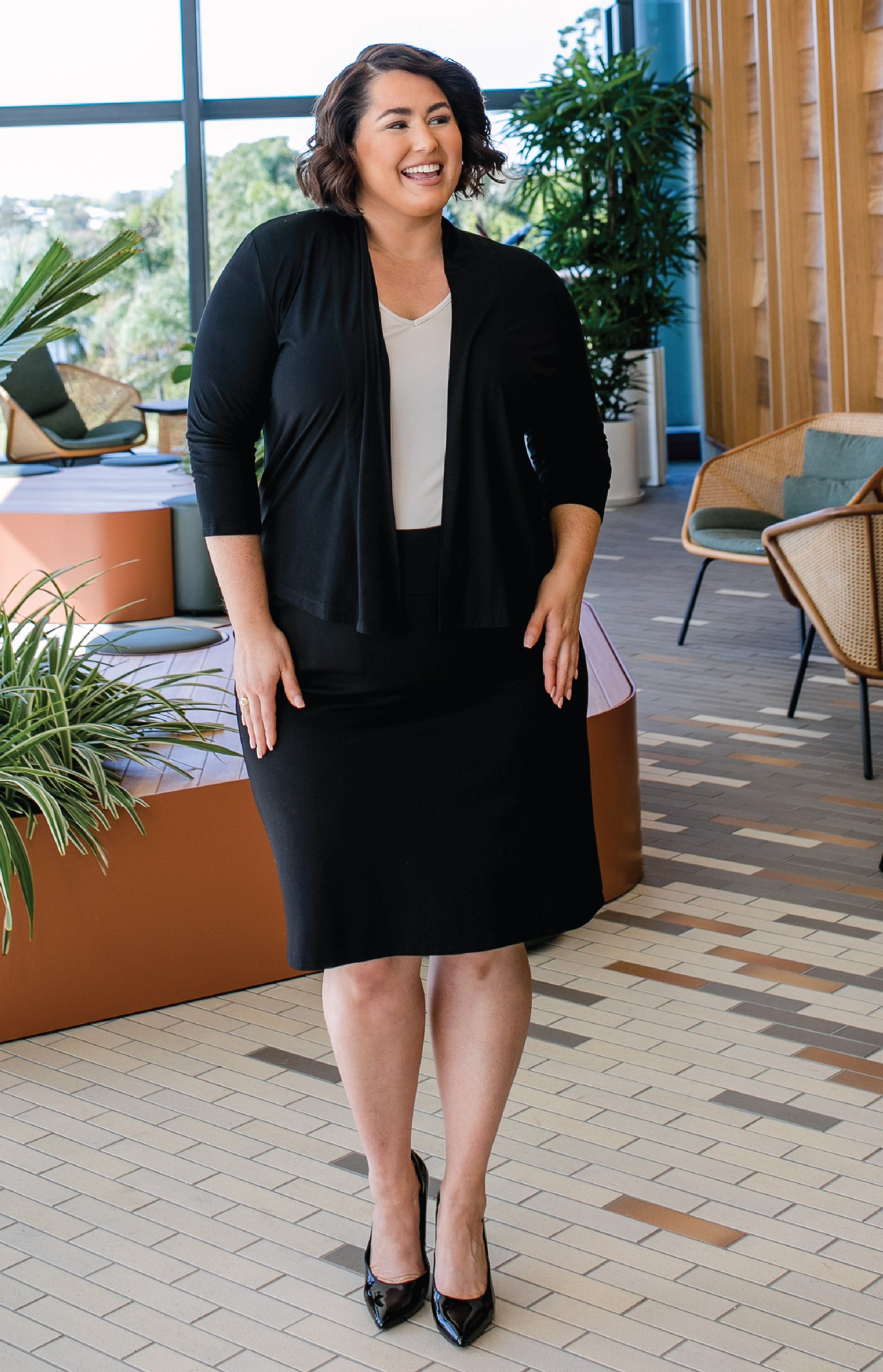A classic cardie in oh so soft bamboo. You will wear this wardrobe wonder over and over again. It will make the perfect cool cover up for all your summer frocks. A classic style in our beautiful bamboo spandex – oh so soft, eco-friendly and a natural fibre that breathes.