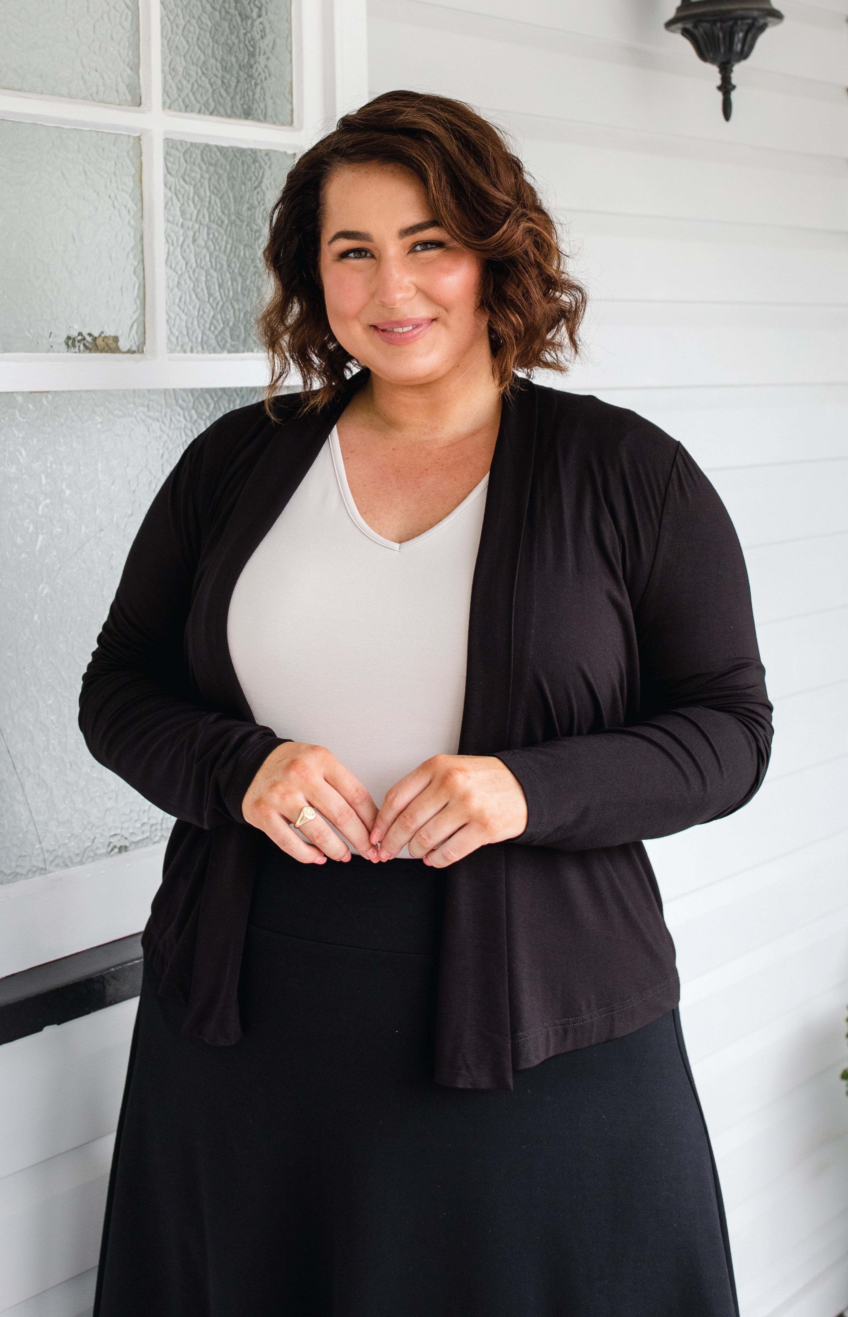 Our Bella Cardie in buttery soft, breathable bamboo is the perfect layering piece that you will wear and love forever.