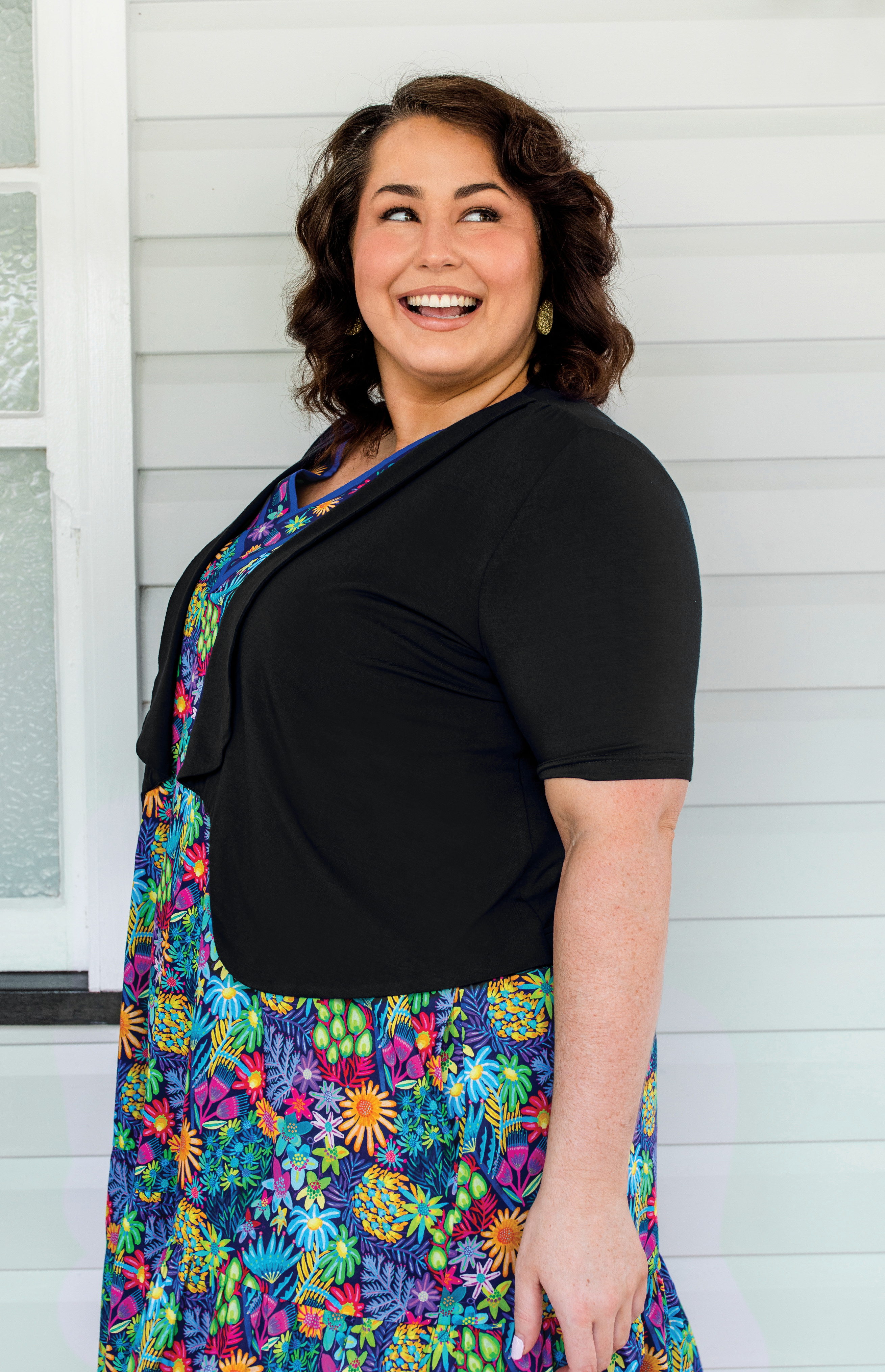 A classic cardie in oh so soft bamboo which is eco-friendly and a natural fibre that breathes. The perfect layering piece.