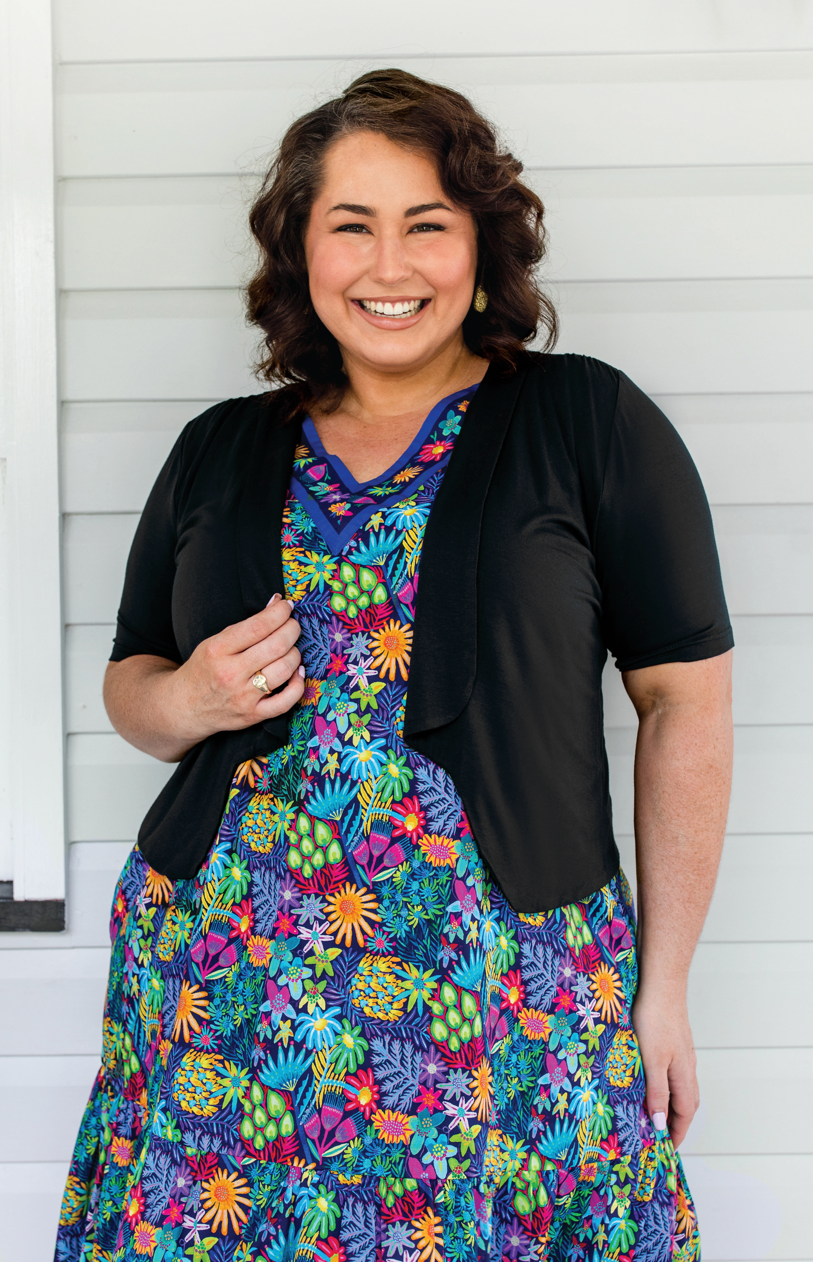 Our Designer Deanne (blonde) is wearing size 8. Her bust is 97cm; Waist 80cm; Hip: 103cm.