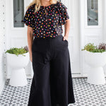 Step out in style and comfort in the Jane, she is the perfect wear anywhere pant, with her wide cropped leg. You can wear Jane to work or on weekends for an effortless yet oh so chic look.