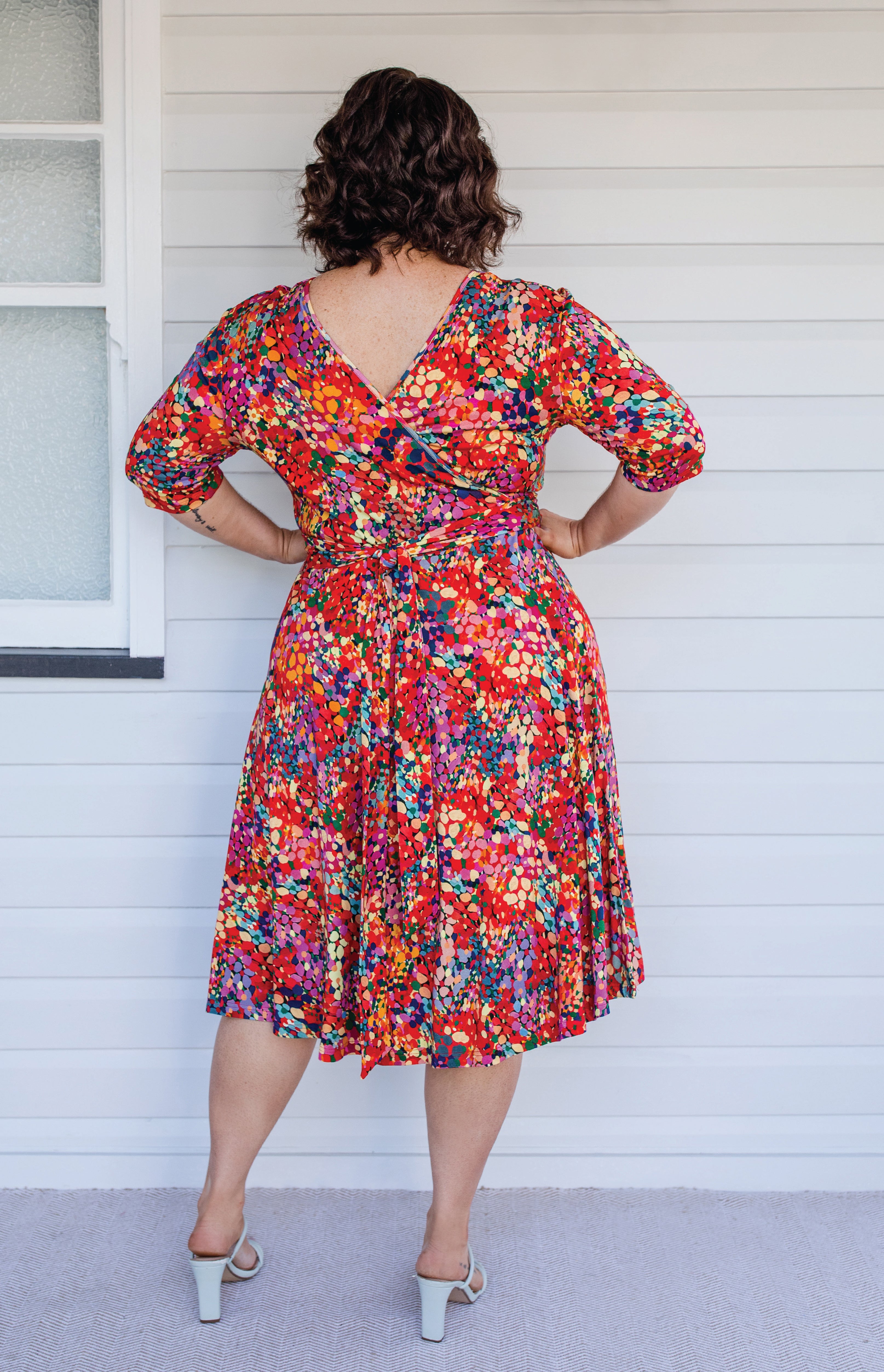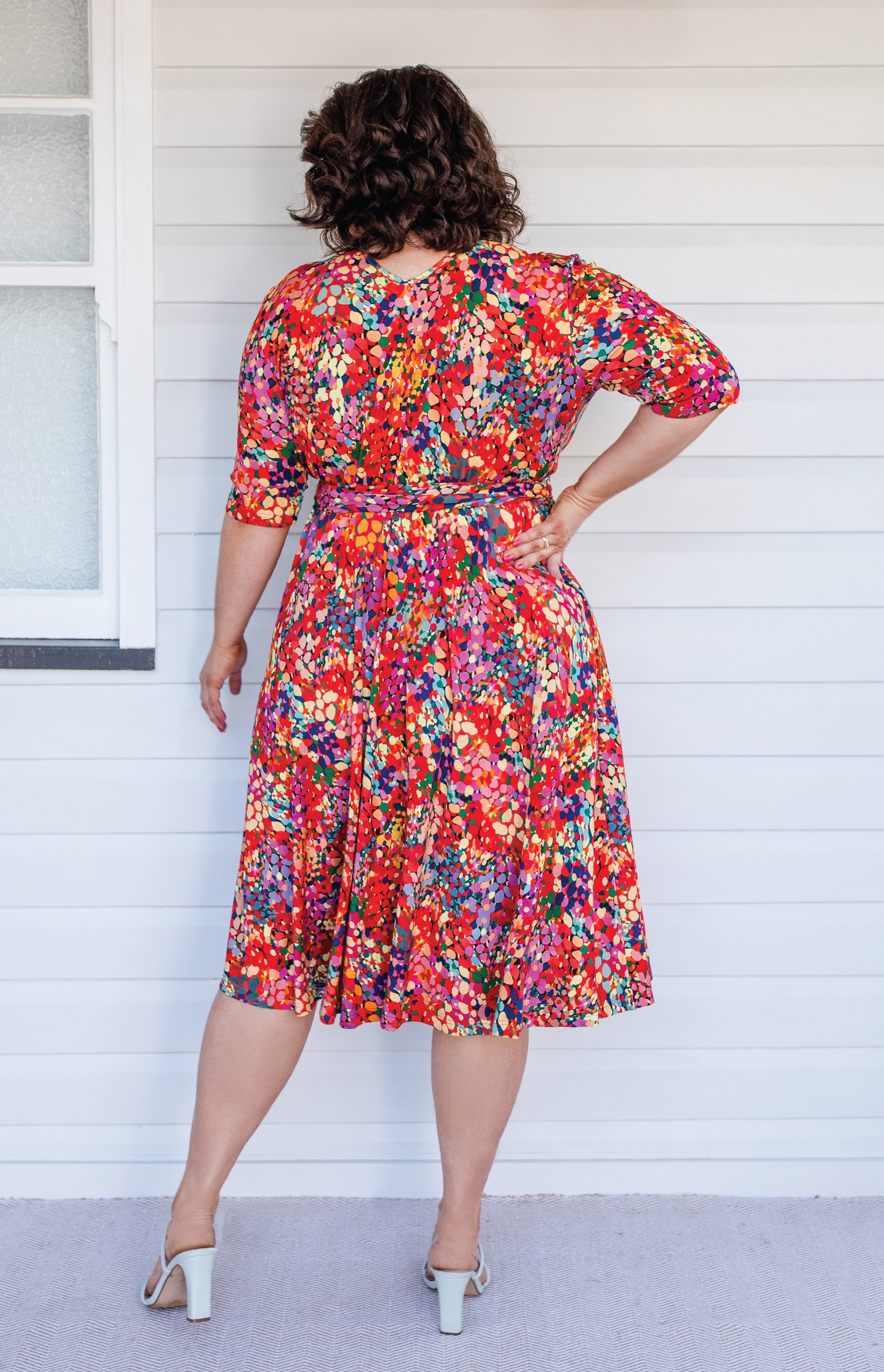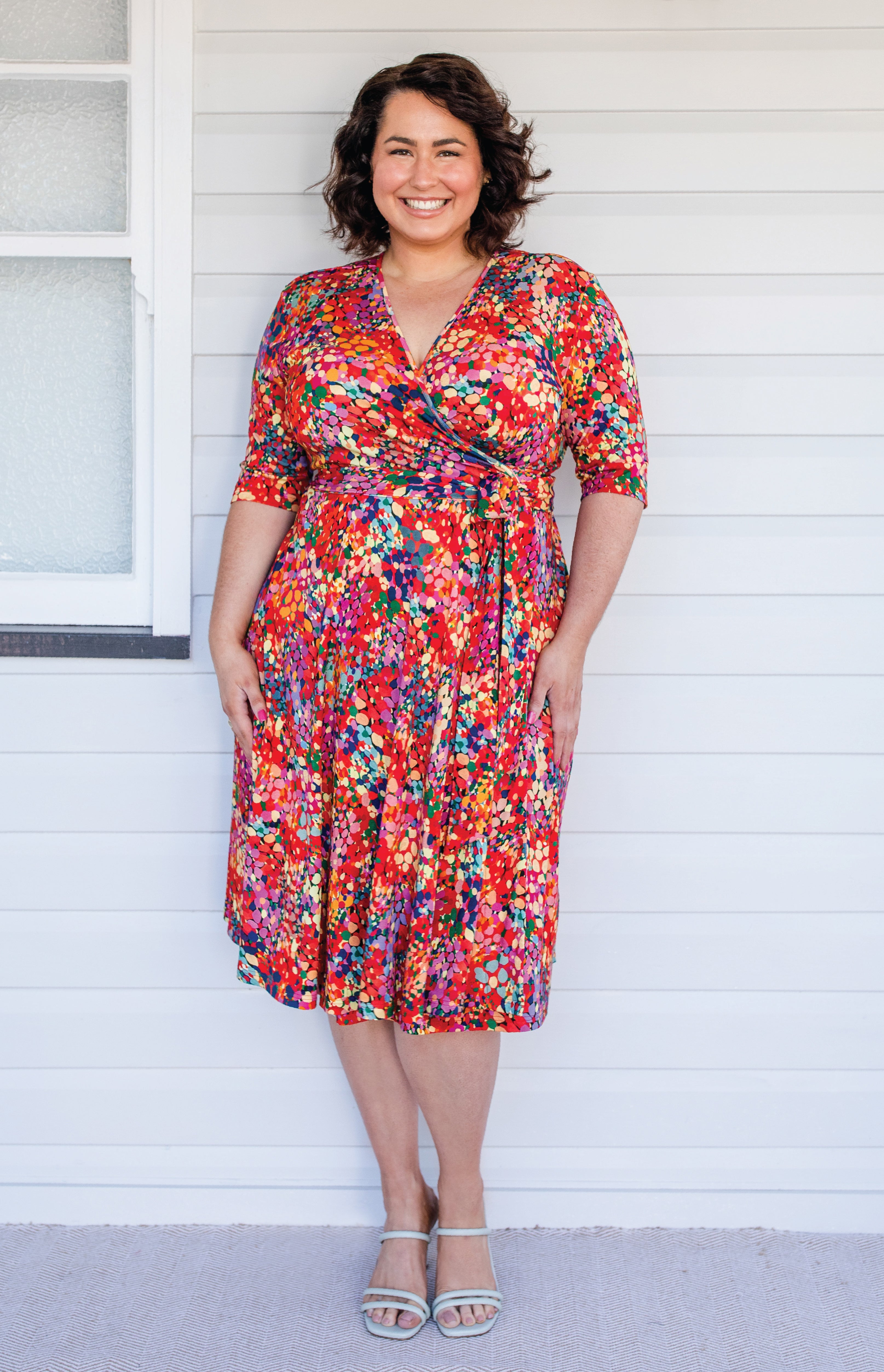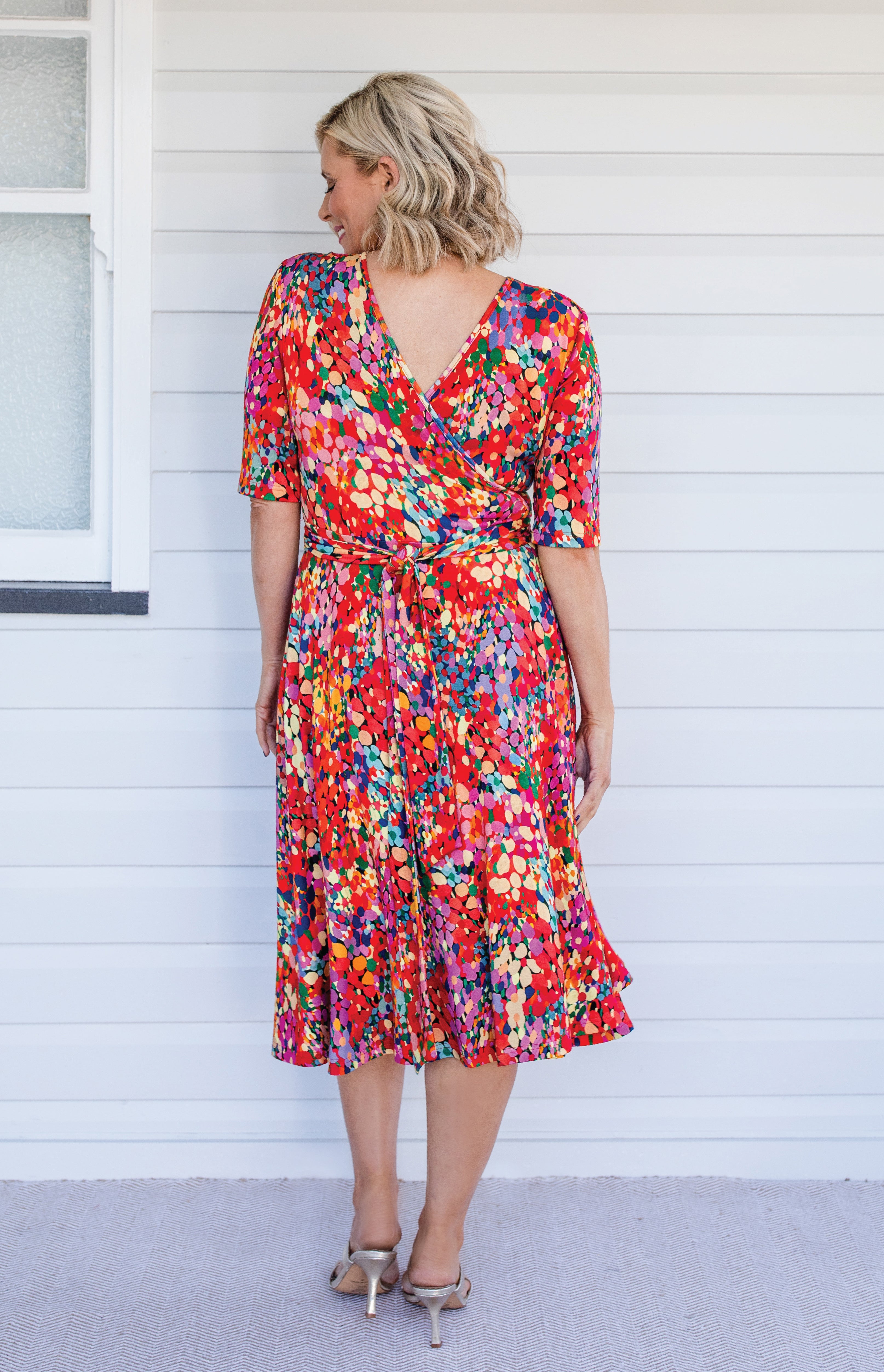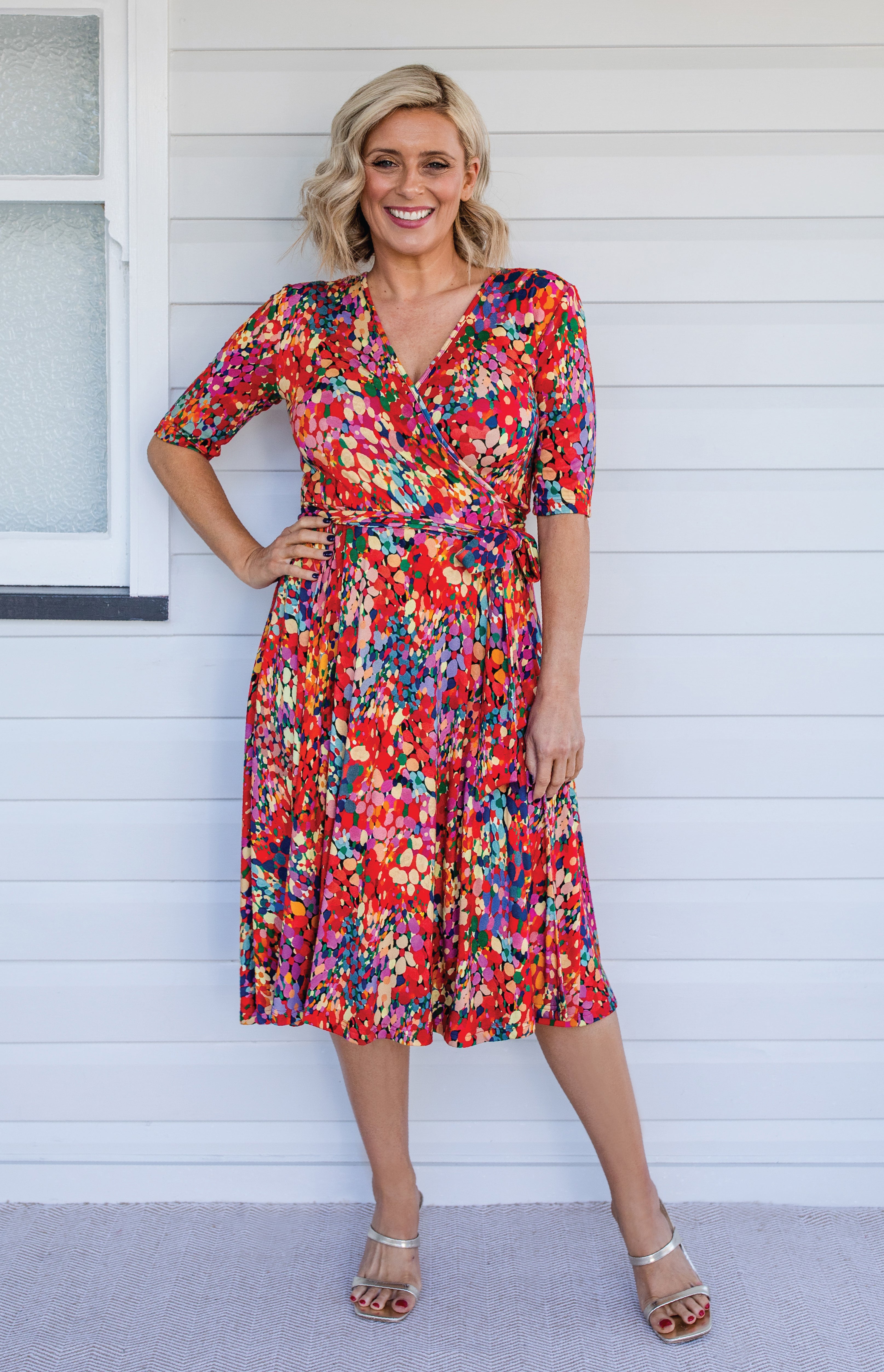 A classic wrap dress with a cinched-in waist that enhances the waistline and a soft circle skirt that twirls… it all adds up to a wardrobe winner that you'll wear and wear xo