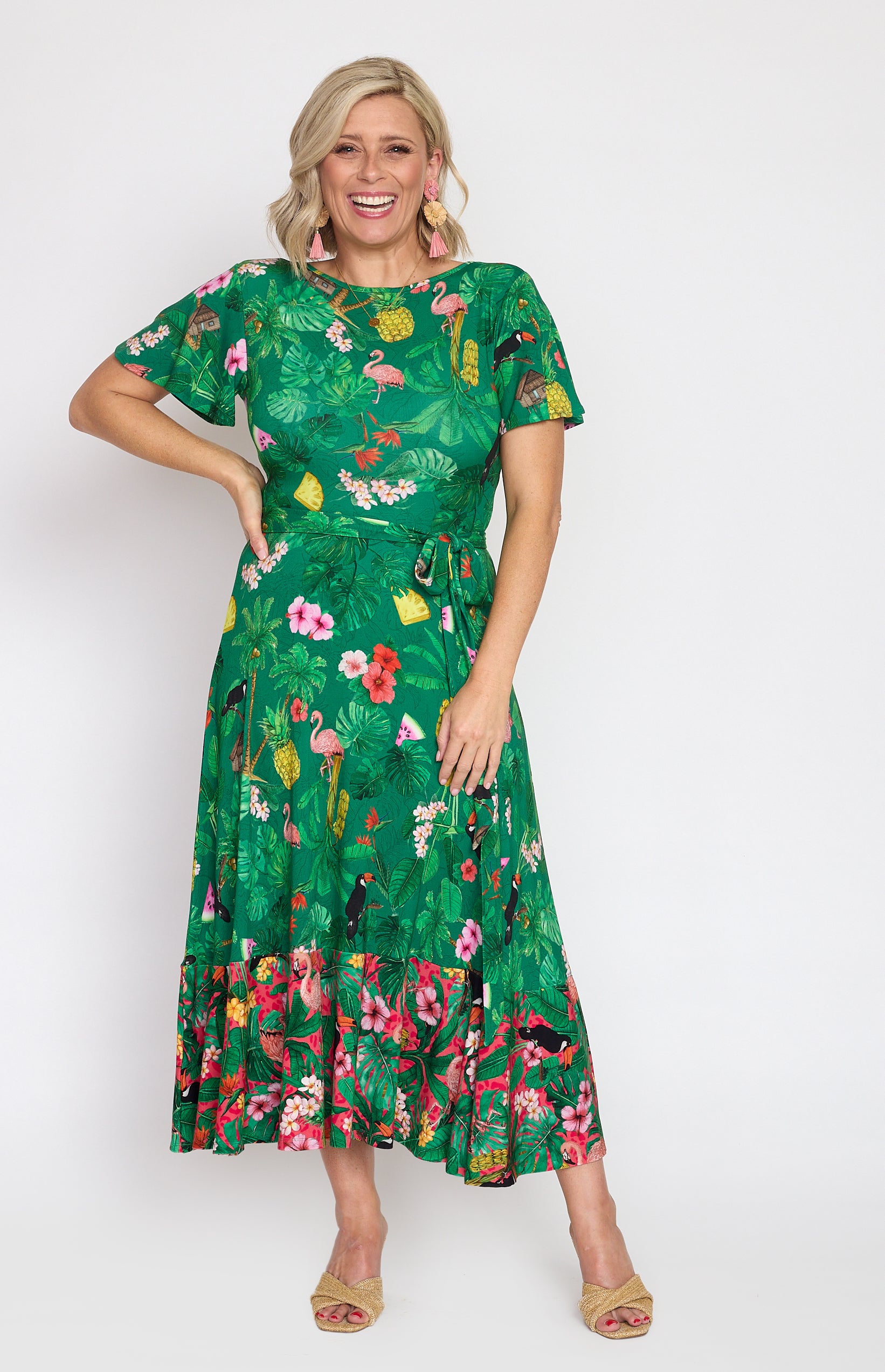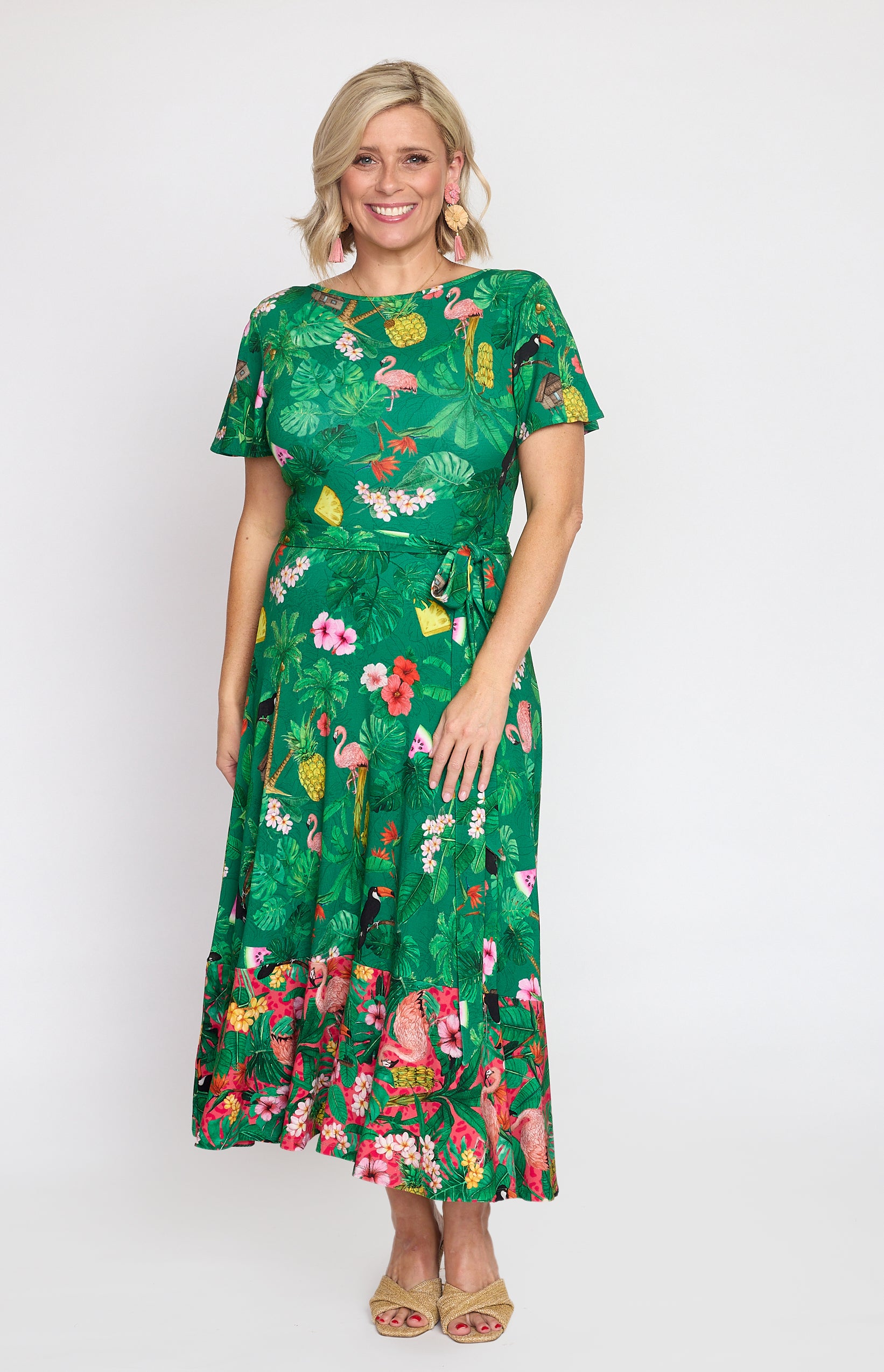 Gabrielle is a new version and improved of our best selling Lucinda Dress (that we have been making for over 20 years!) but we've made her reversible. She's just like a transformer, but in fashion form. You can wear her with the V neckline or the boat neckline.