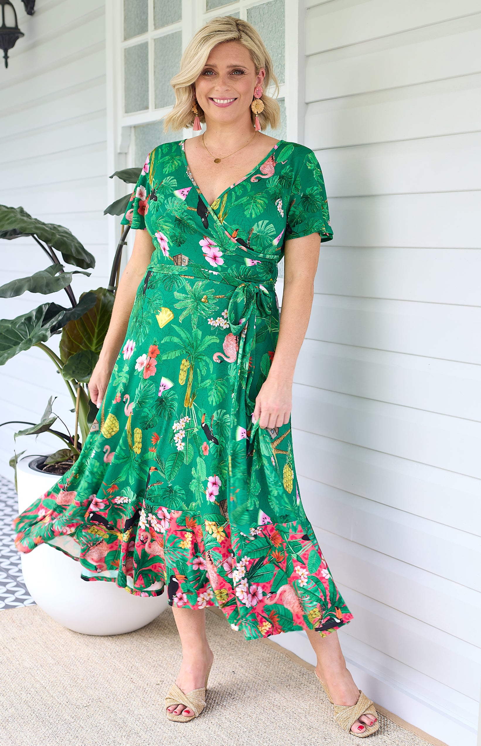 Our model Brooke (blonde) is wearing size 8. Her bust is 100cm; Waist 82cm; Hip: 98cm.
