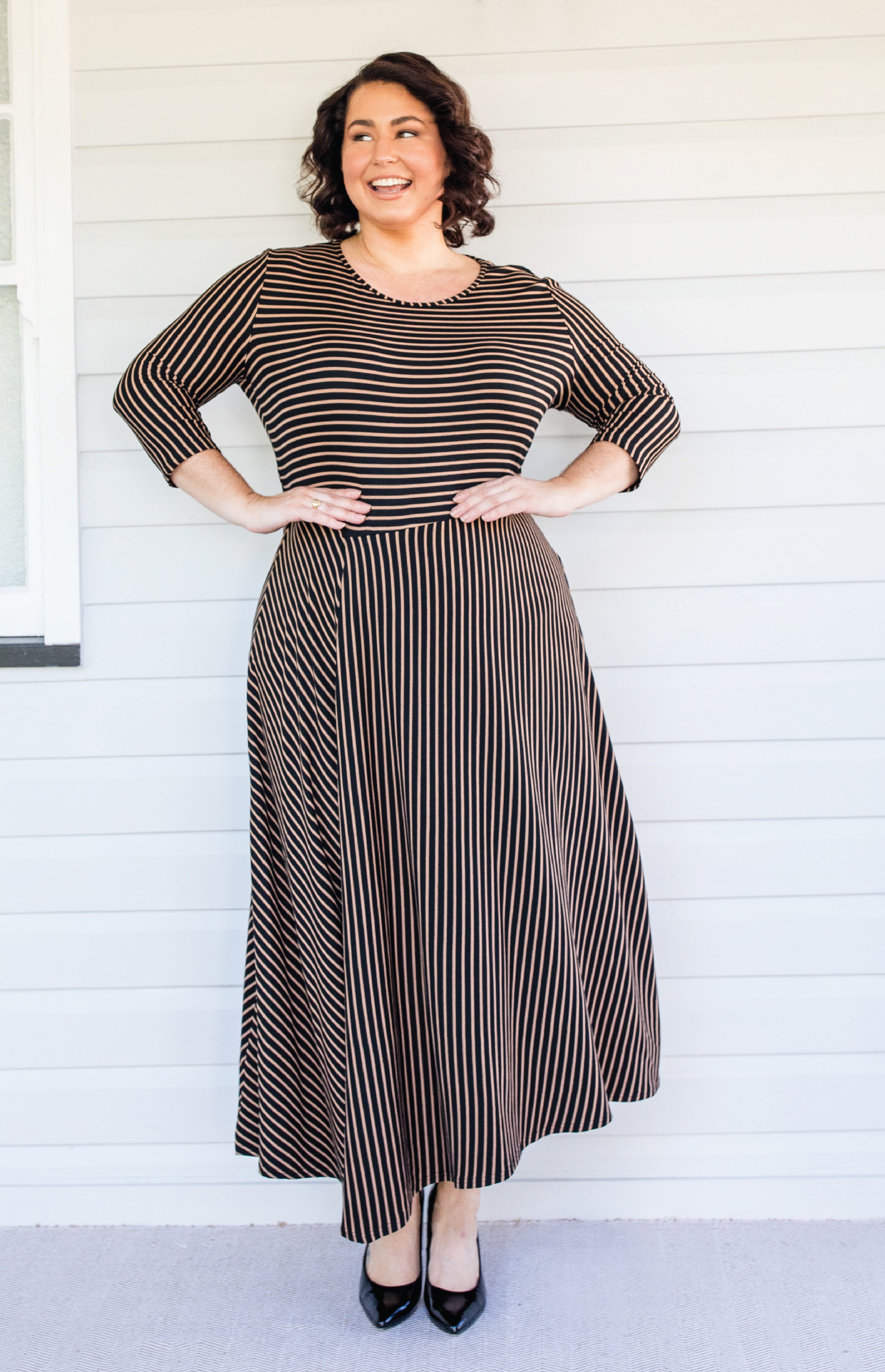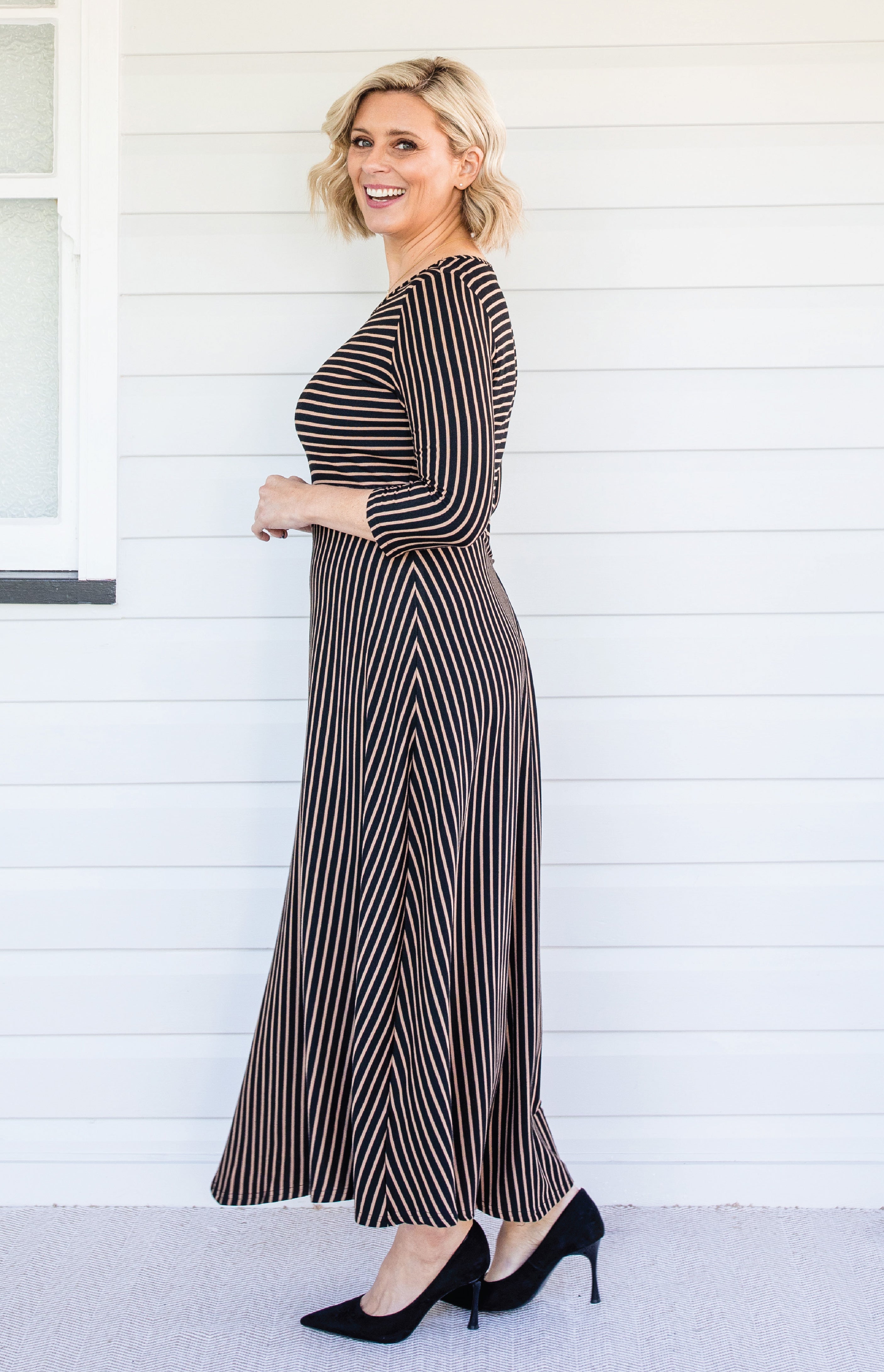 Zoe Dress 3/4 Sleeve in sienna stripe