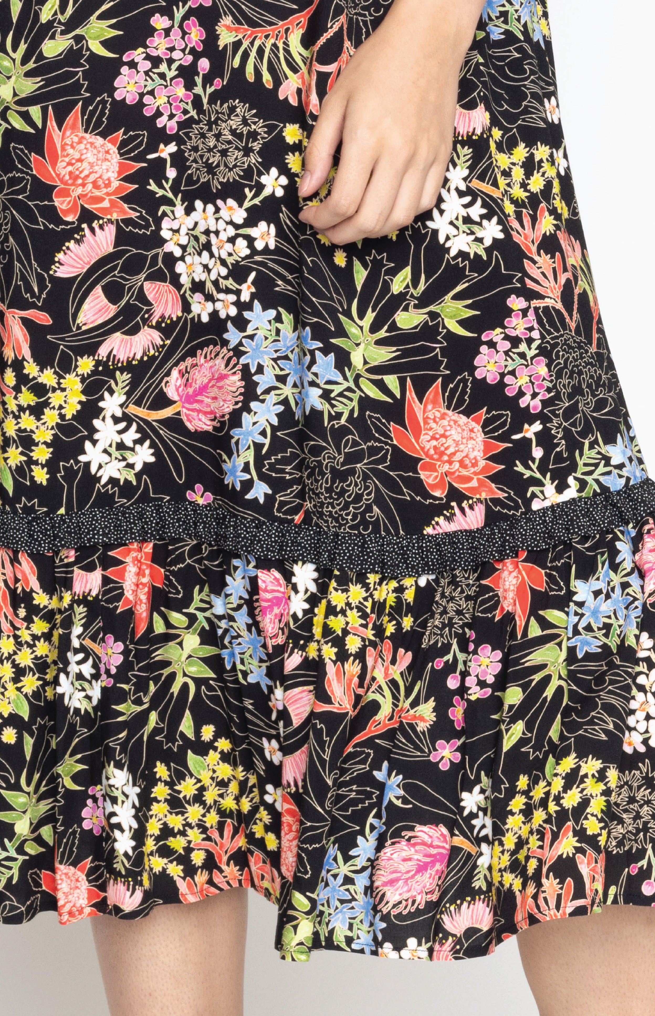 She’s oh so cool and comfortable, finished with a matching tie belt and the sweetest ruffle touches, and is just as at home at a fancy lunch as she is on your weekend adventures.
