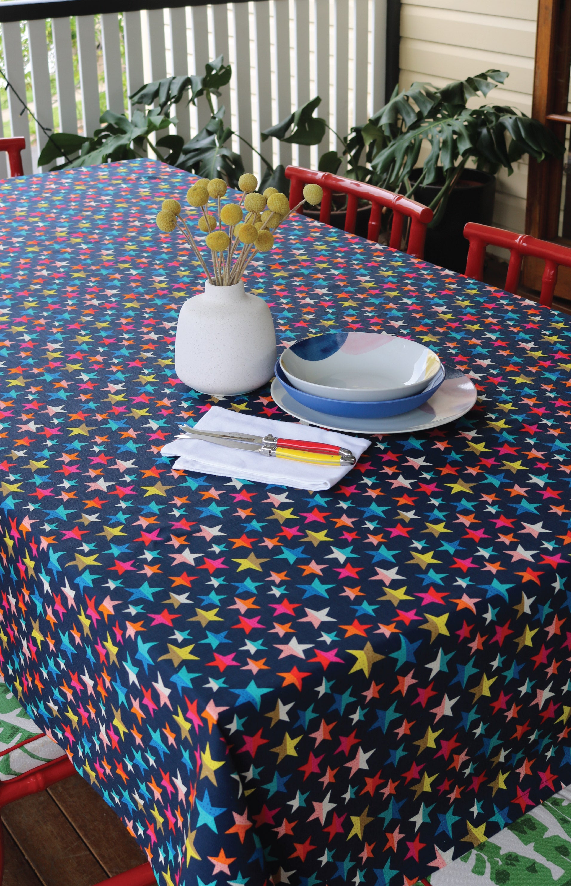 Fancy lunches hold a special place in our hearts at Maiocchi and what better way to fancy up your table than a vibrant printed tablecloth.