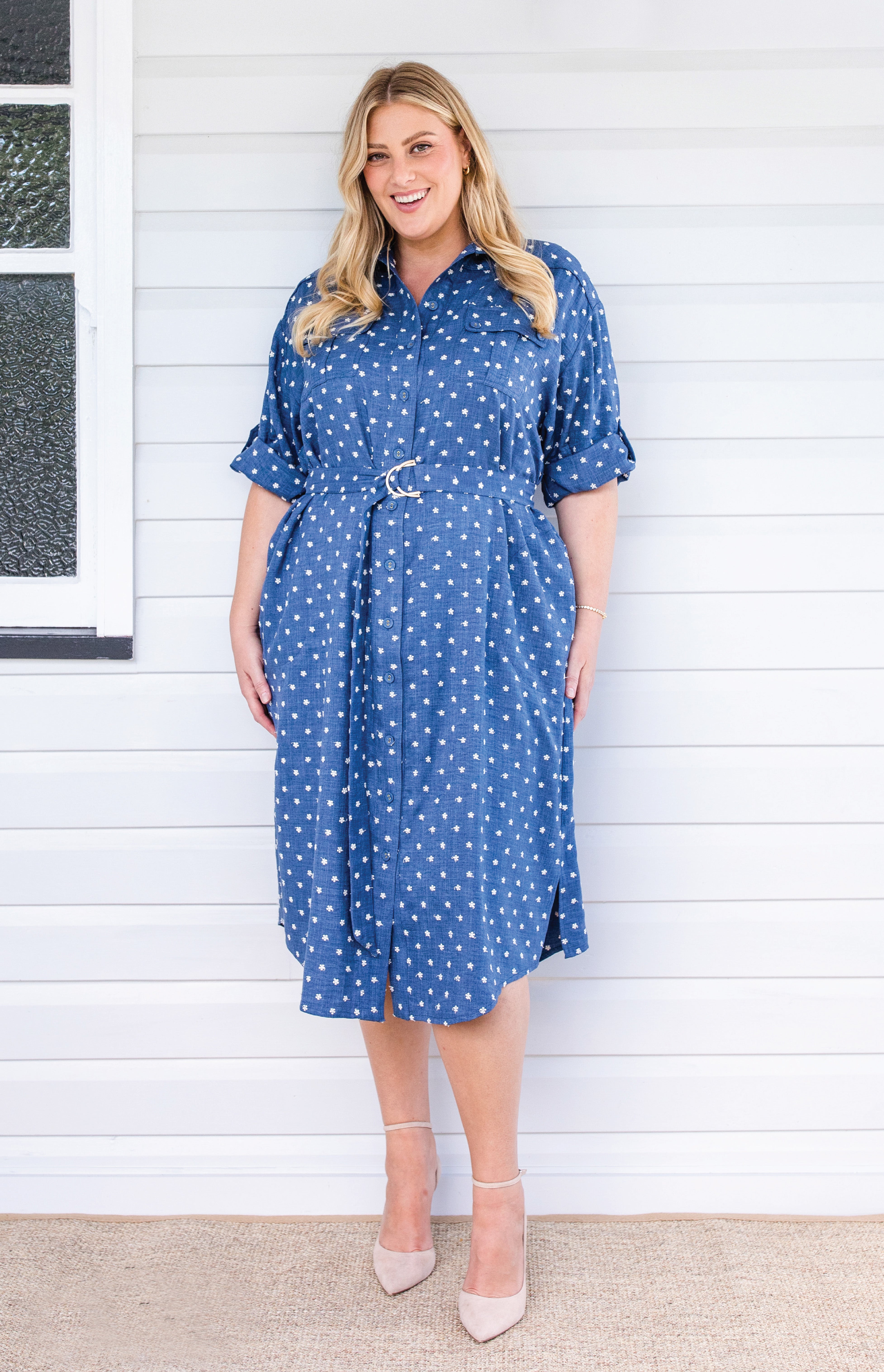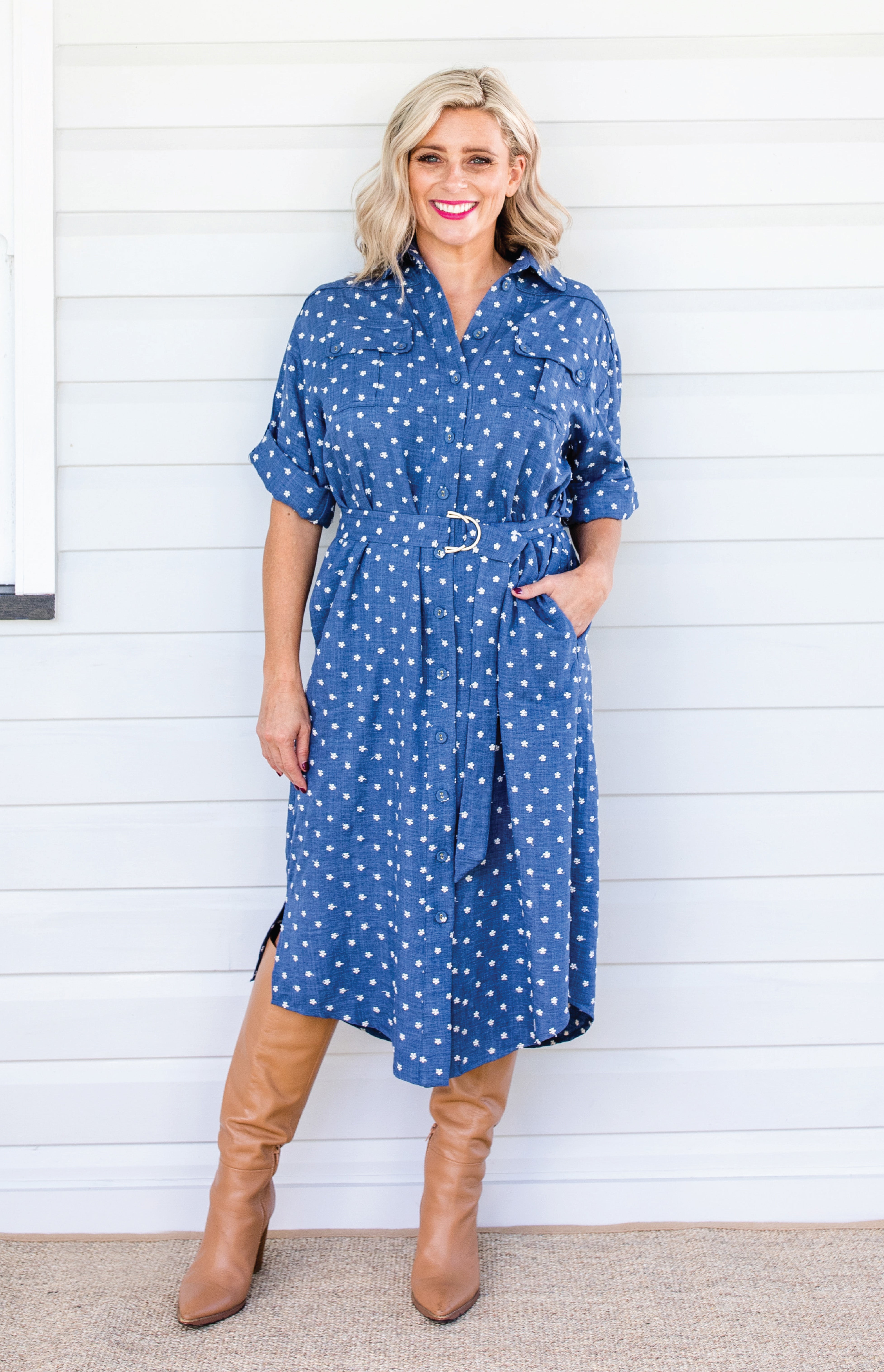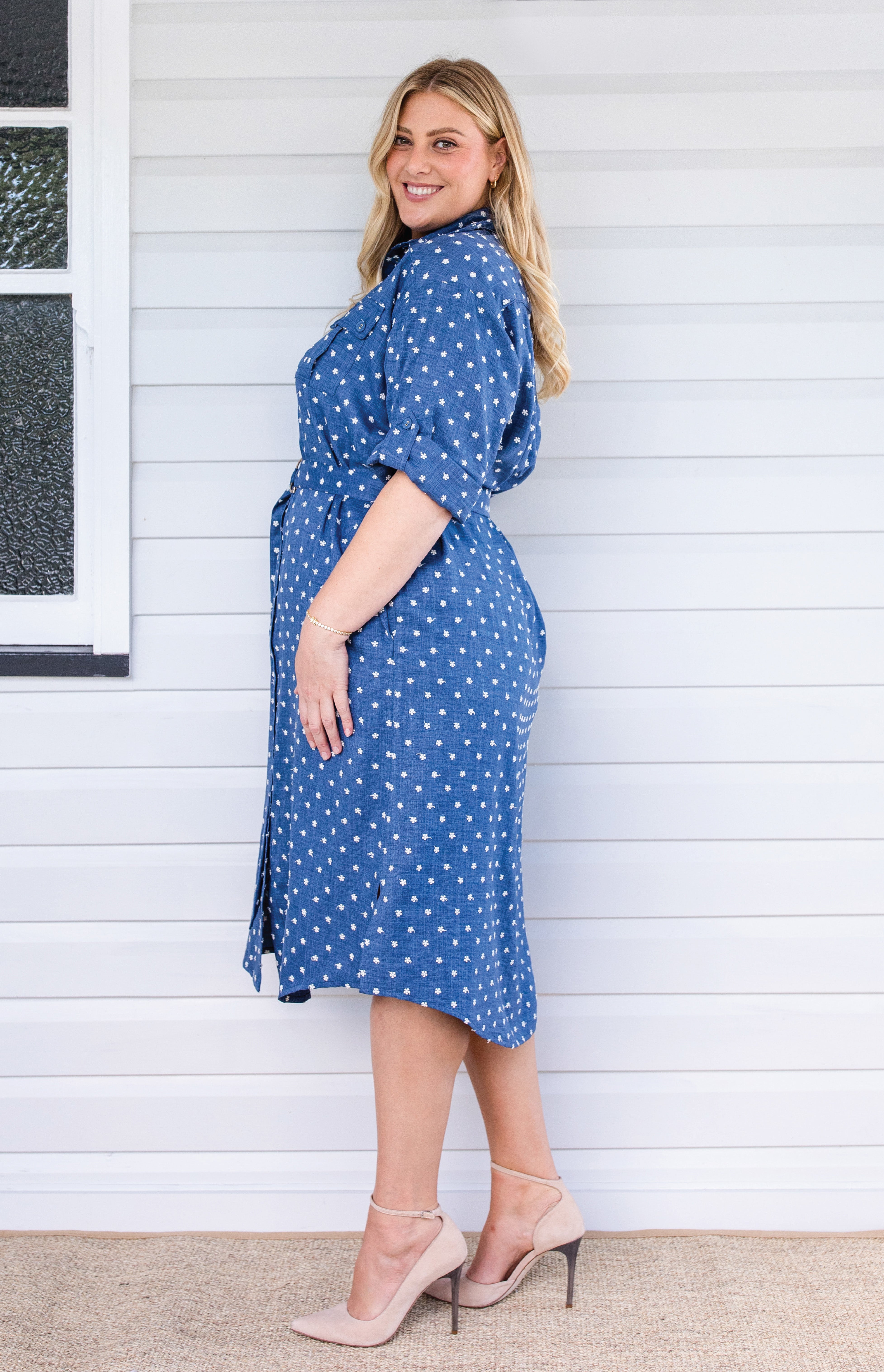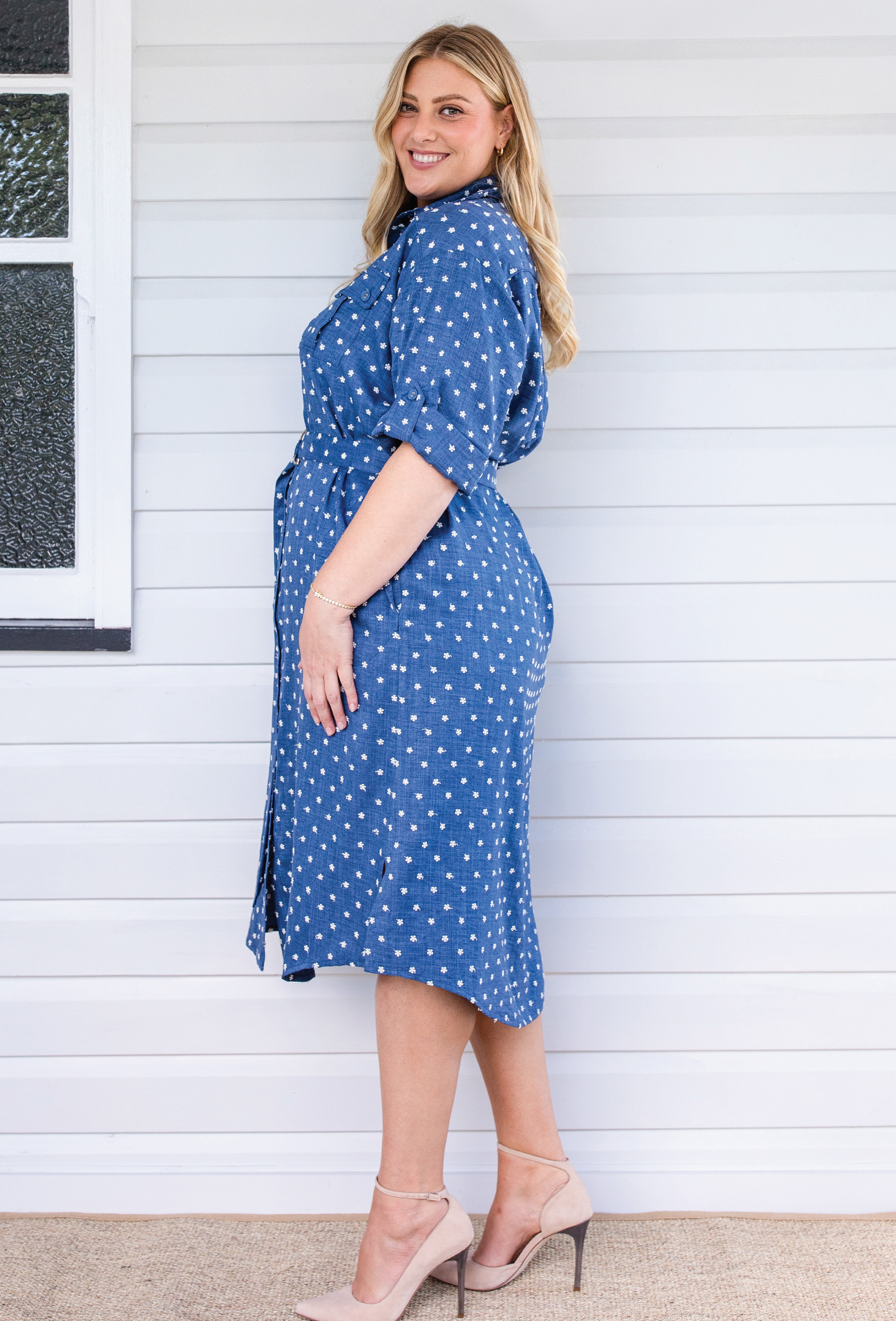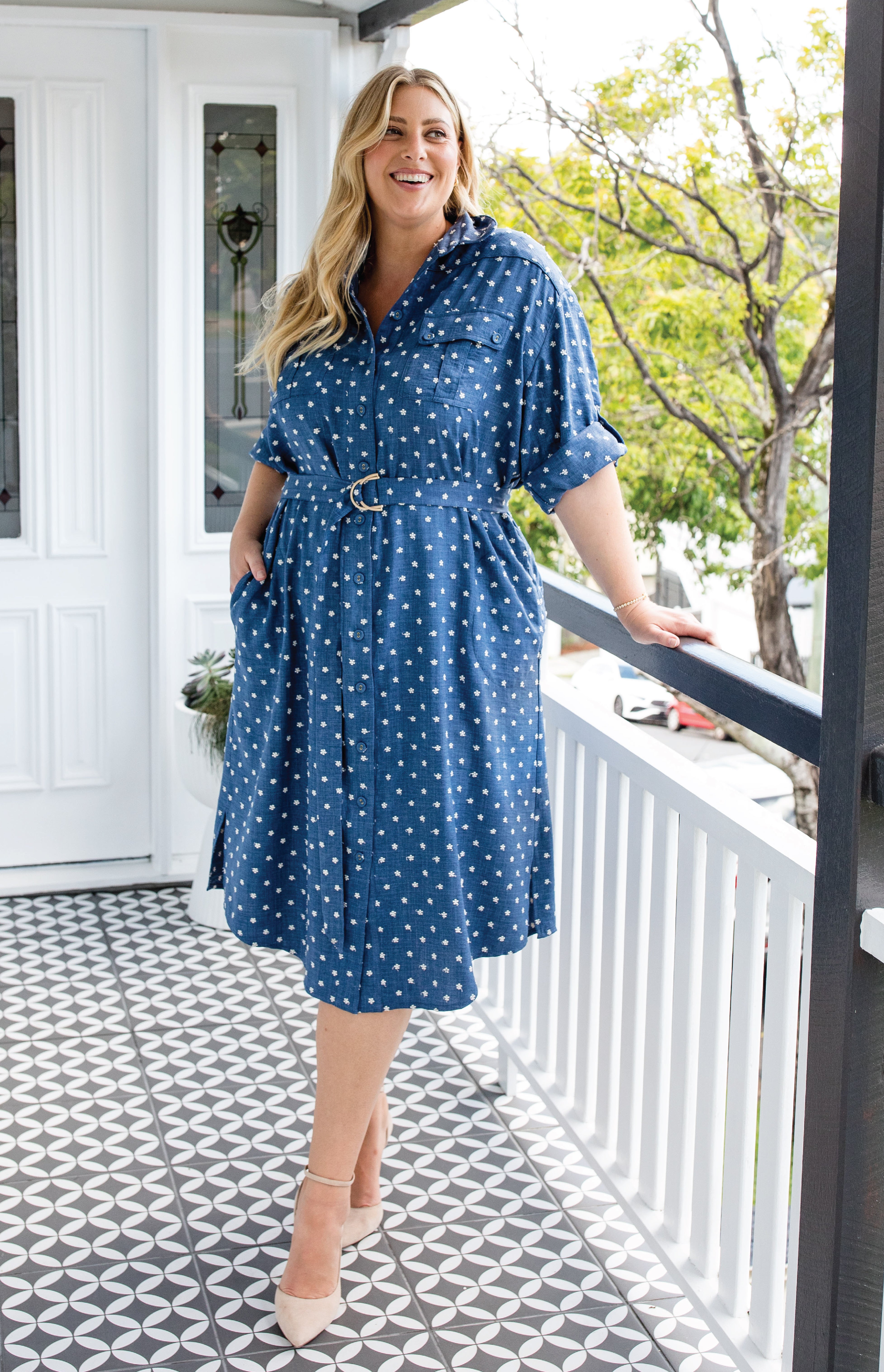 Stylish and effortlessly elegant, our new Alison Shirt Dress in floral denim is the perfect throw on and go style that you'll wear and love forever.