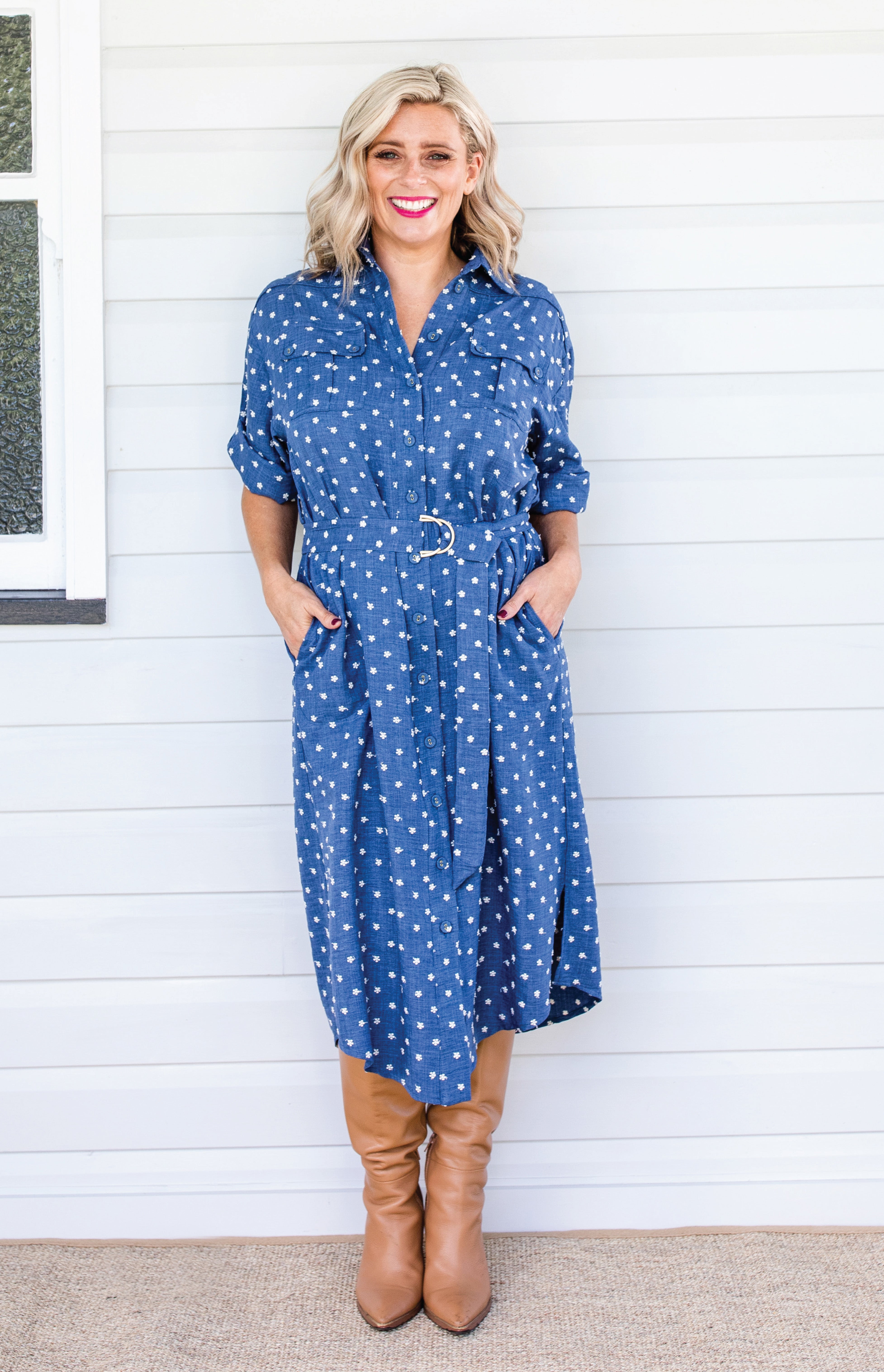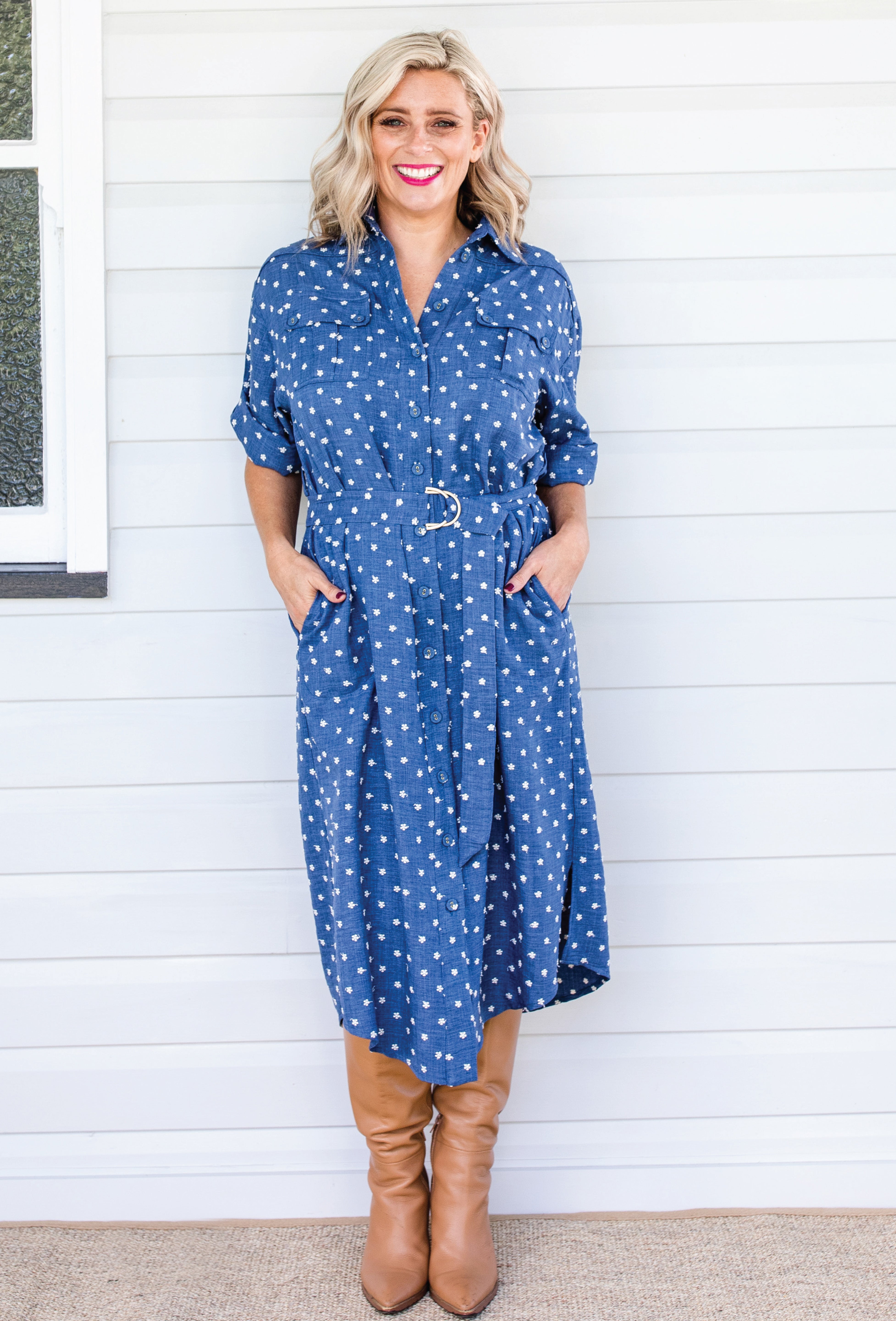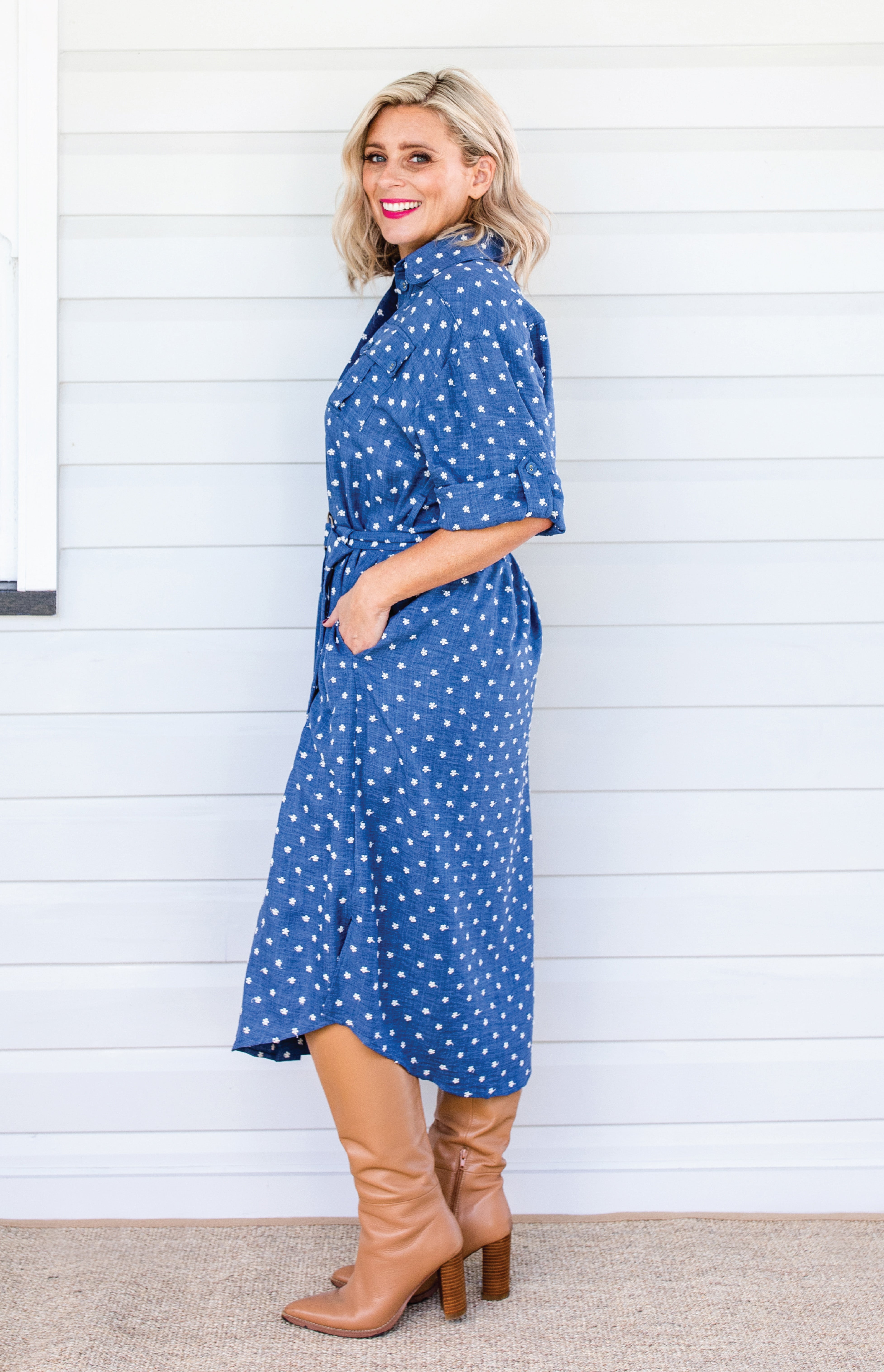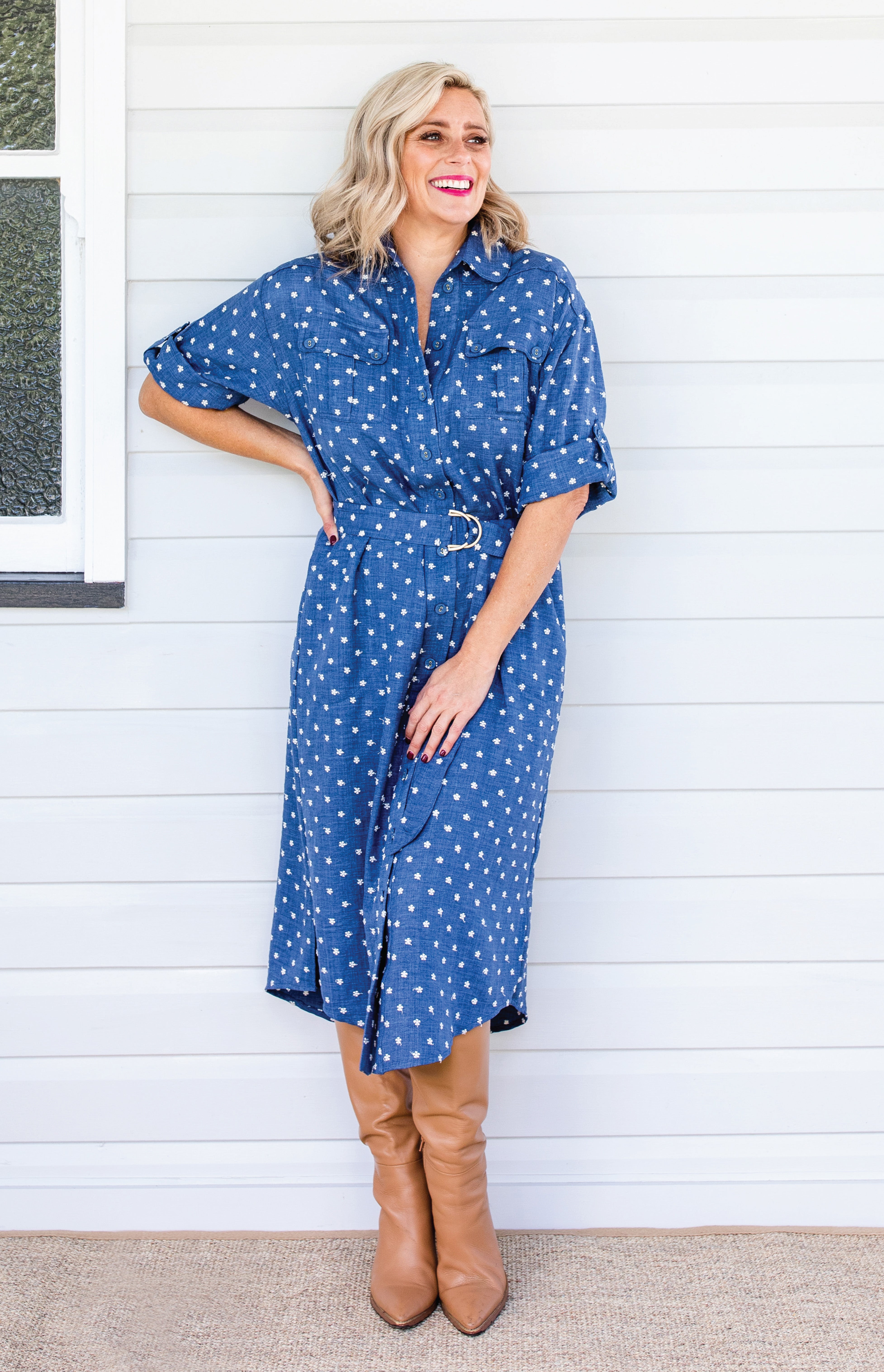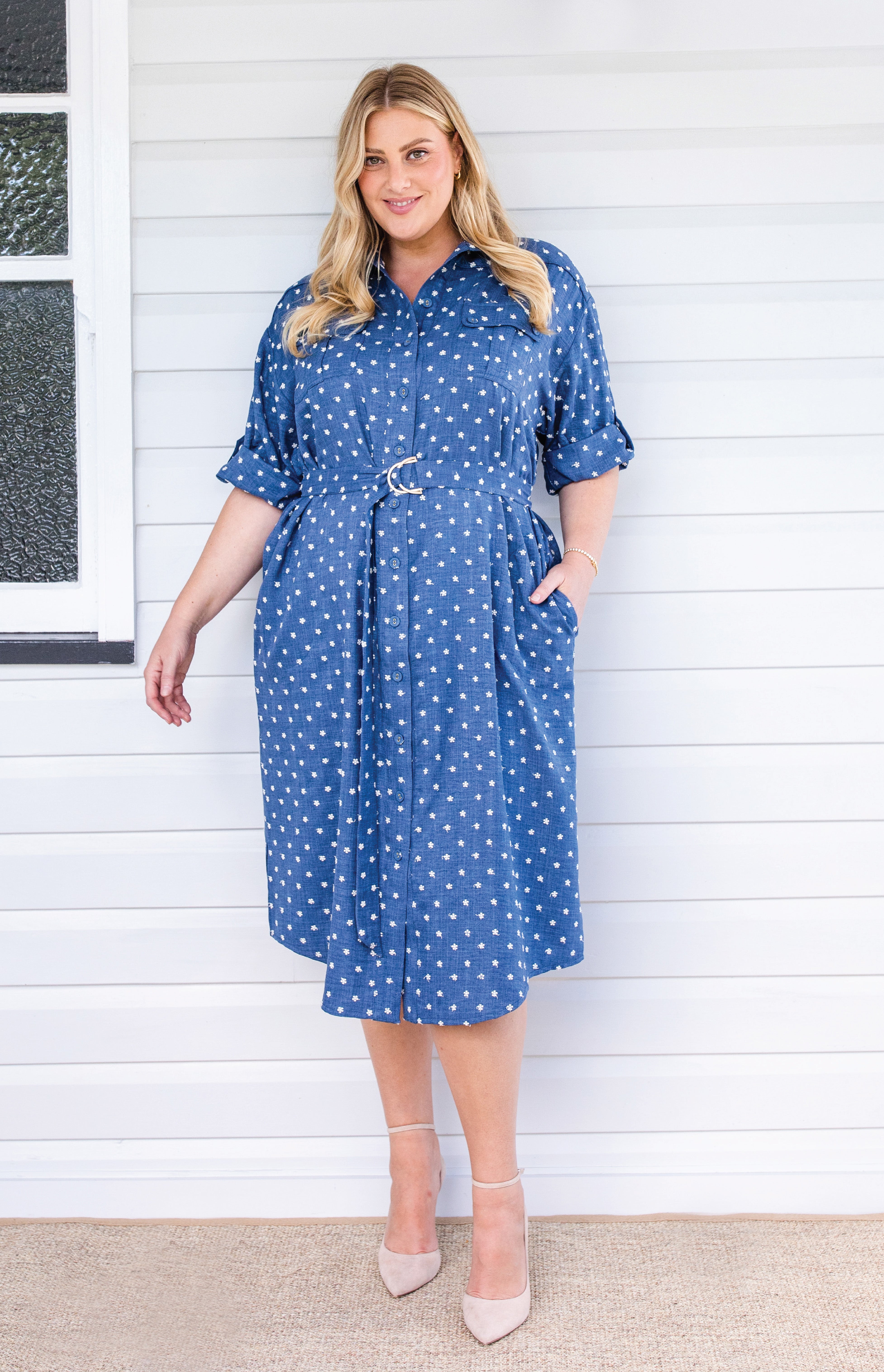 Stylish and effortlessly elegant, our new Alison Shirt Dress in floral denim is the perfect throw on and go style that you'll wear and love forever.