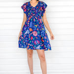 Bilinga Mini Dress in folk fairytale navy
