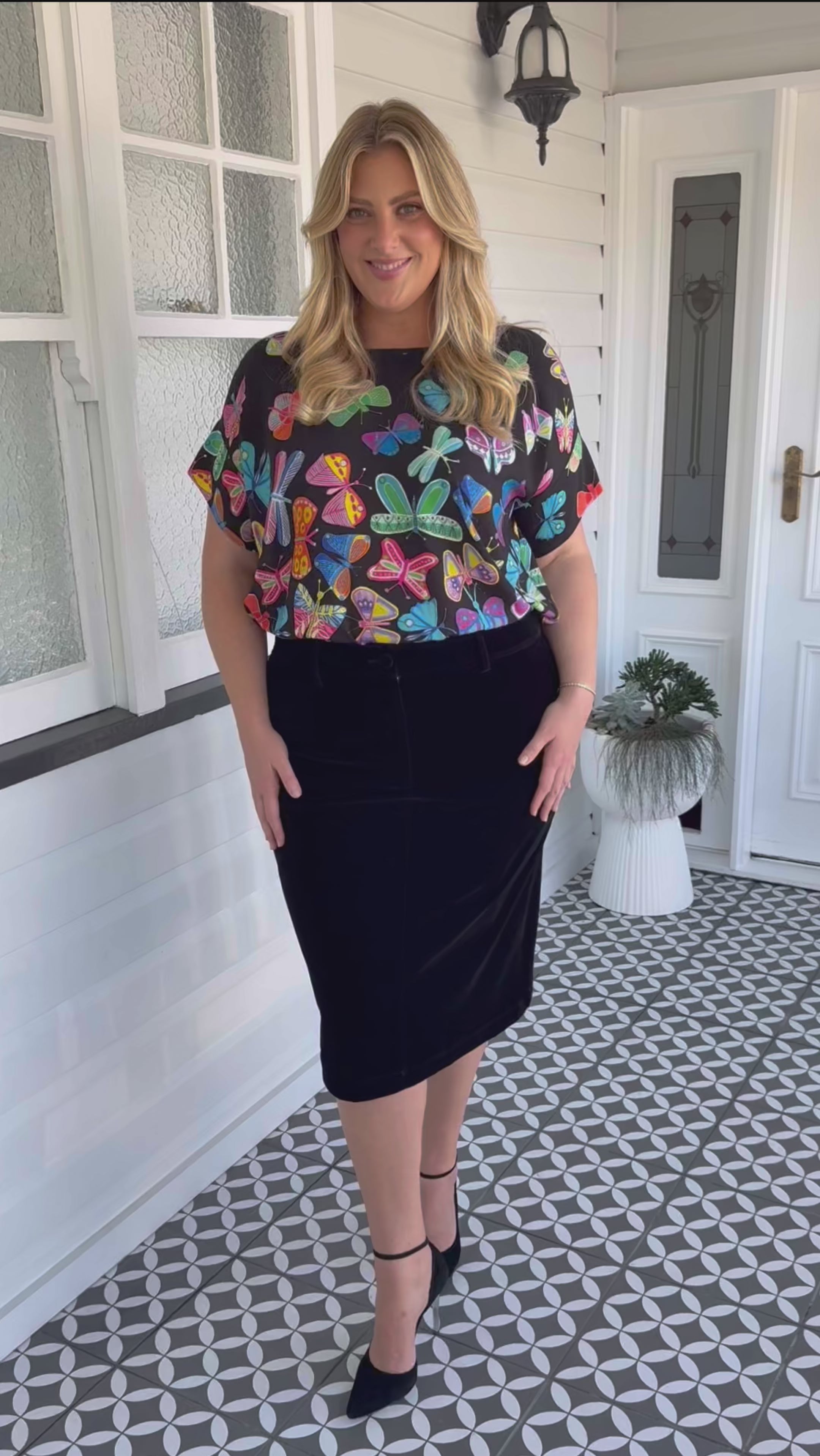 The perfect match... pair this top with our Bianca Skirt in black velvet.