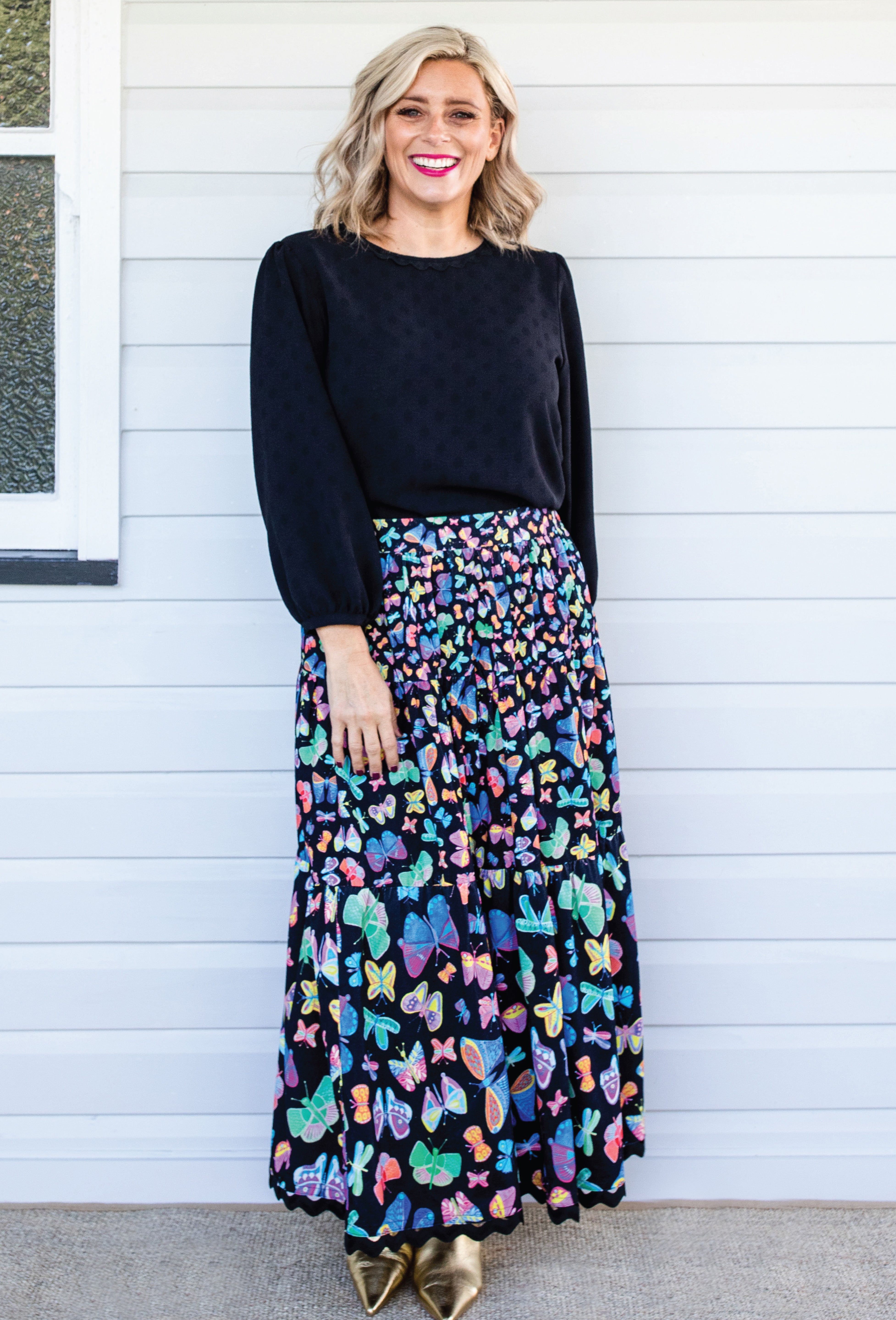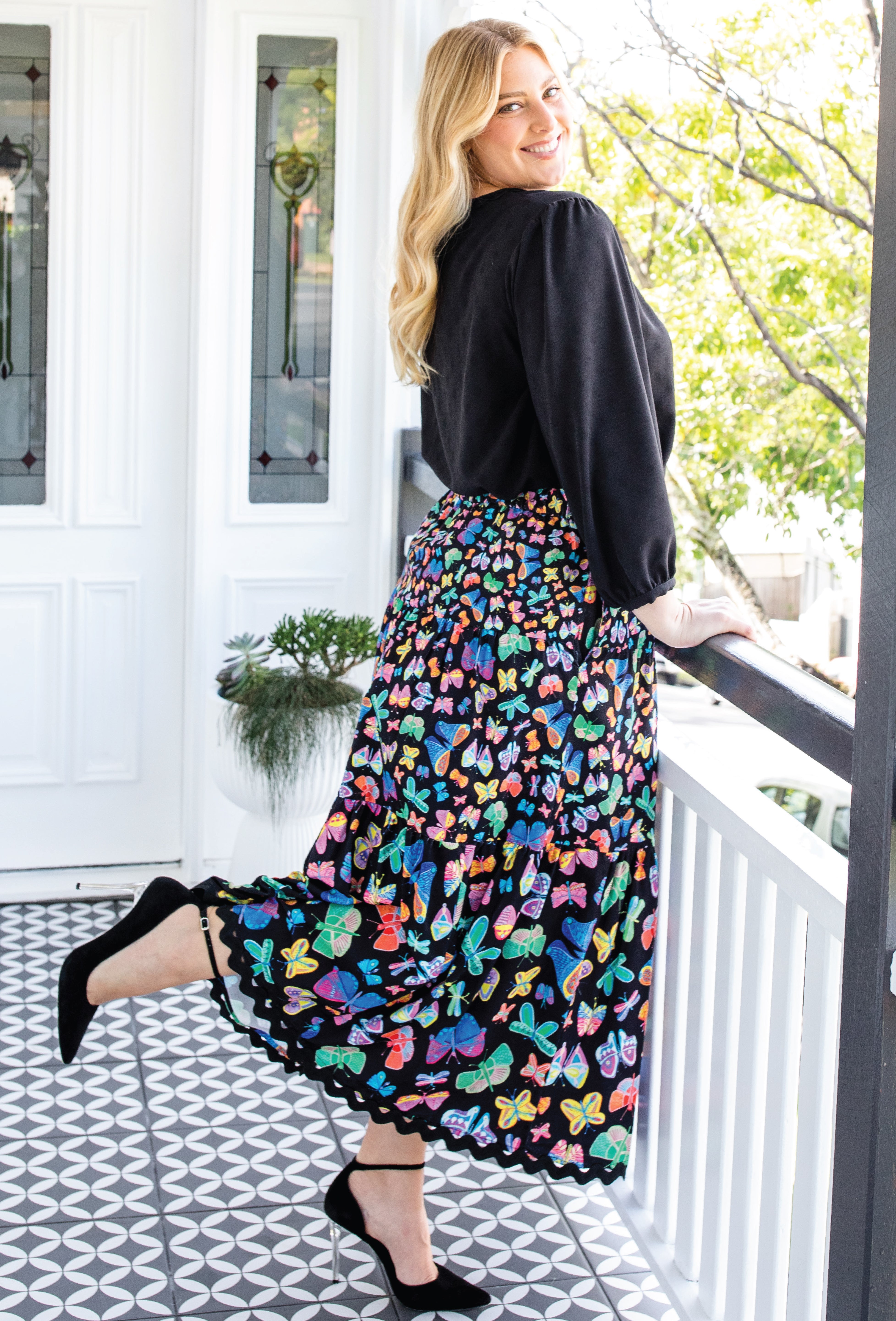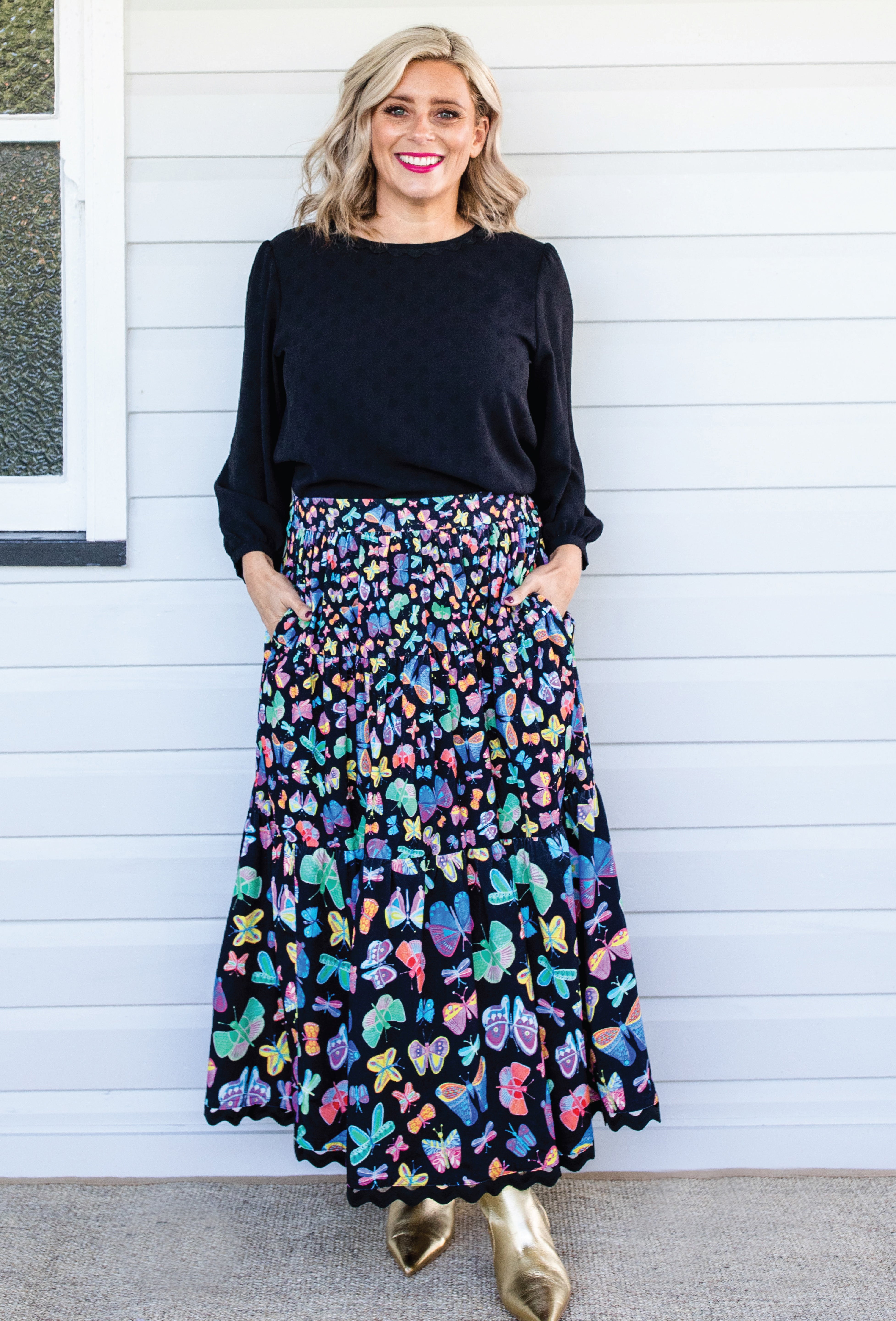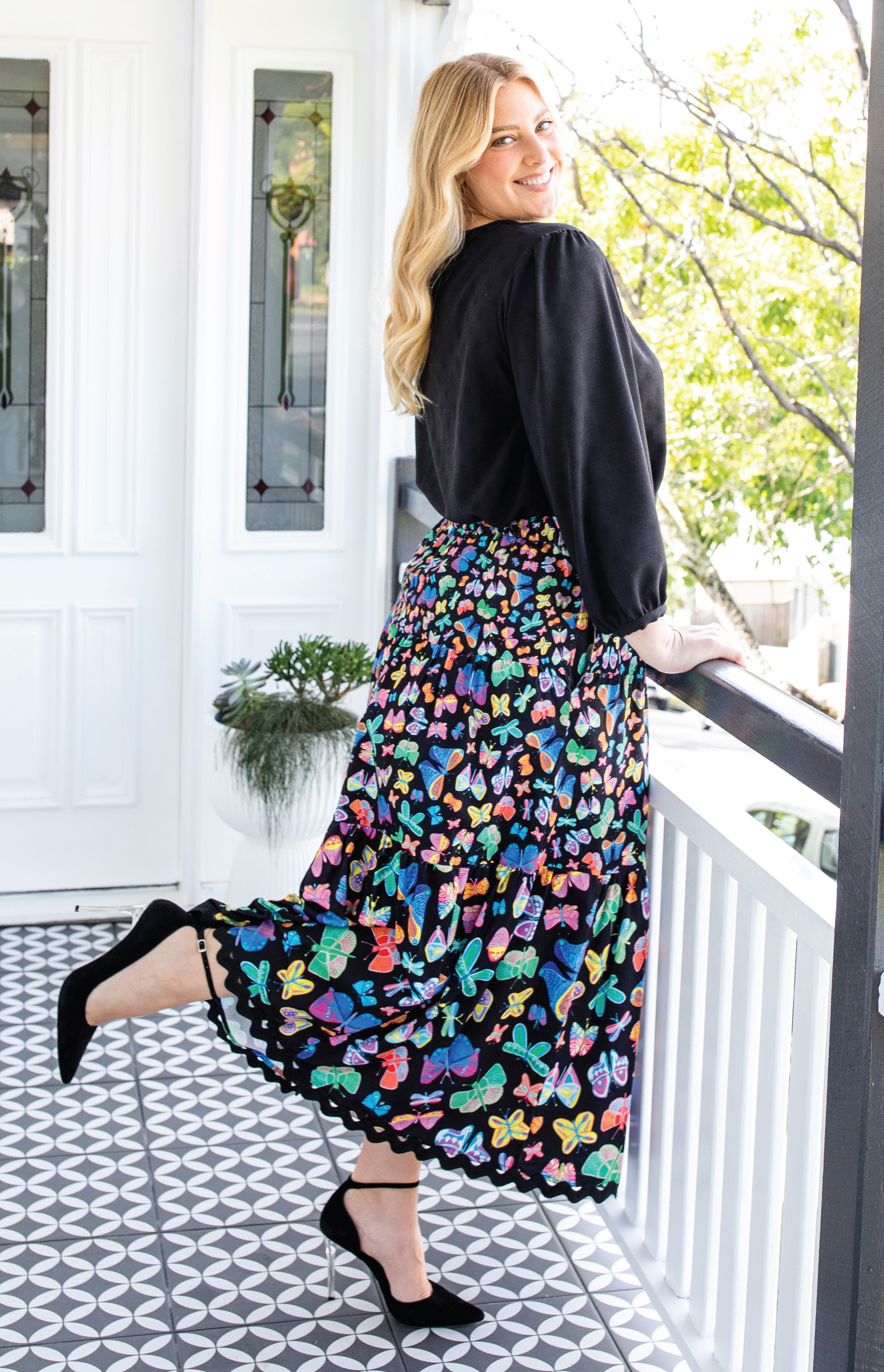 Our new 'Social Butterfly' collection captures the spirit of transformation with vibrant colours, and enchanting details that flutter with every step. For this collection we have once again, teamed up with the delightful Brisbane artist Georgie from Lordy Dordie, whose hand-painted butterflies make each piece feel like you are wearing a little piece of art. Read more on our blog here.