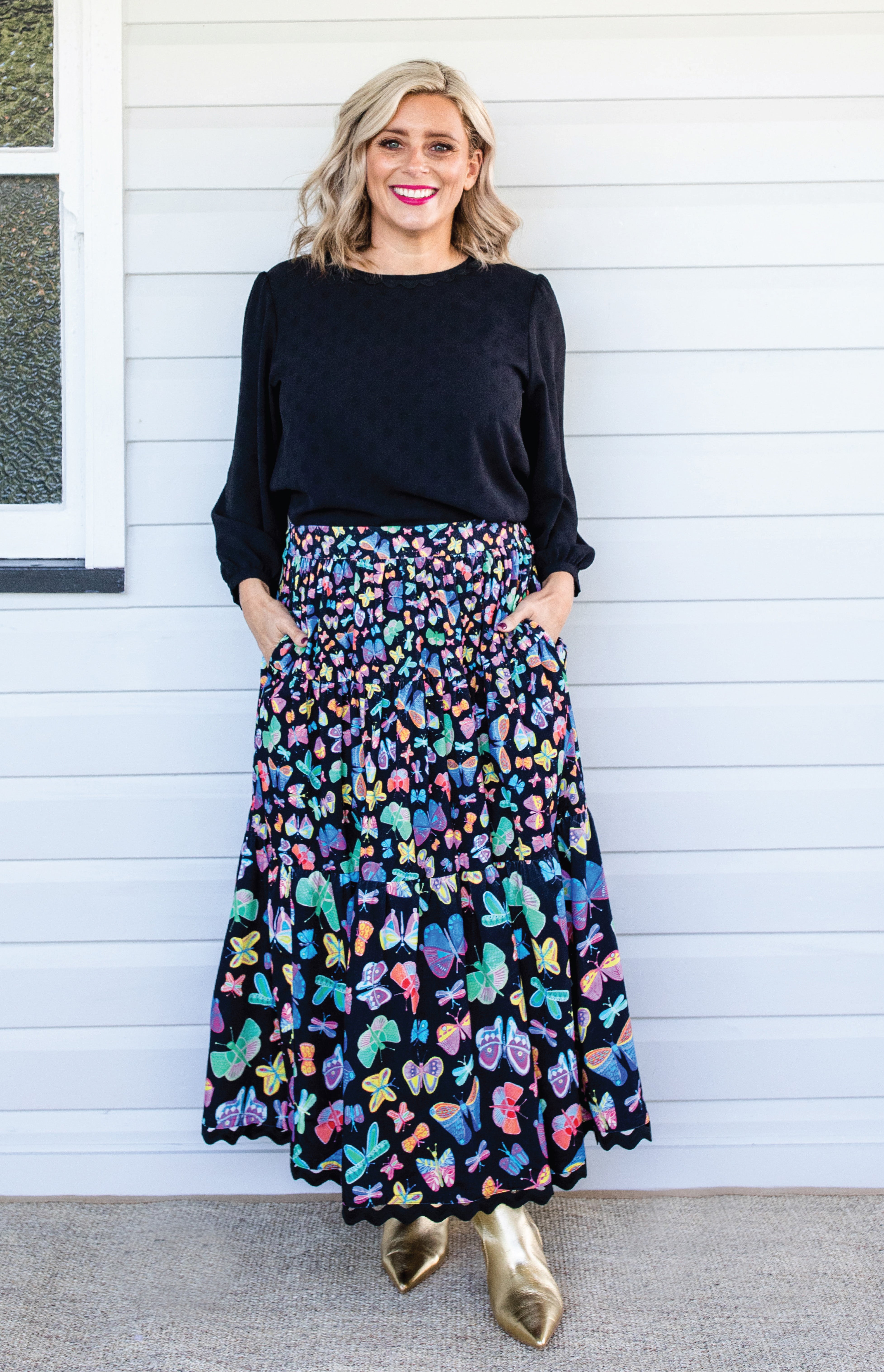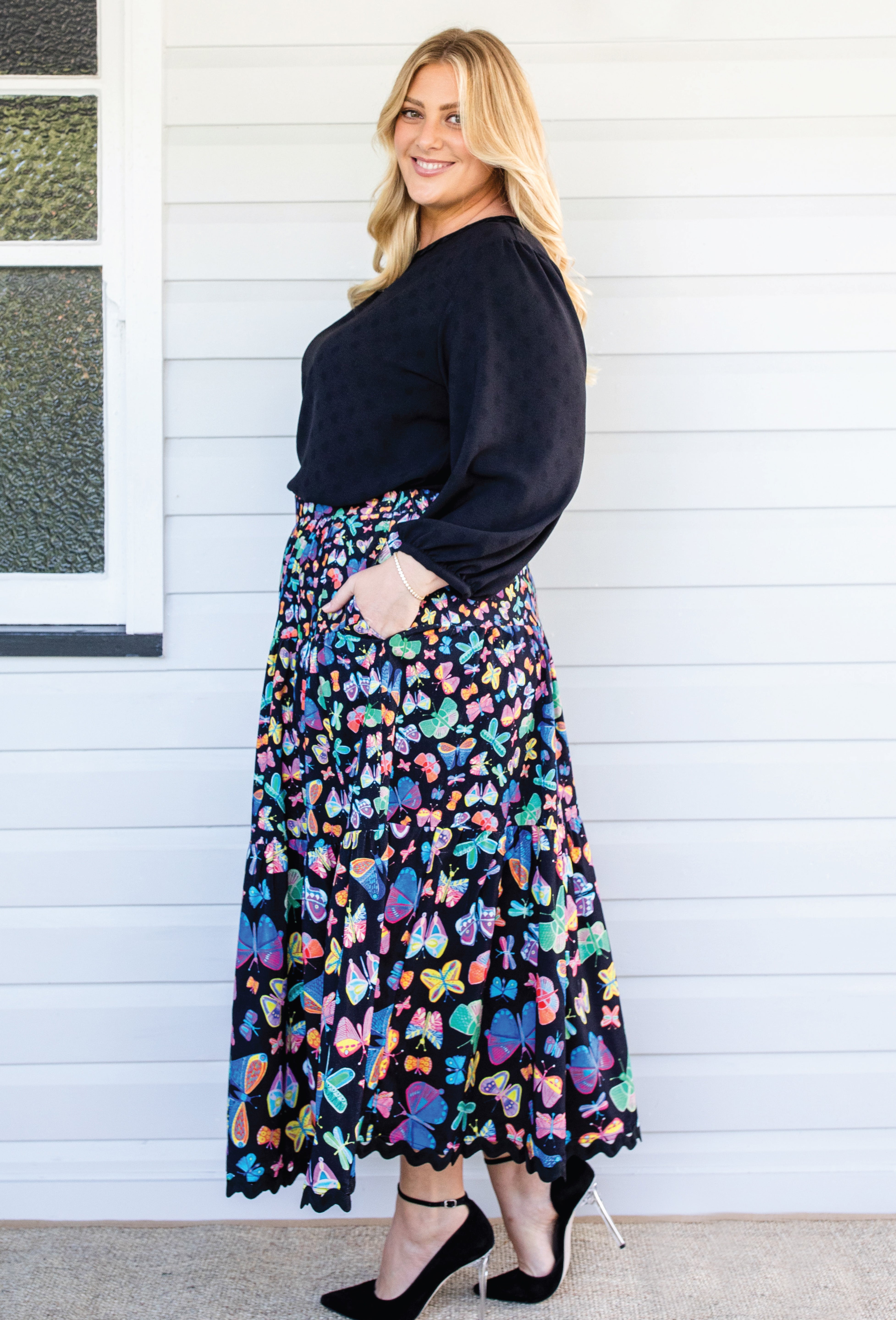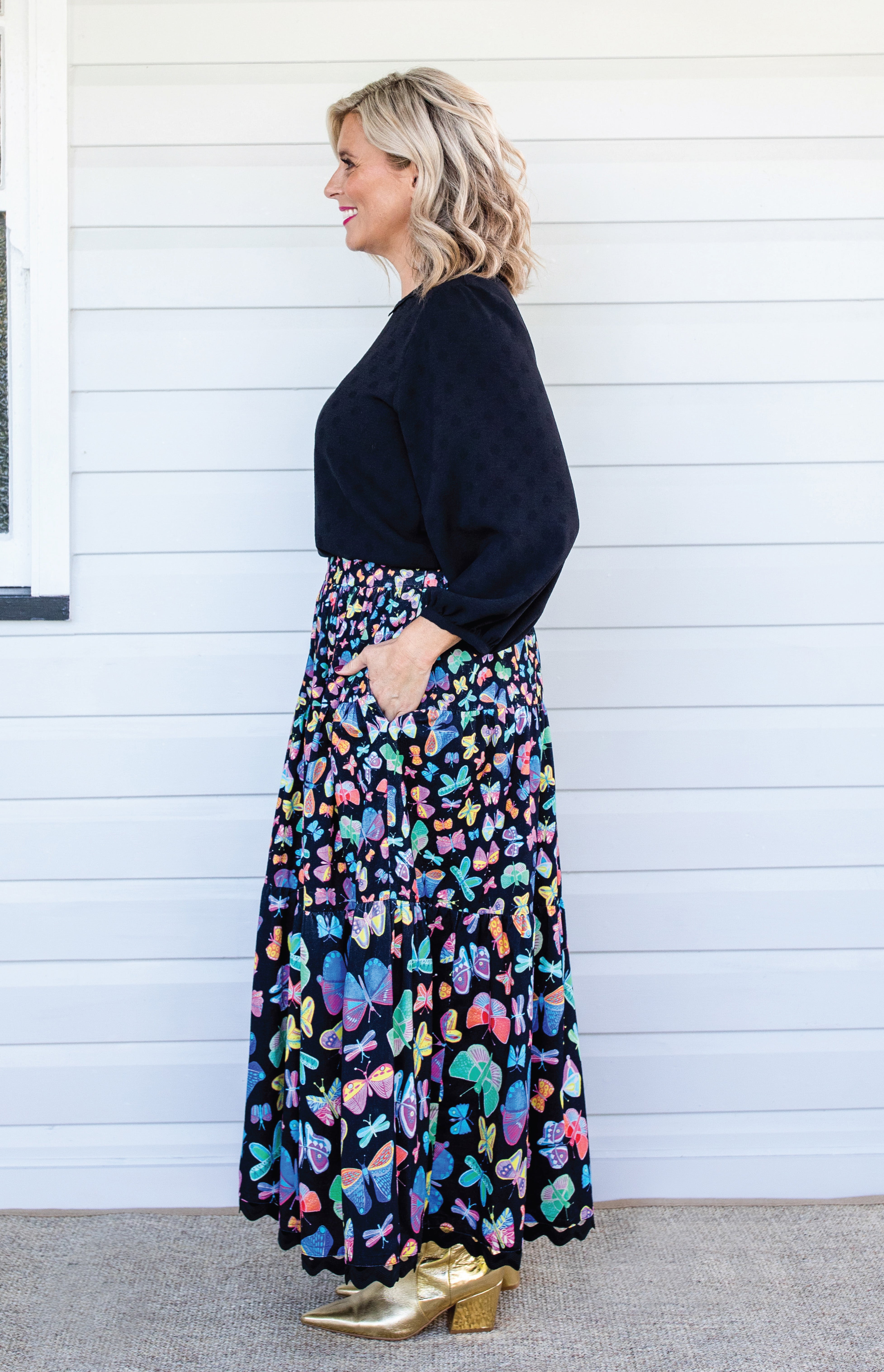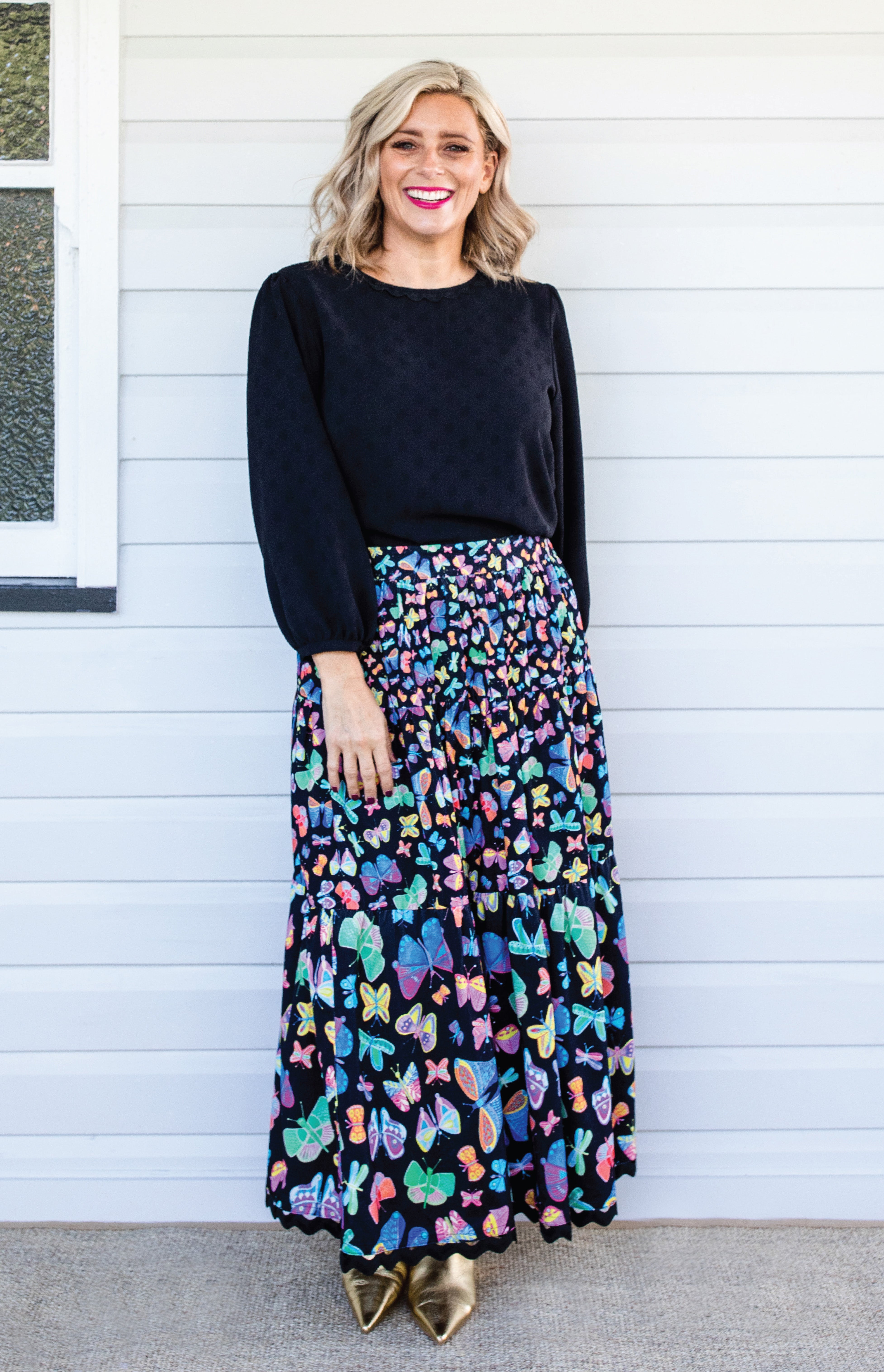 Our new 'Social Butterfly' collection captures the spirit of transformation with vibrant colours, and enchanting details that flutter with every step. For this collection we have once again, teamed up with the delightful Brisbane artist Georgie from Lordy Dordie, whose hand-painted butterflies make each piece feel like you are wearing a little piece of art. Read more on our blog here.