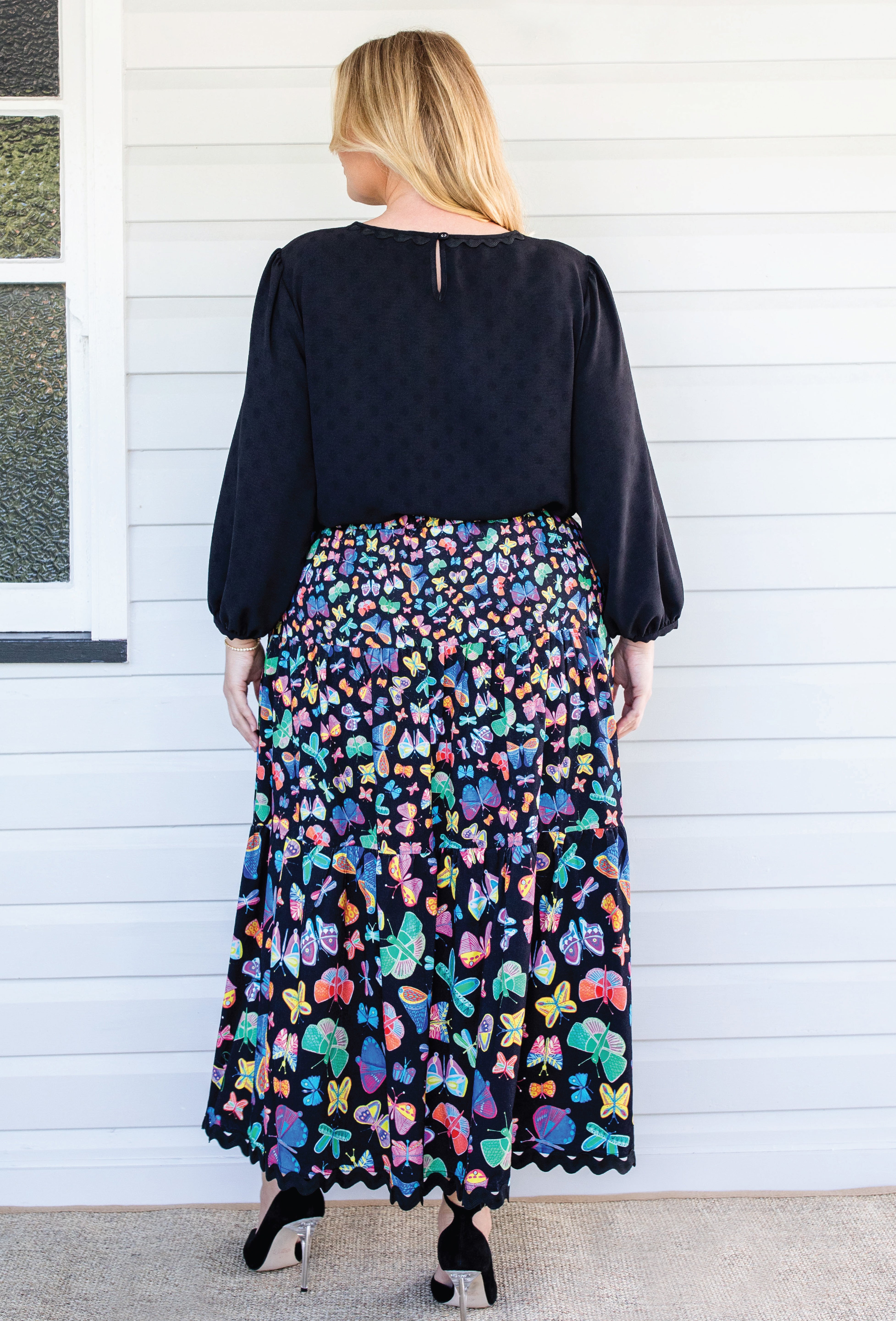 Our Sally Skirt is a classic tiered skirt that is fancy enough for a special occasion, yet comfortable enough for every day.