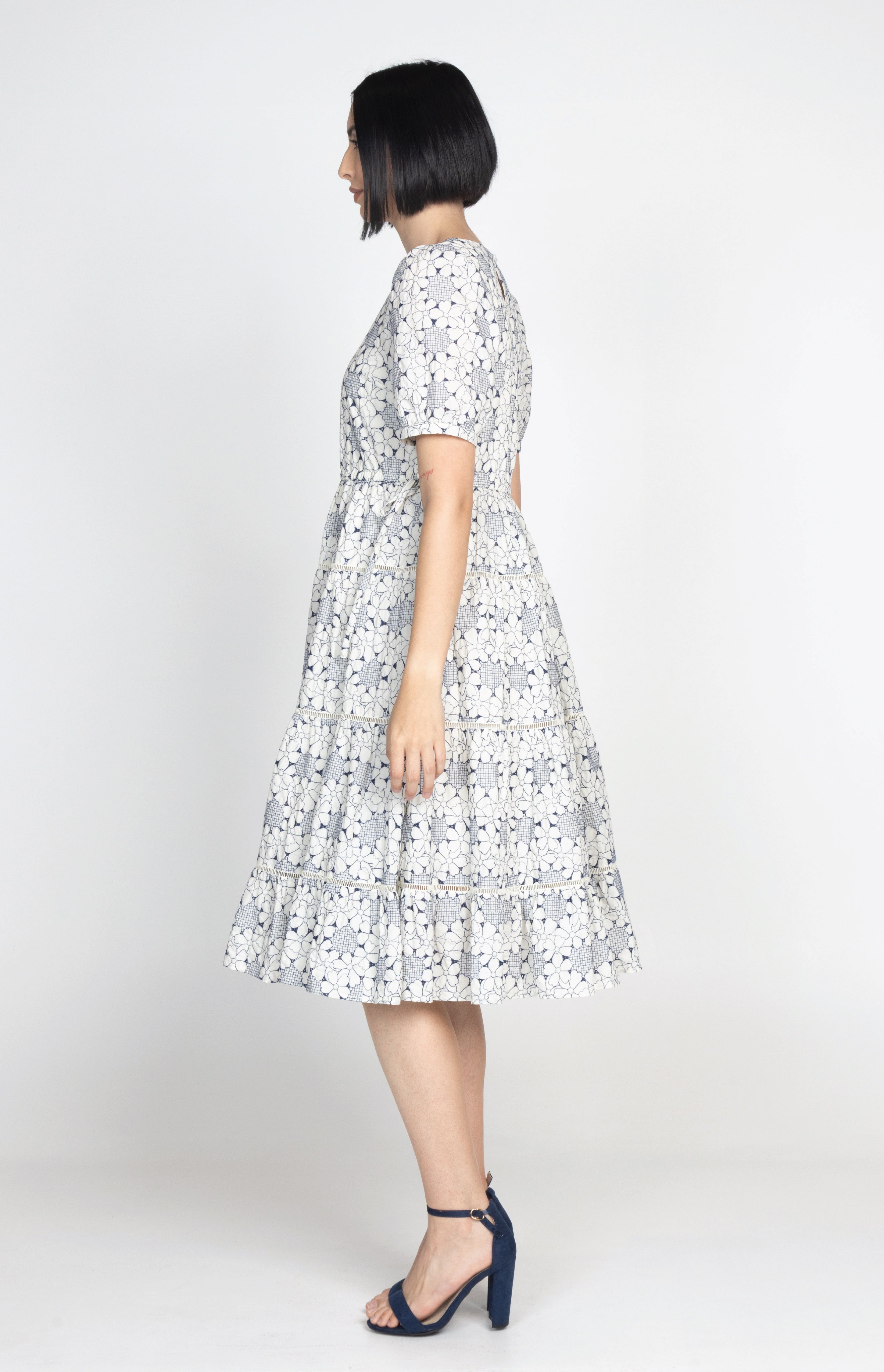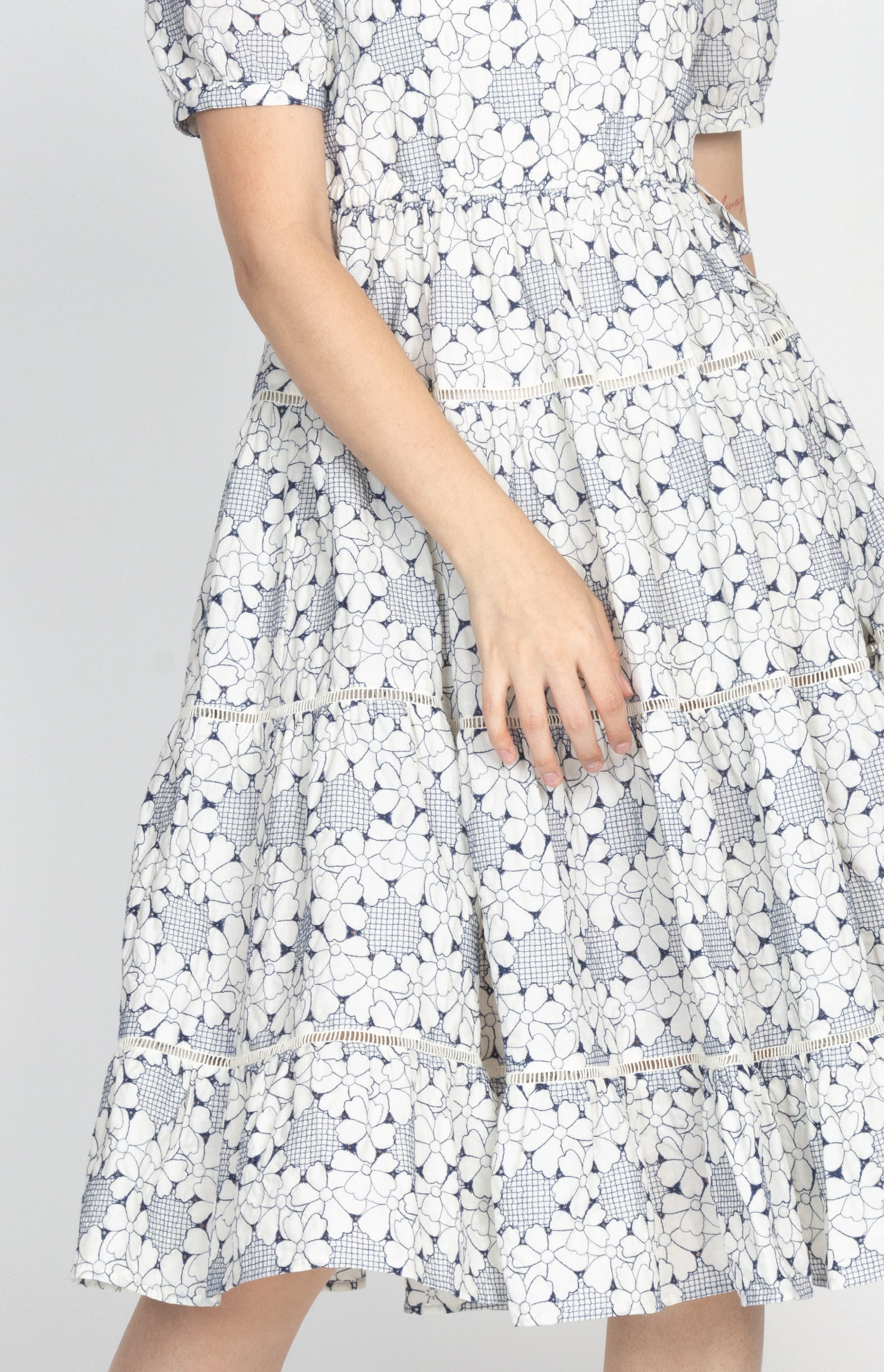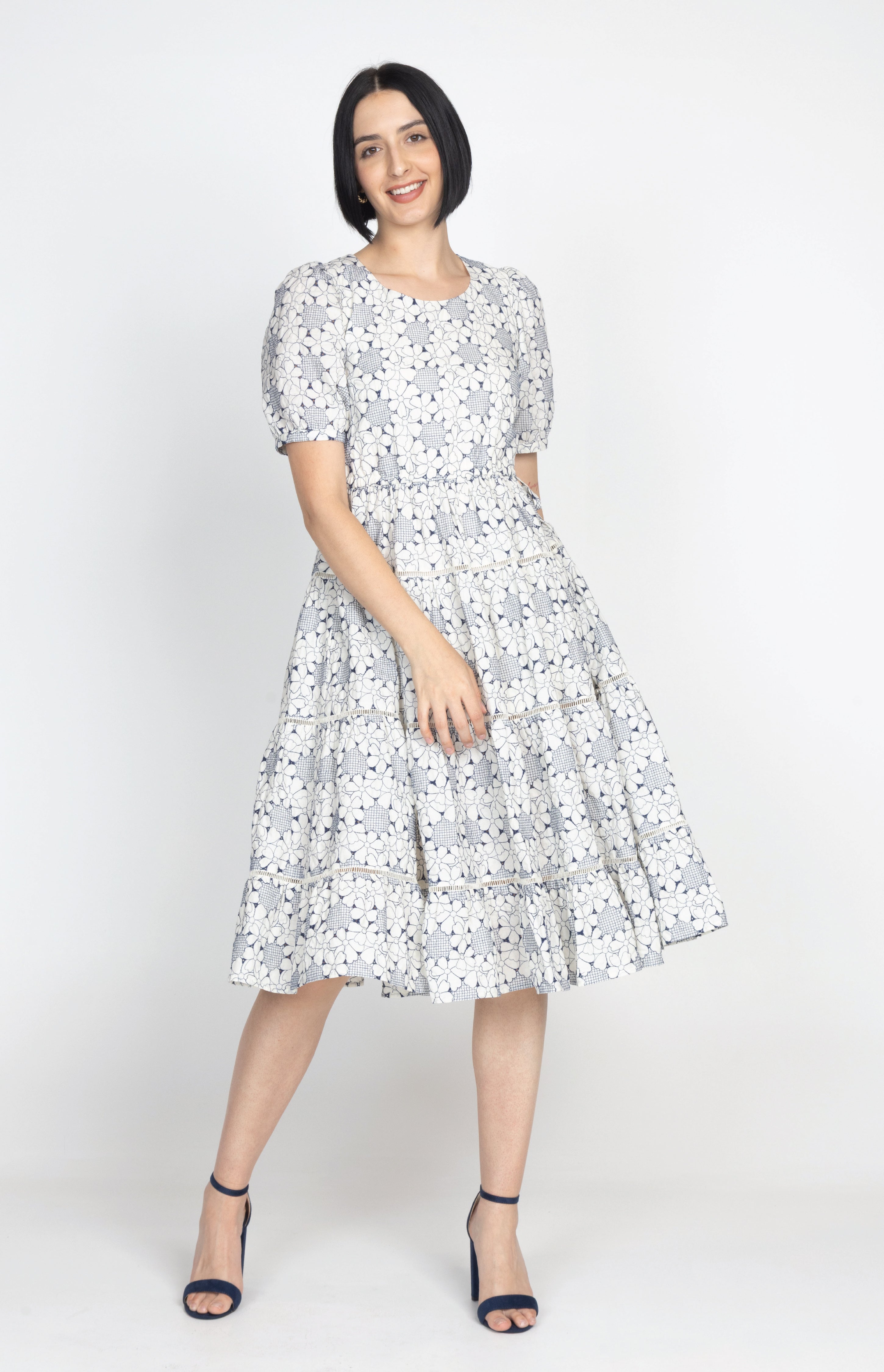 Eloise is crafted in the most delicate cotton embroidered lace and fully lined in cotton for a striking, yet cool and effortless look for summer. The pretty little details - softly gathered sleeves, a fabulous full skirt, and ladder lace trim - make this dress a truly special piece you will wear and love forever.