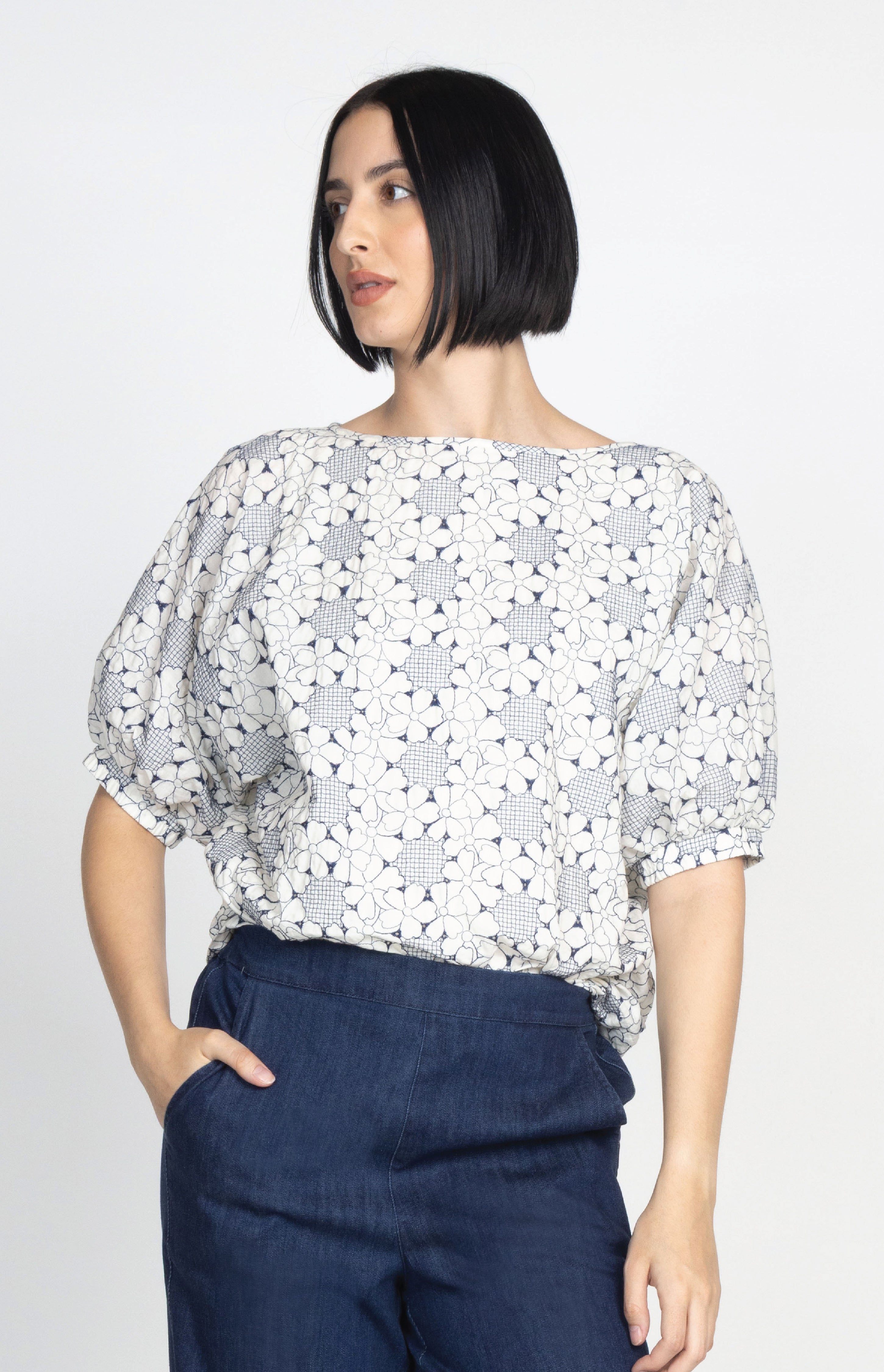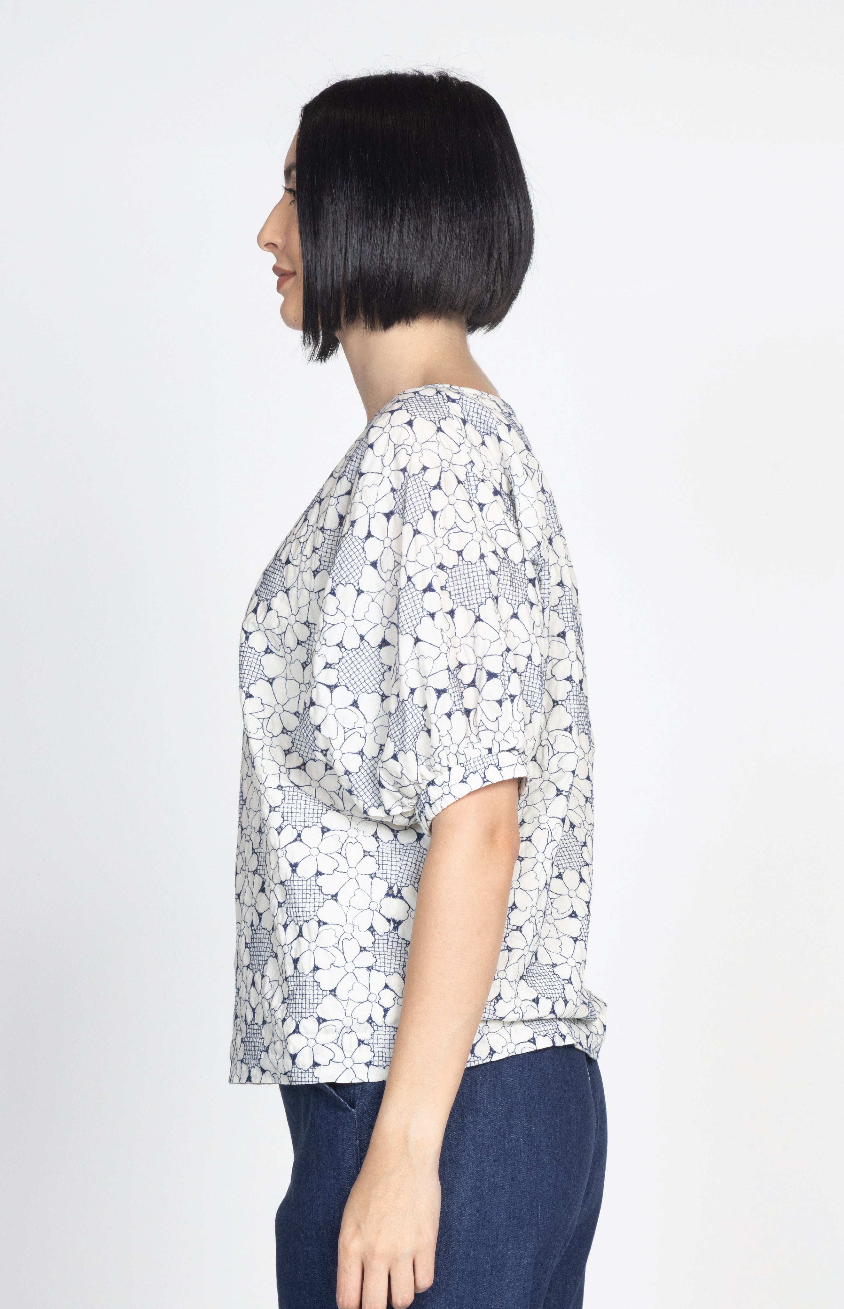 Pretty Please Reversible Top in navy broderie