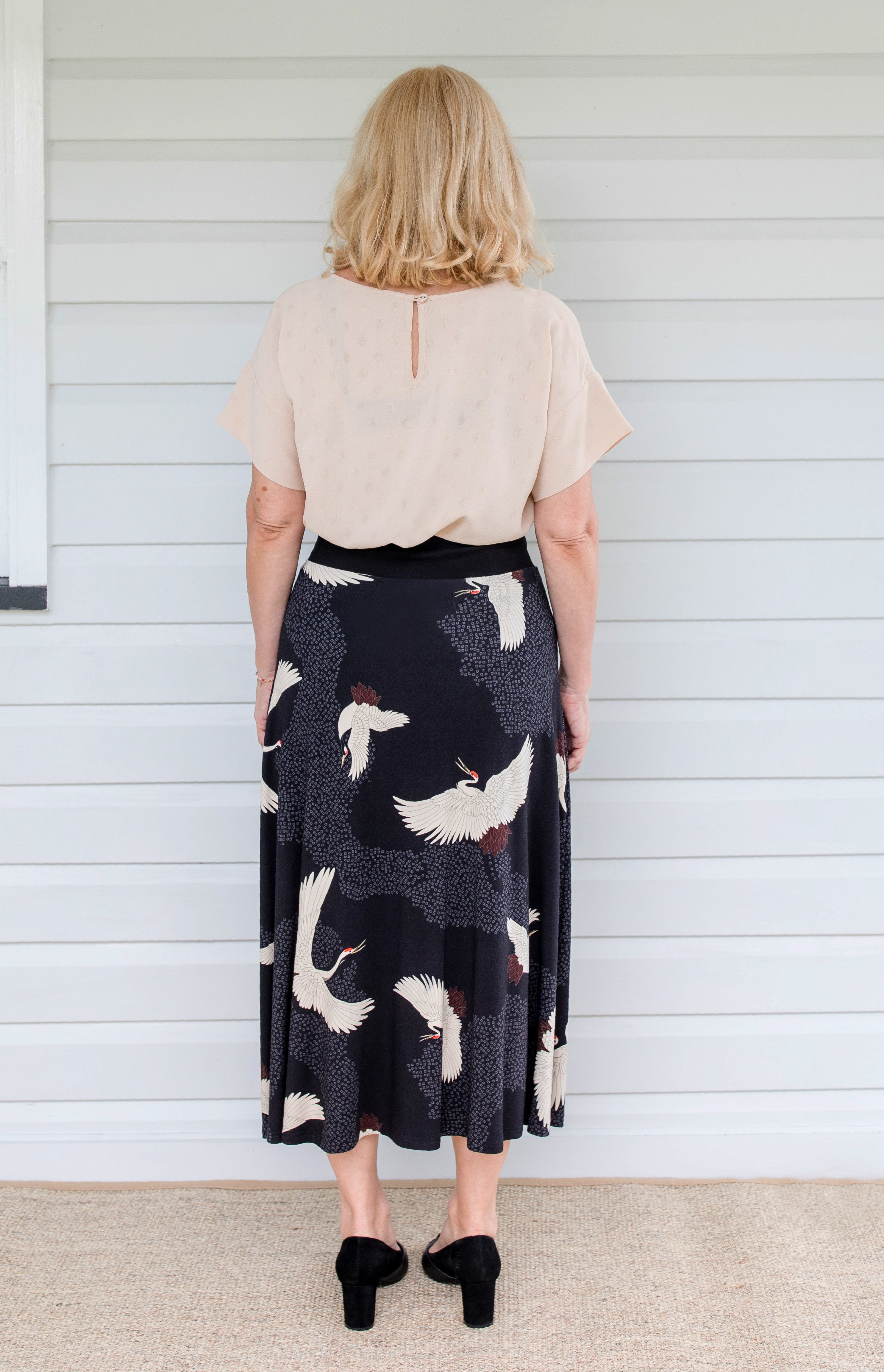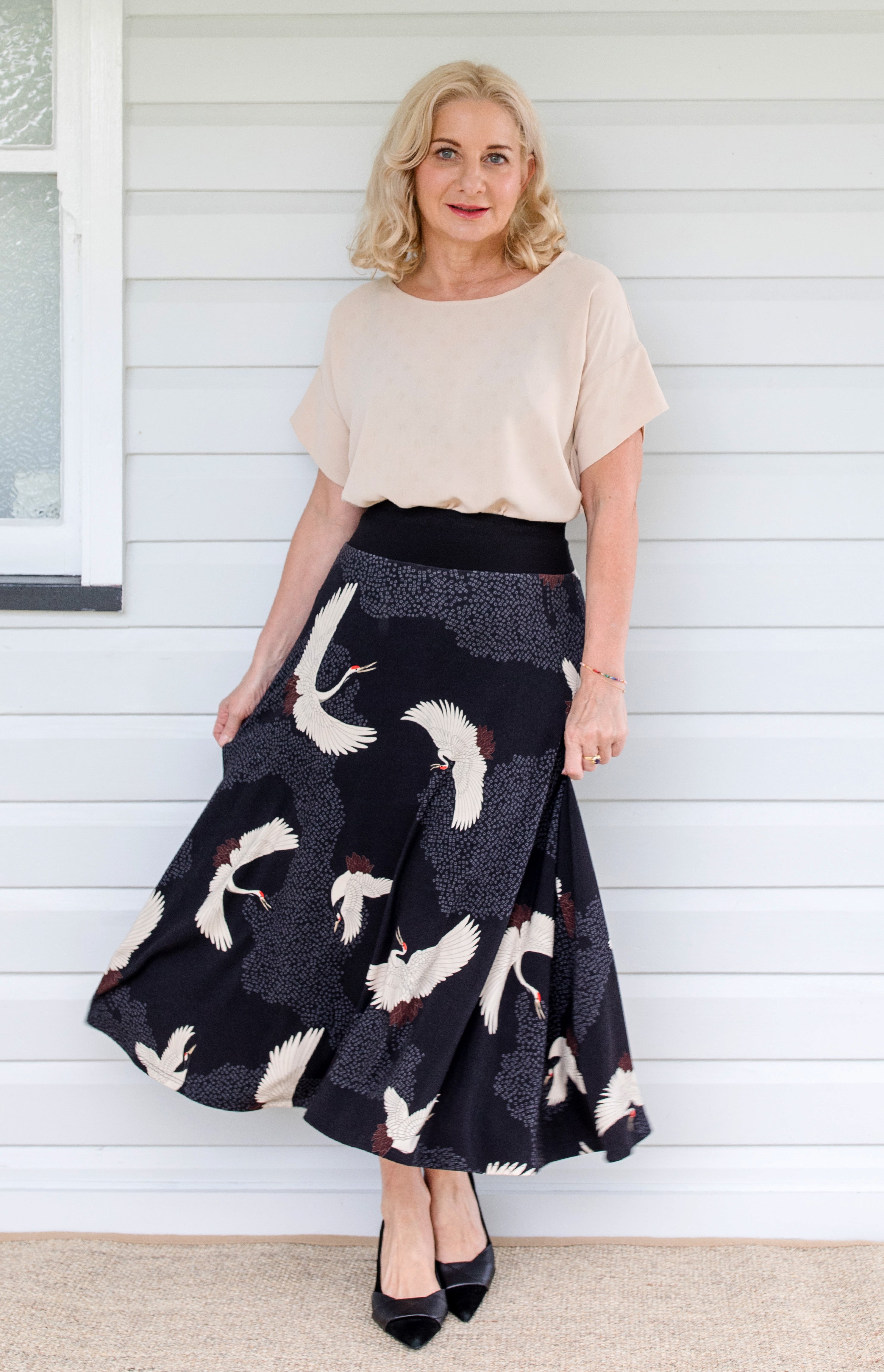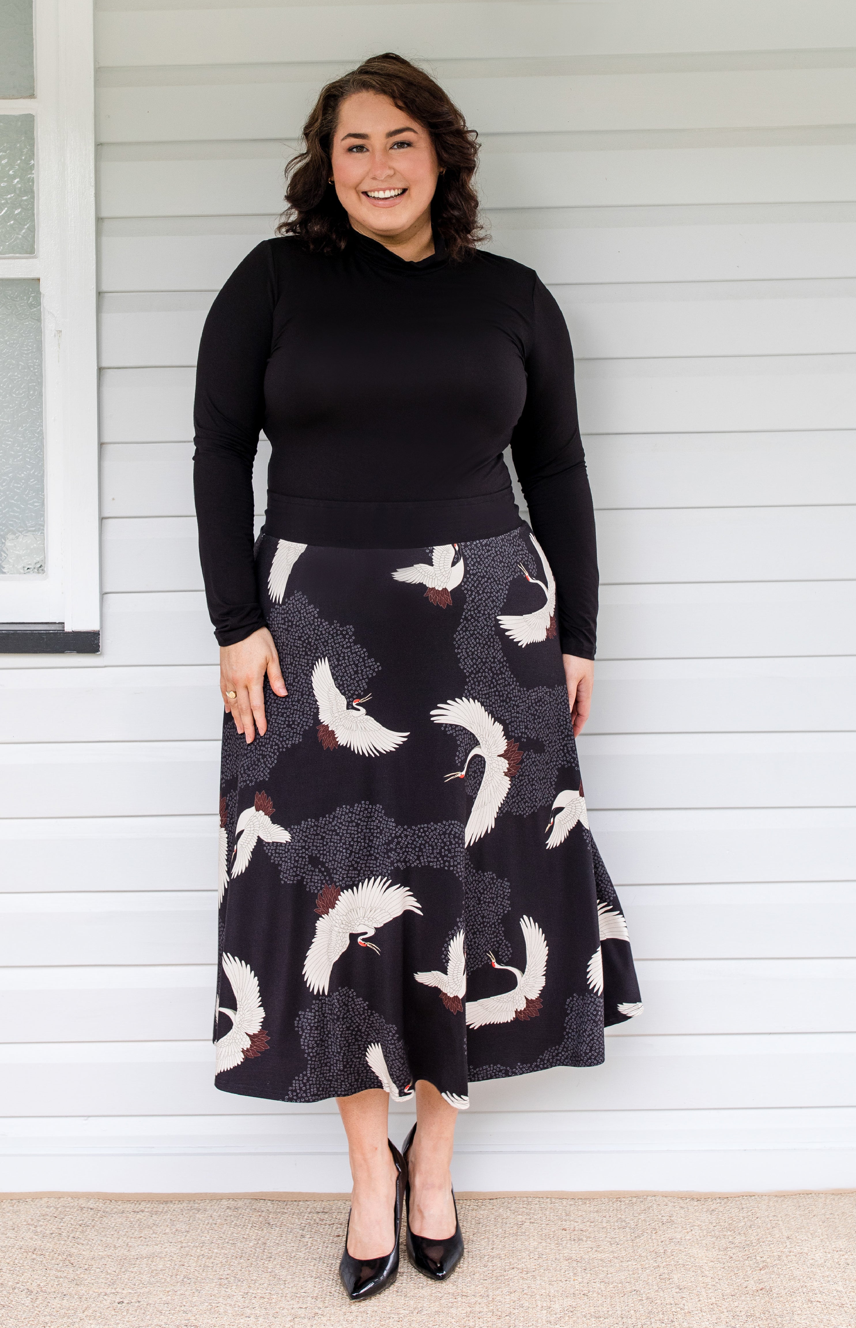 Fashioned in our beautiful bamboo jersey, with a ponte yoke so that the skirt is light and twirly but the thick stretch yoke ensures it stays firmly in place and feels comfortable to wear.