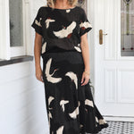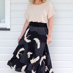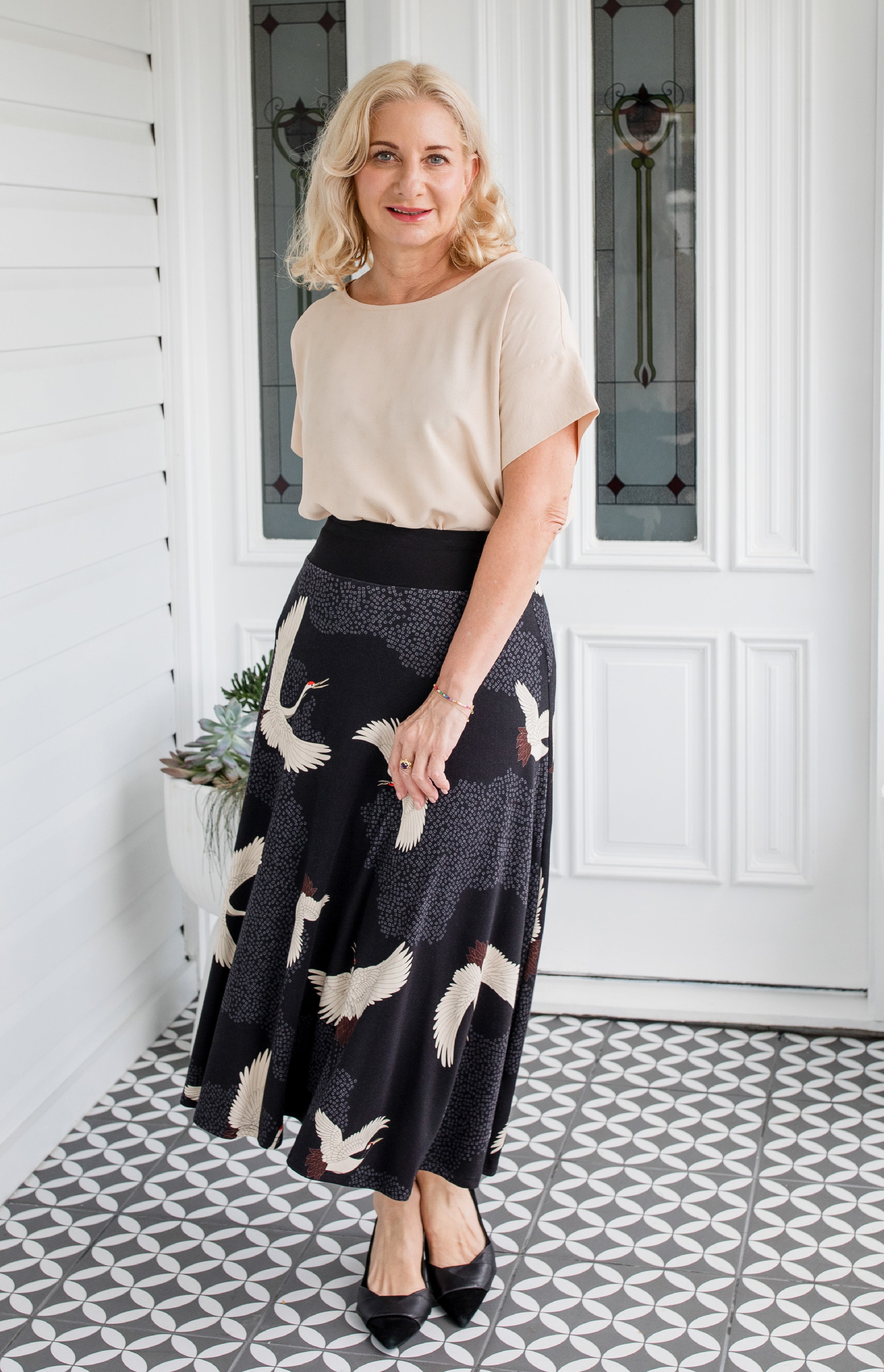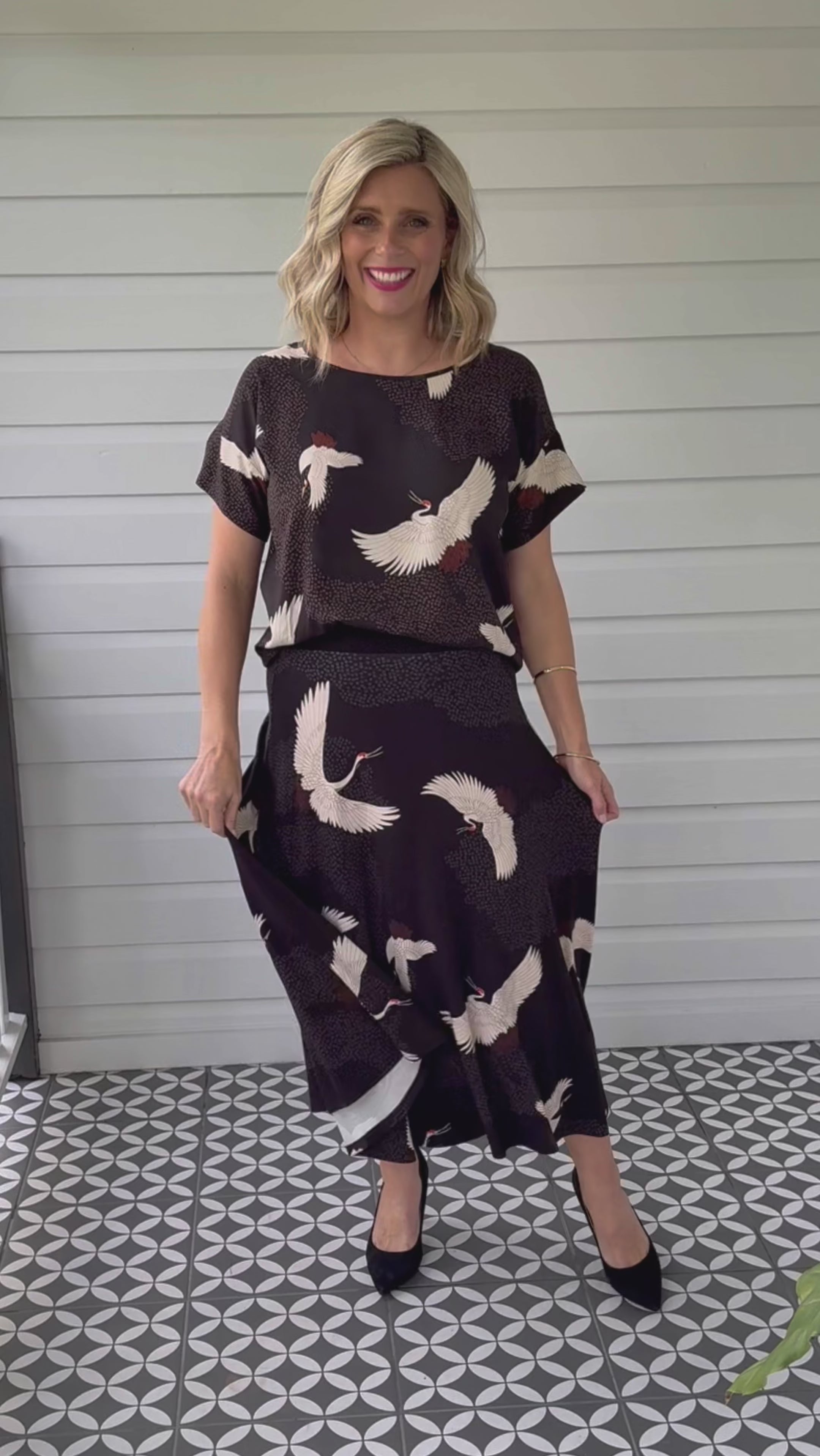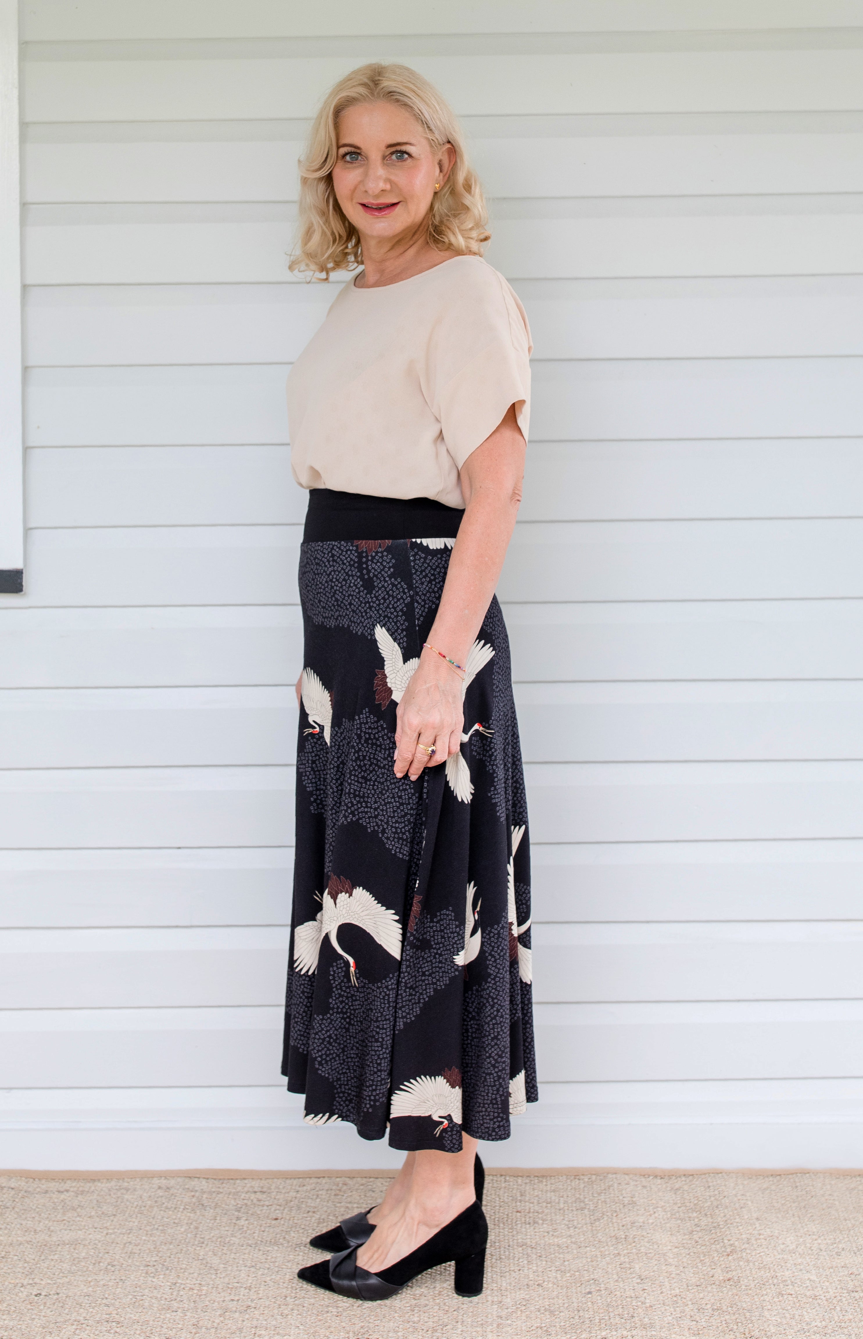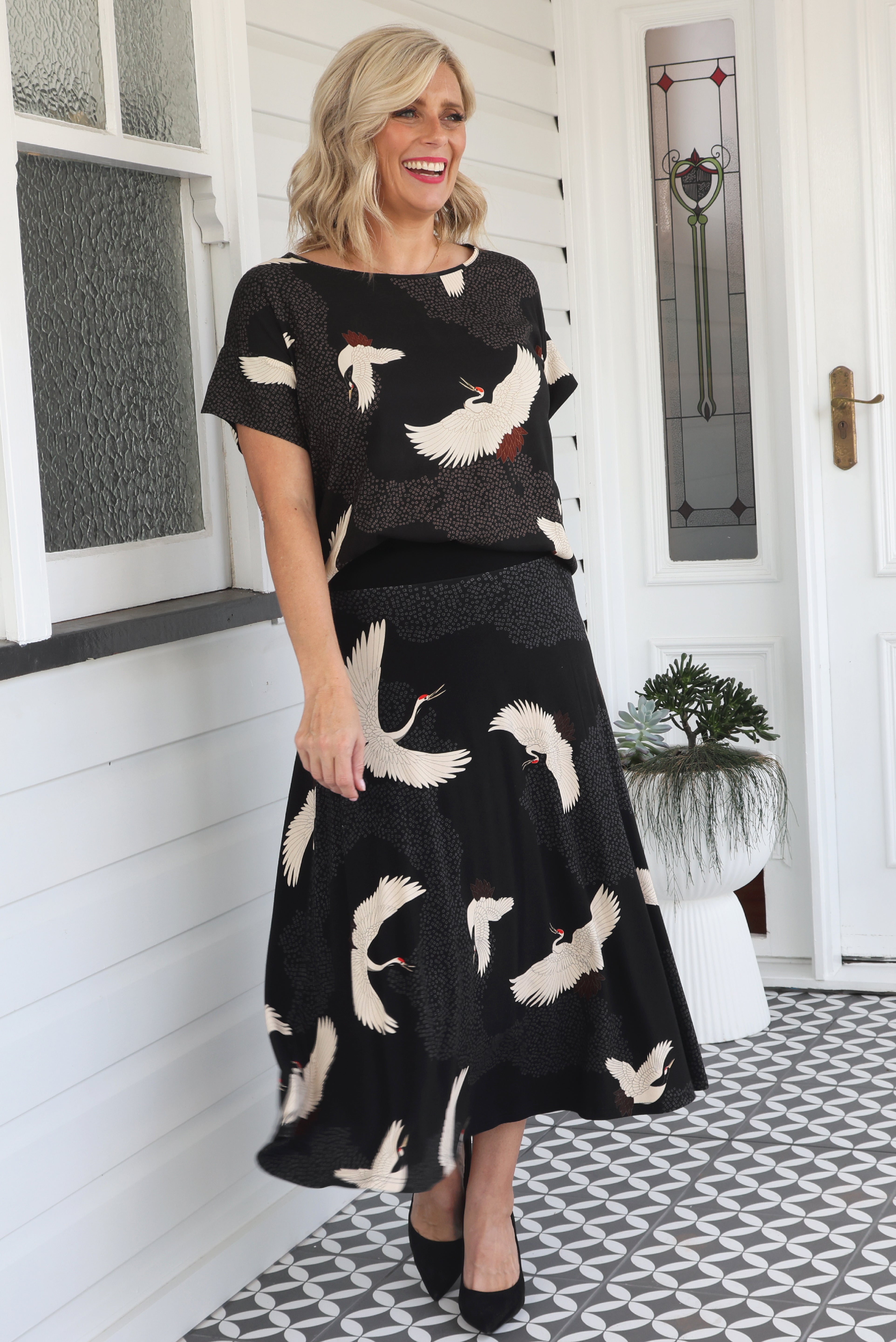 Fashioned in our beautiful bamboo jersey, with a ponte yoke so that the skirt is light and twirly but the thick stretch yoke ensures it stays firmly in place and feels comfortable to wear.