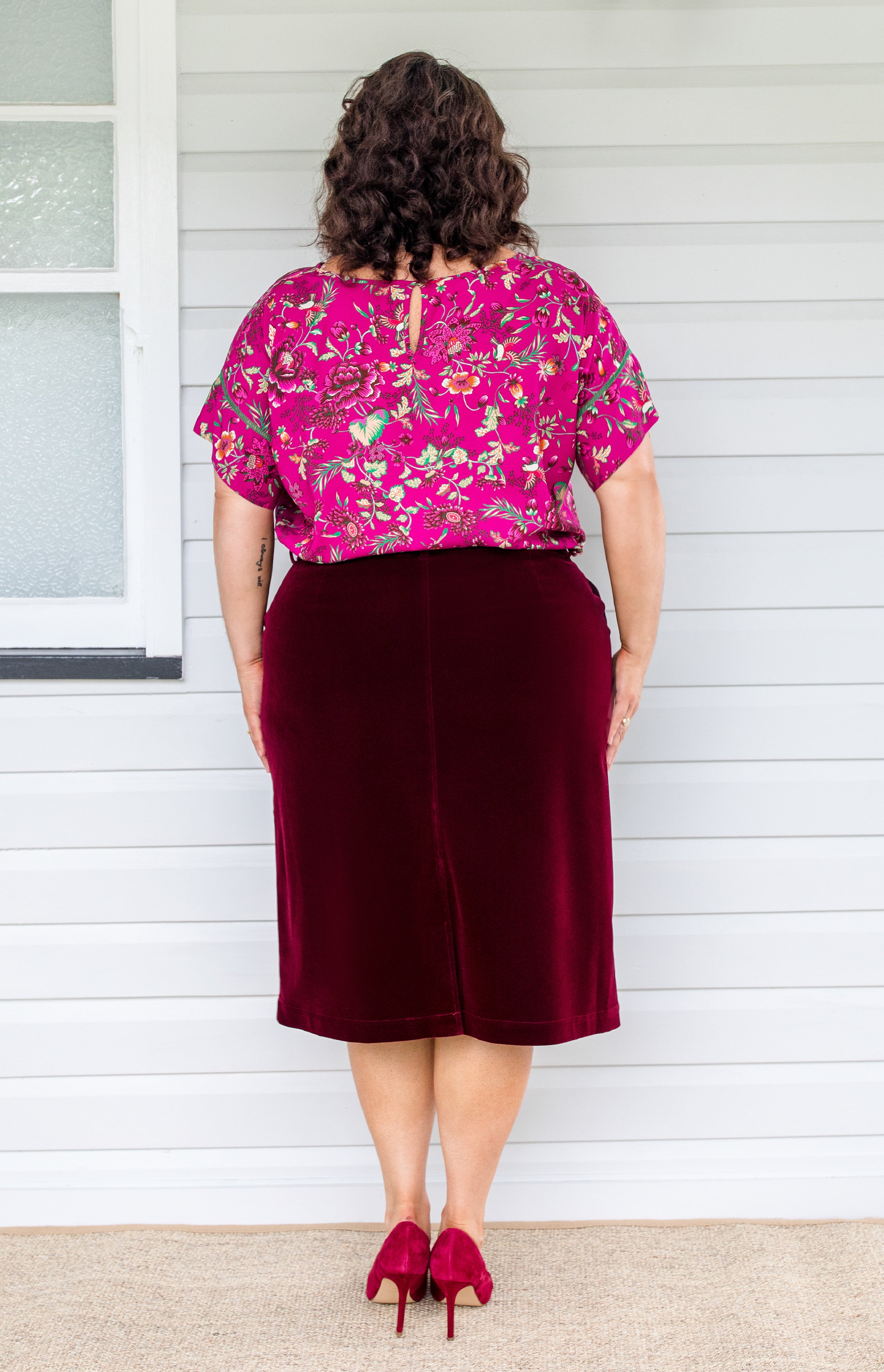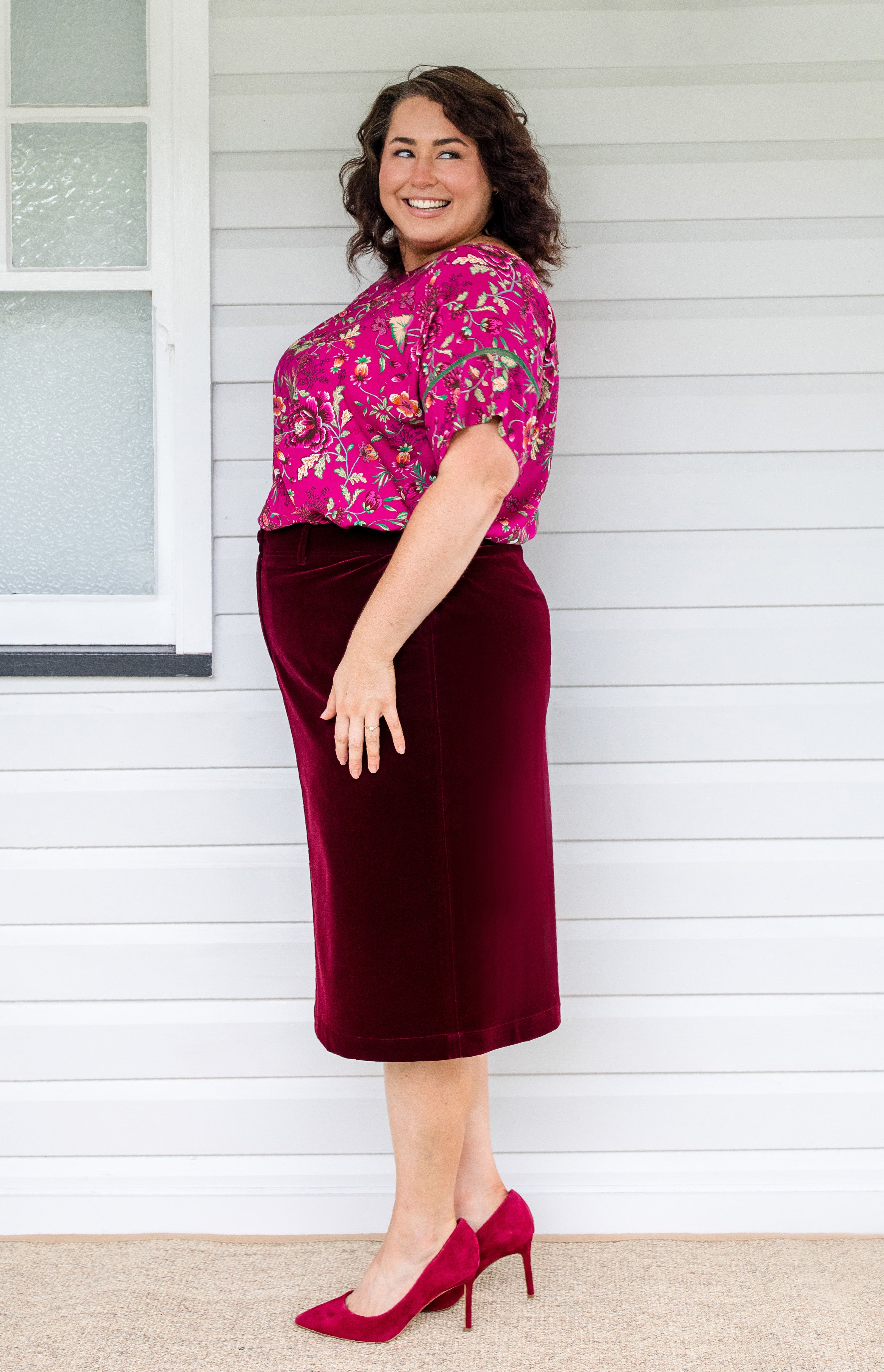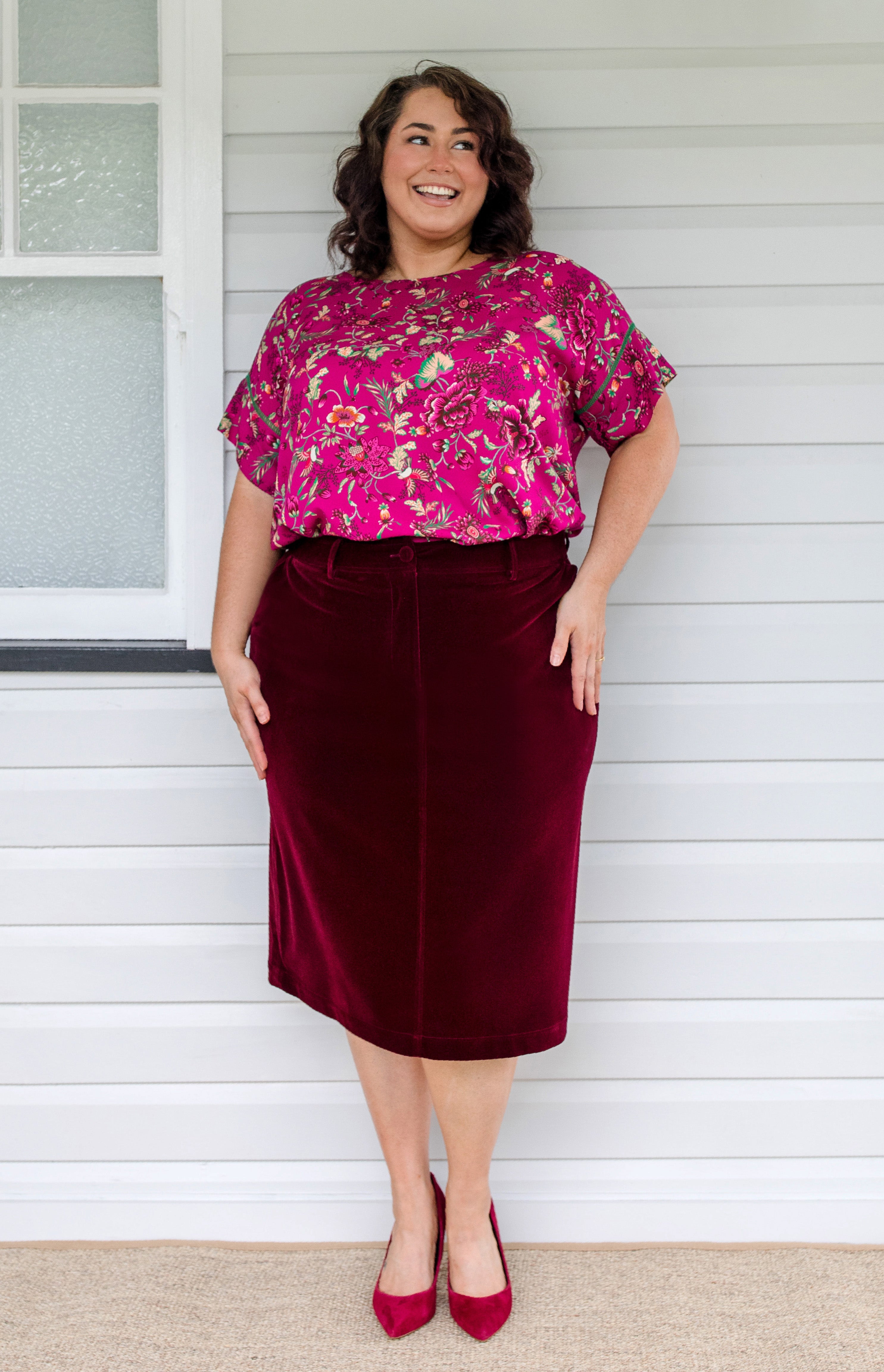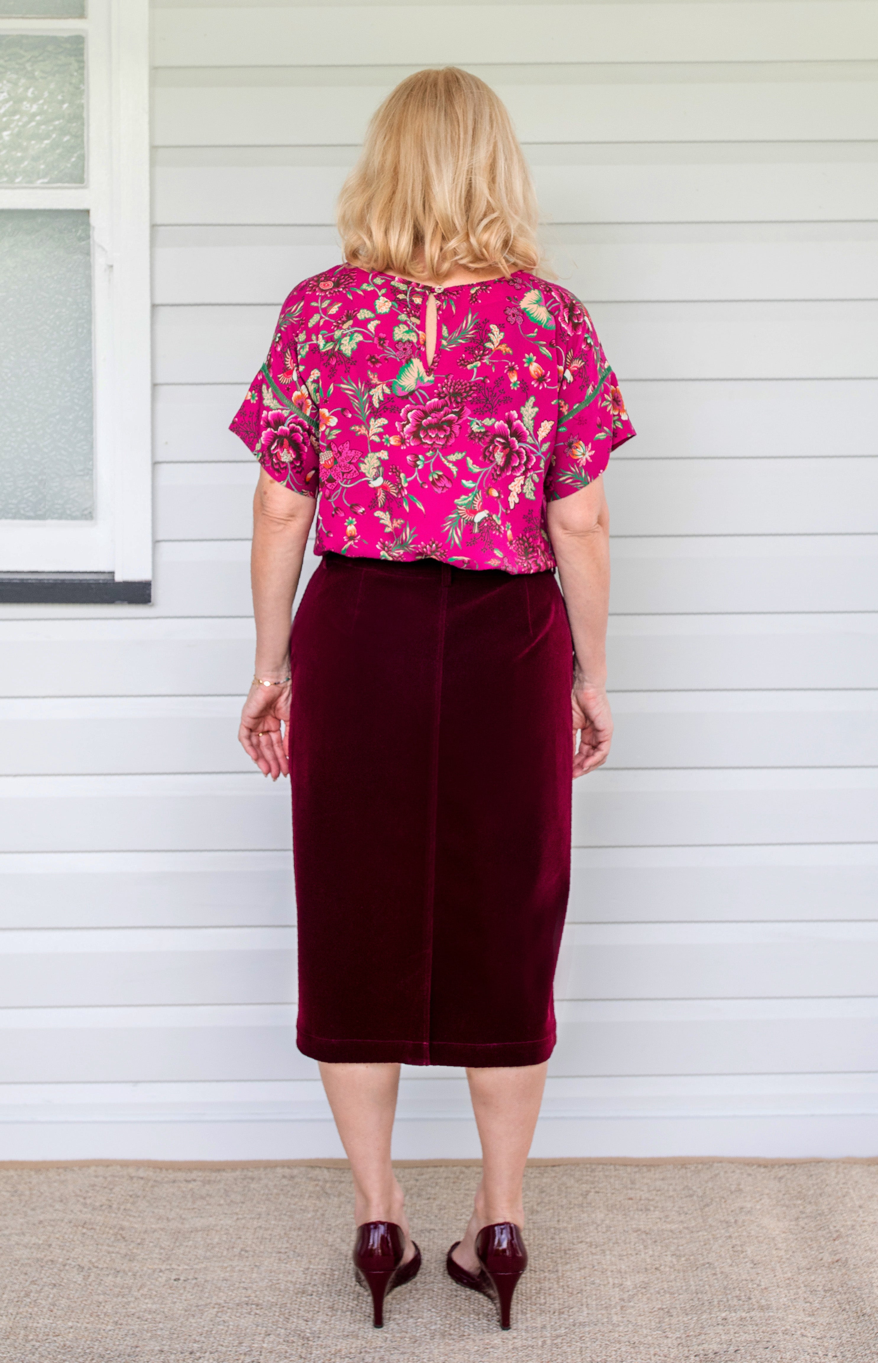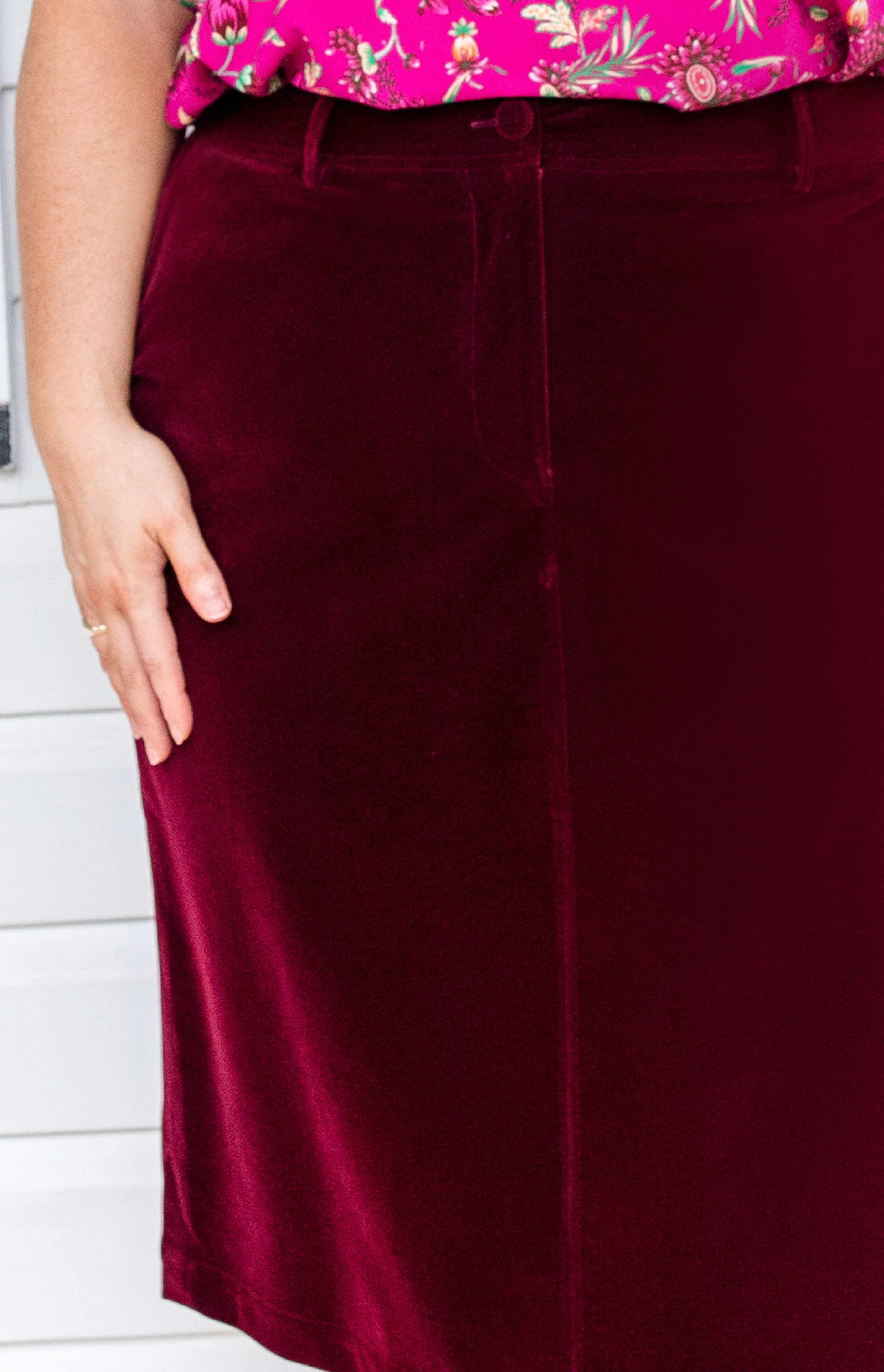 A simple pencil skirt in luxe velvet with stretch - looks fancy, feels ooh so comfortable!