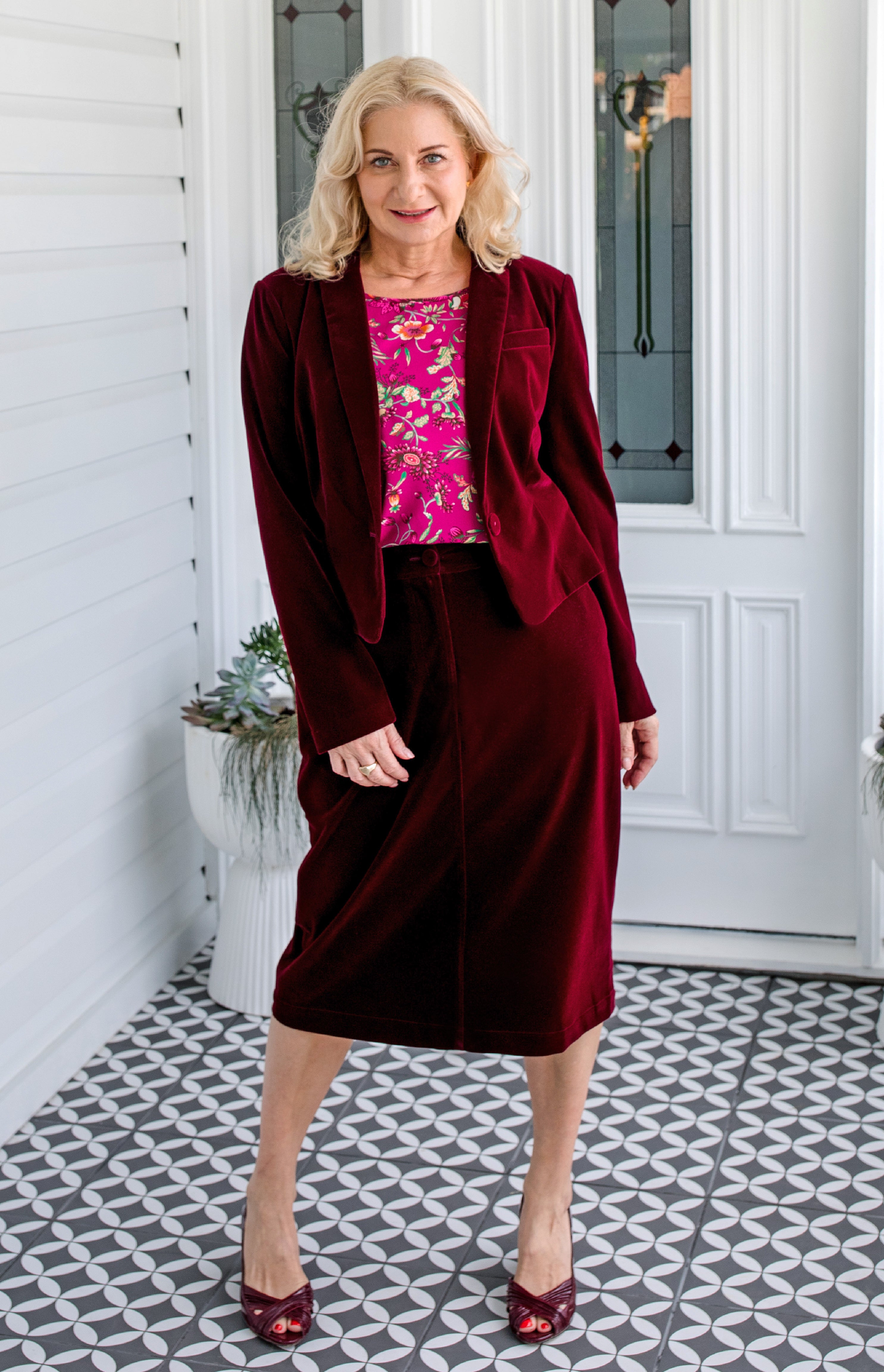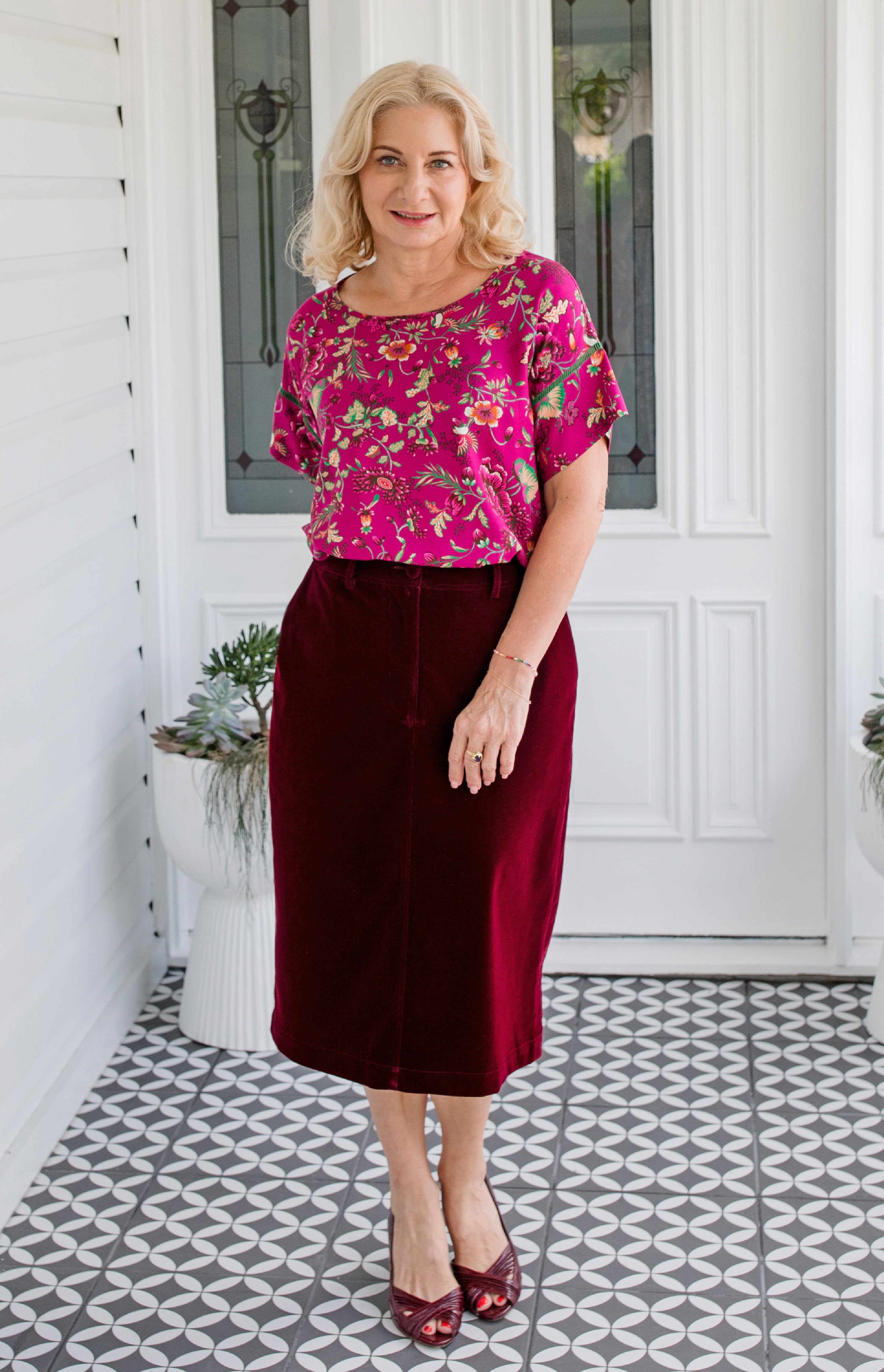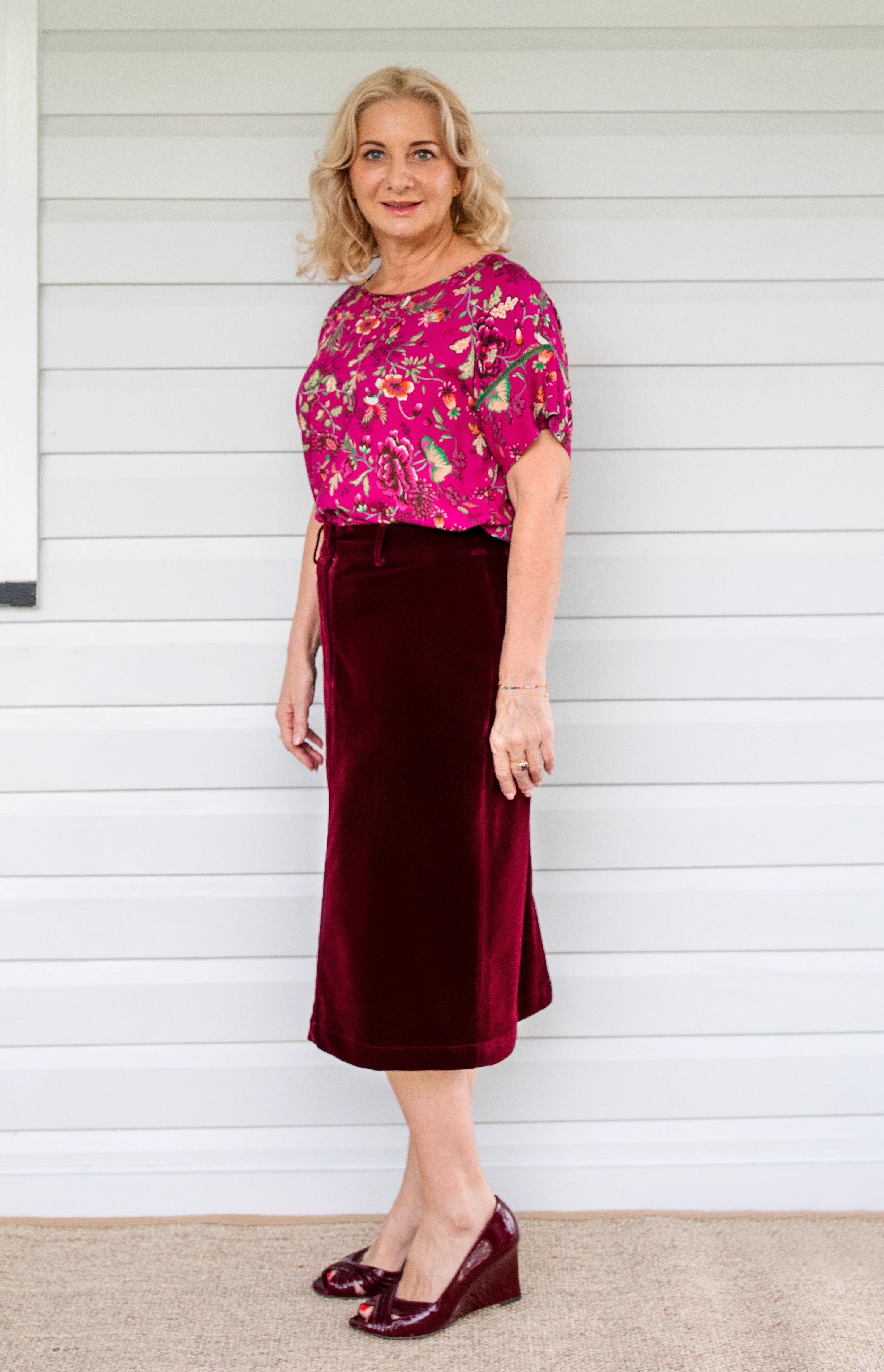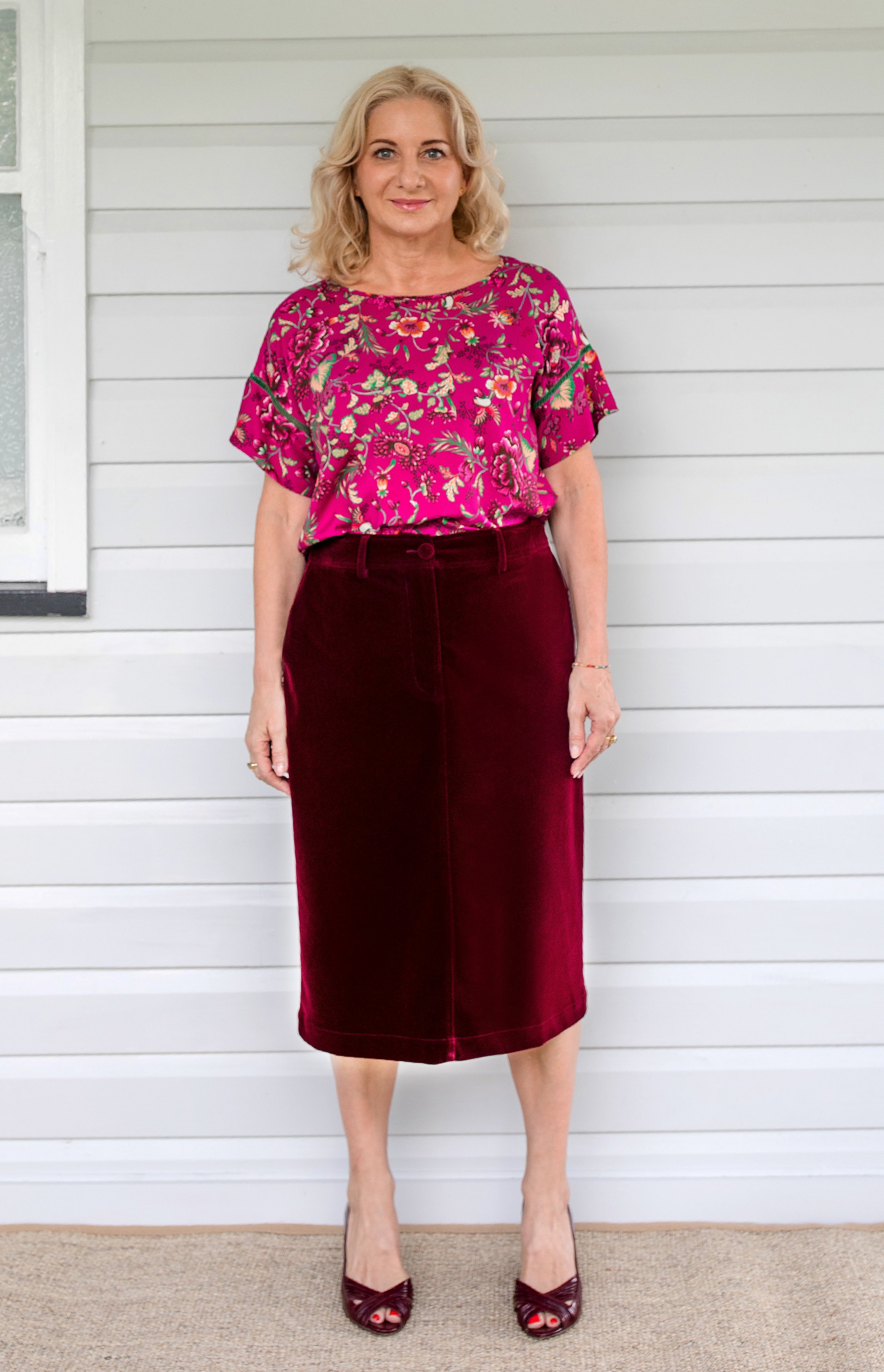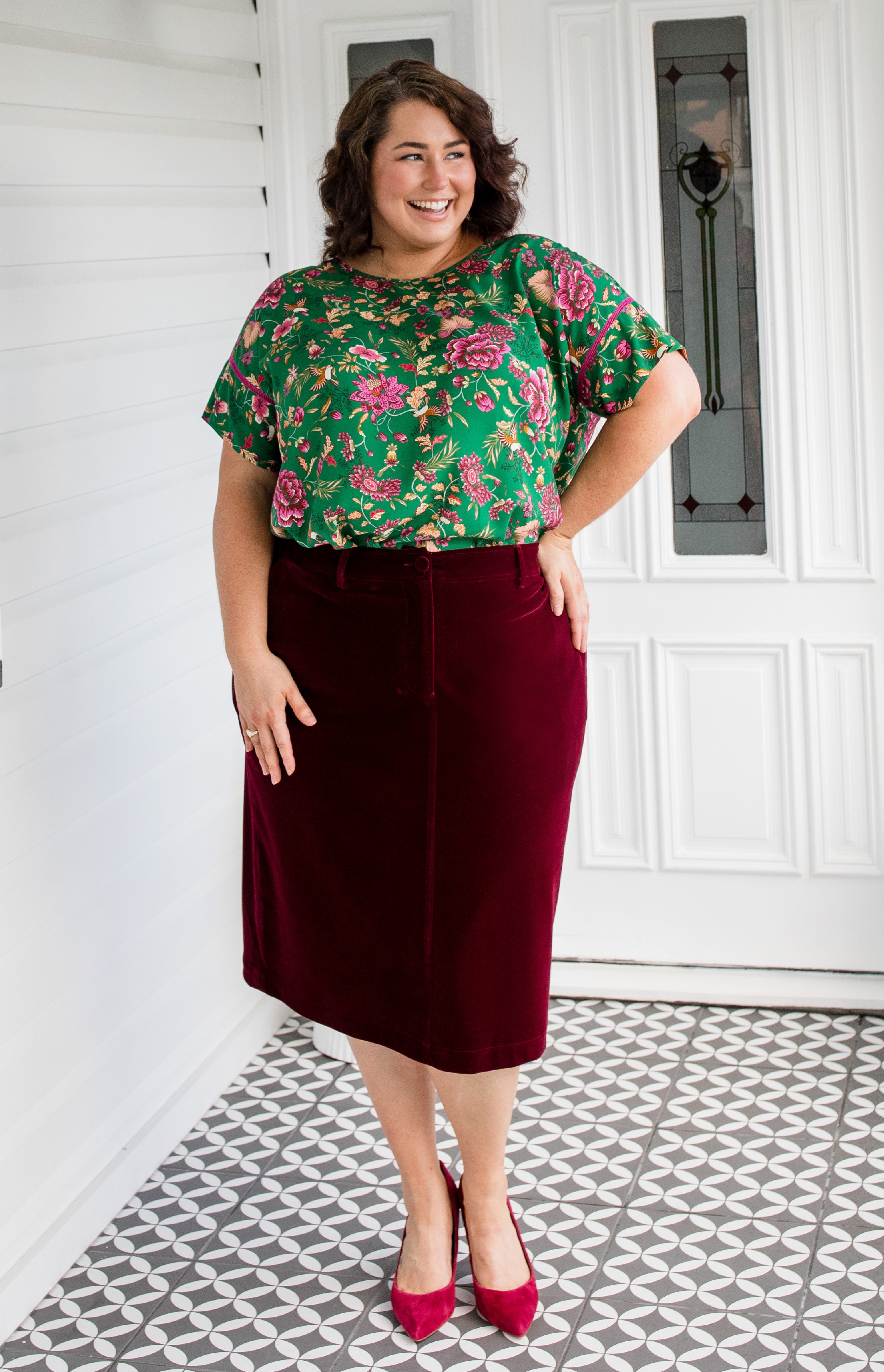 A simple pencil skirt in luxe velvet with stretch - looks fancy, feels ooh so comfortable!