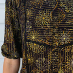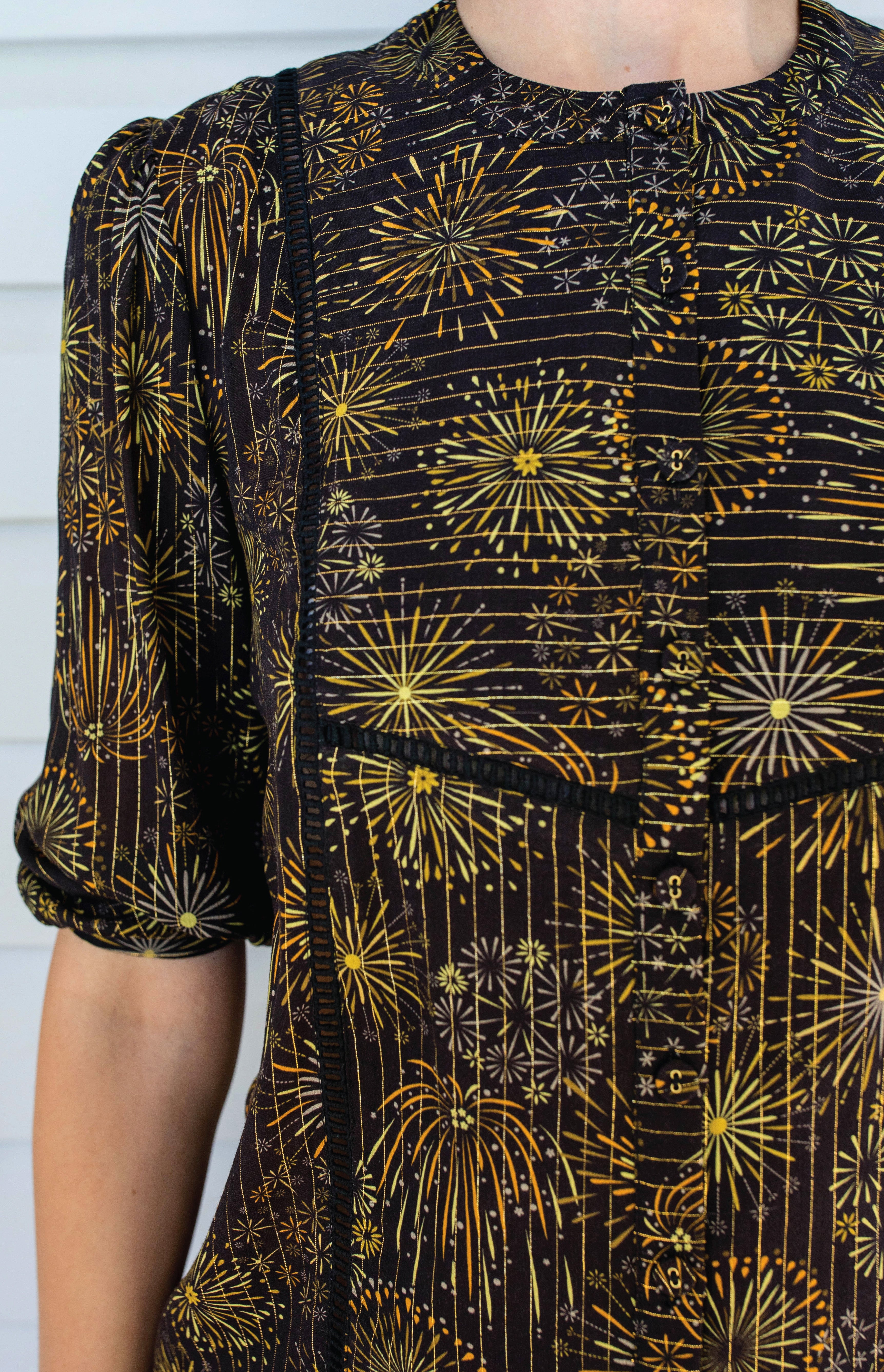 The ladder lace, luxe fabric with a subtle sparkle stripe, the fabulous fit... there is so much to love about this blouse.