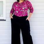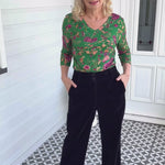 These pants run large - we recommend to size down in this style. Dee is wearing a size 8, and she usually wears a size 10 in our pants.