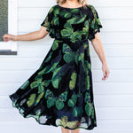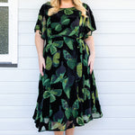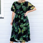 This stunning dress has been fashioned in a beautiful velvet butterfly burnout fabric, and lined in a gorgeous weighty satin fabric.