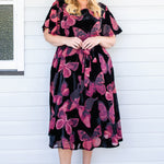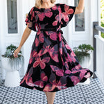 Evie is a classic dress with a lovely floaty sleeve and a tie belt. This is a buy now and wear forever piece that will have you feeling oh so ladylike and glamorous for your next special event.