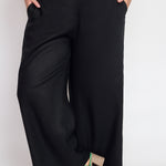 These perfect pants sit high on the waist, with a wide structured waist band, and cut with wide legs.