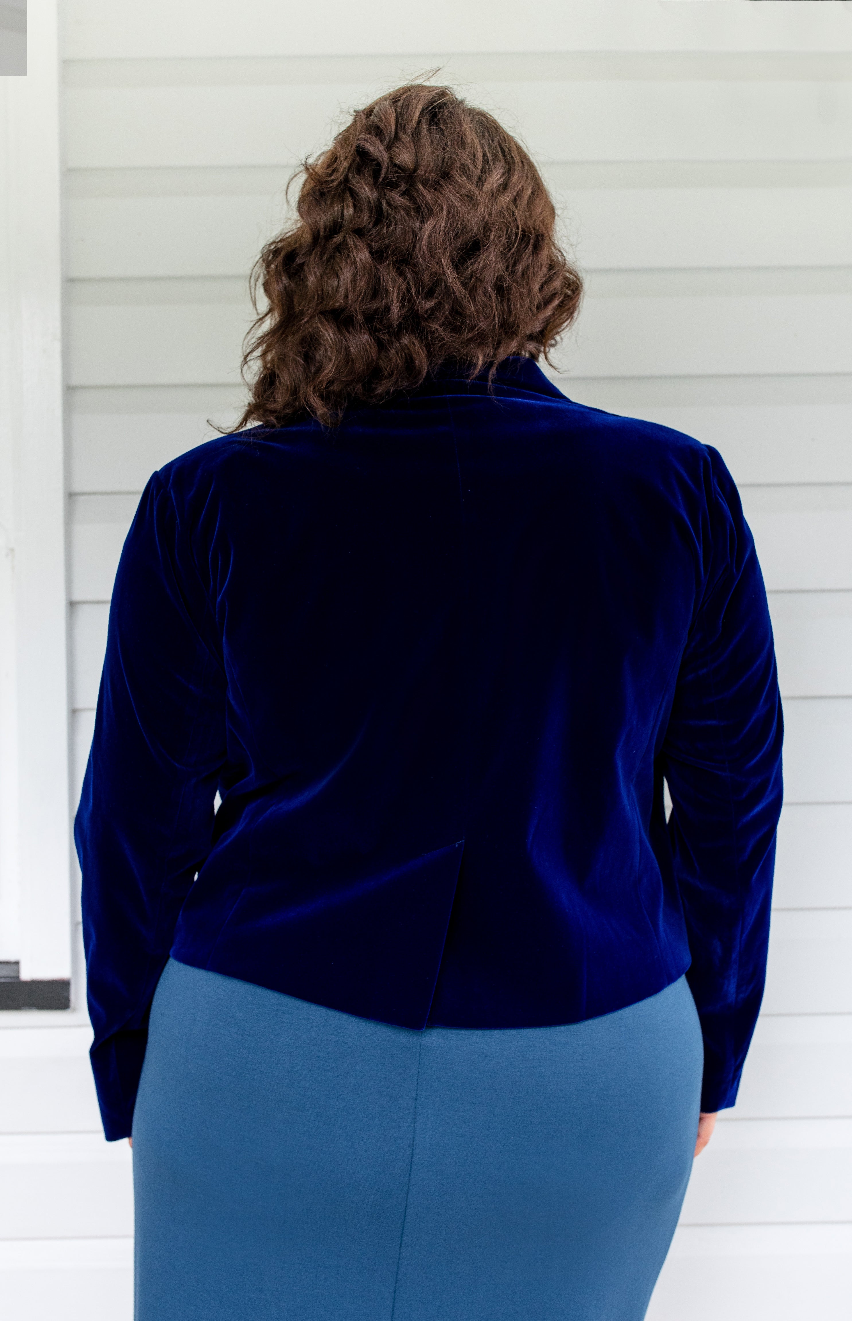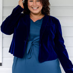 Maiocchi perfect velvet blazer in midnight blue – luxe cropped women’s jacket