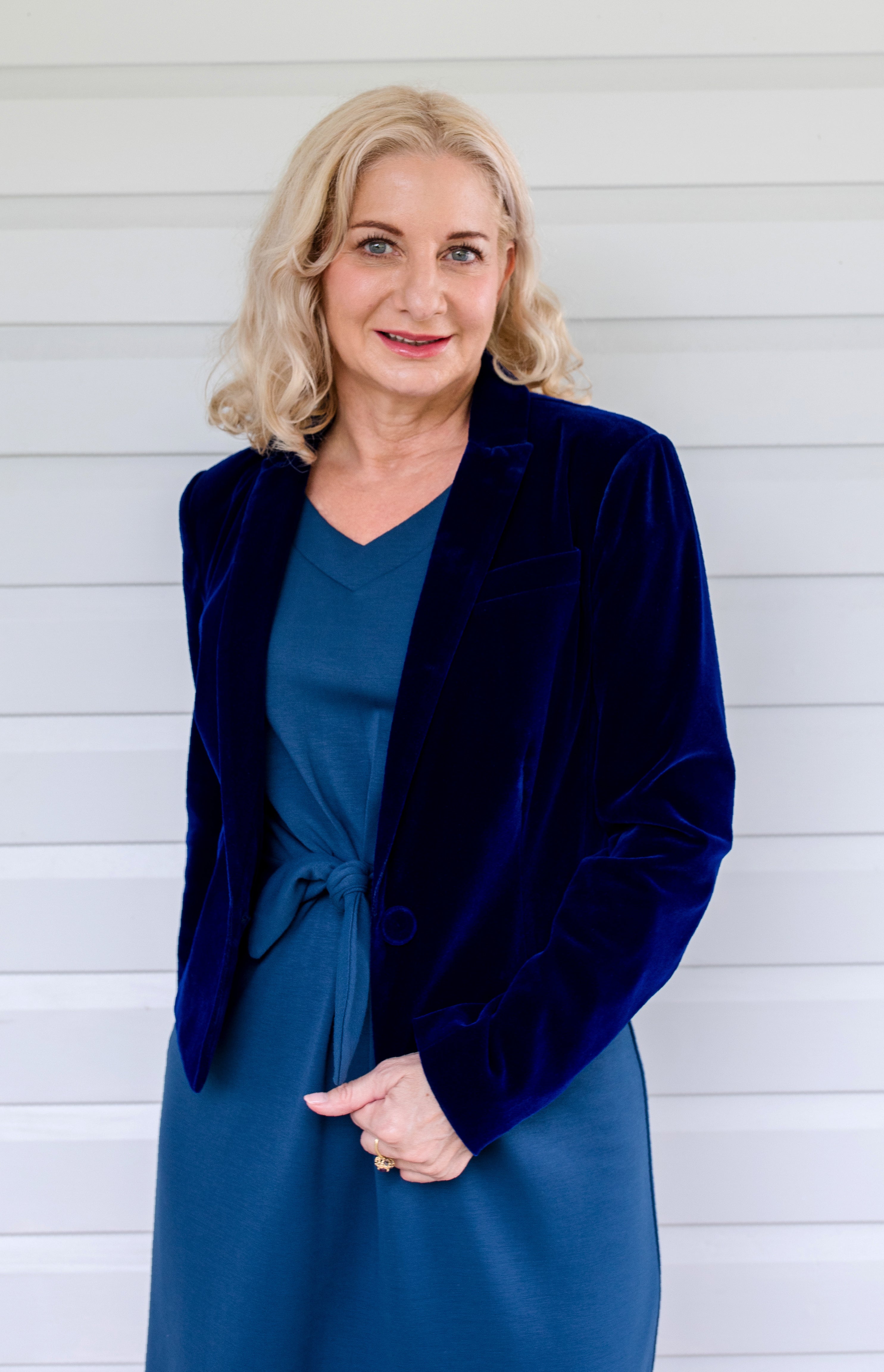 Maiocchi perfect velvet blazer in midnight blue - luxe women's velvet blazer