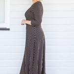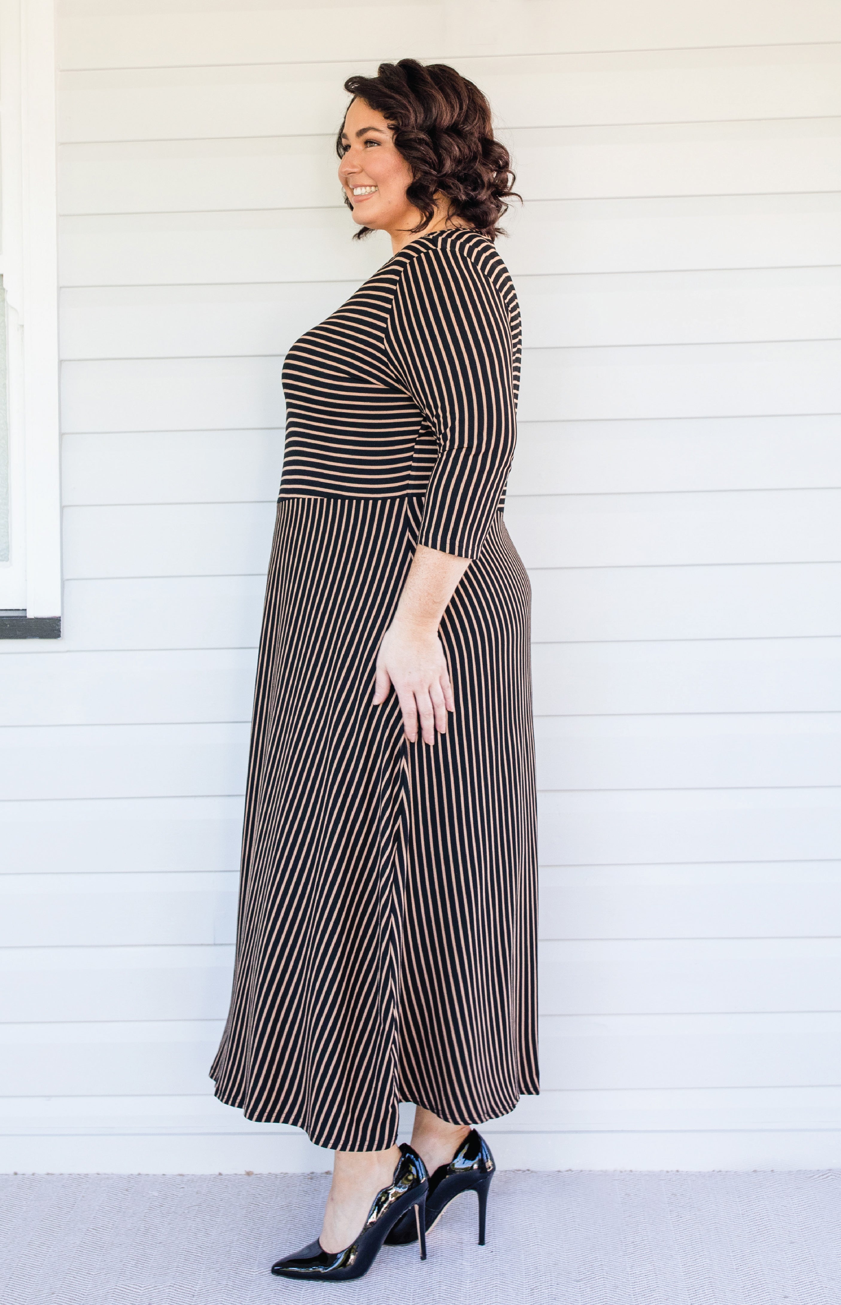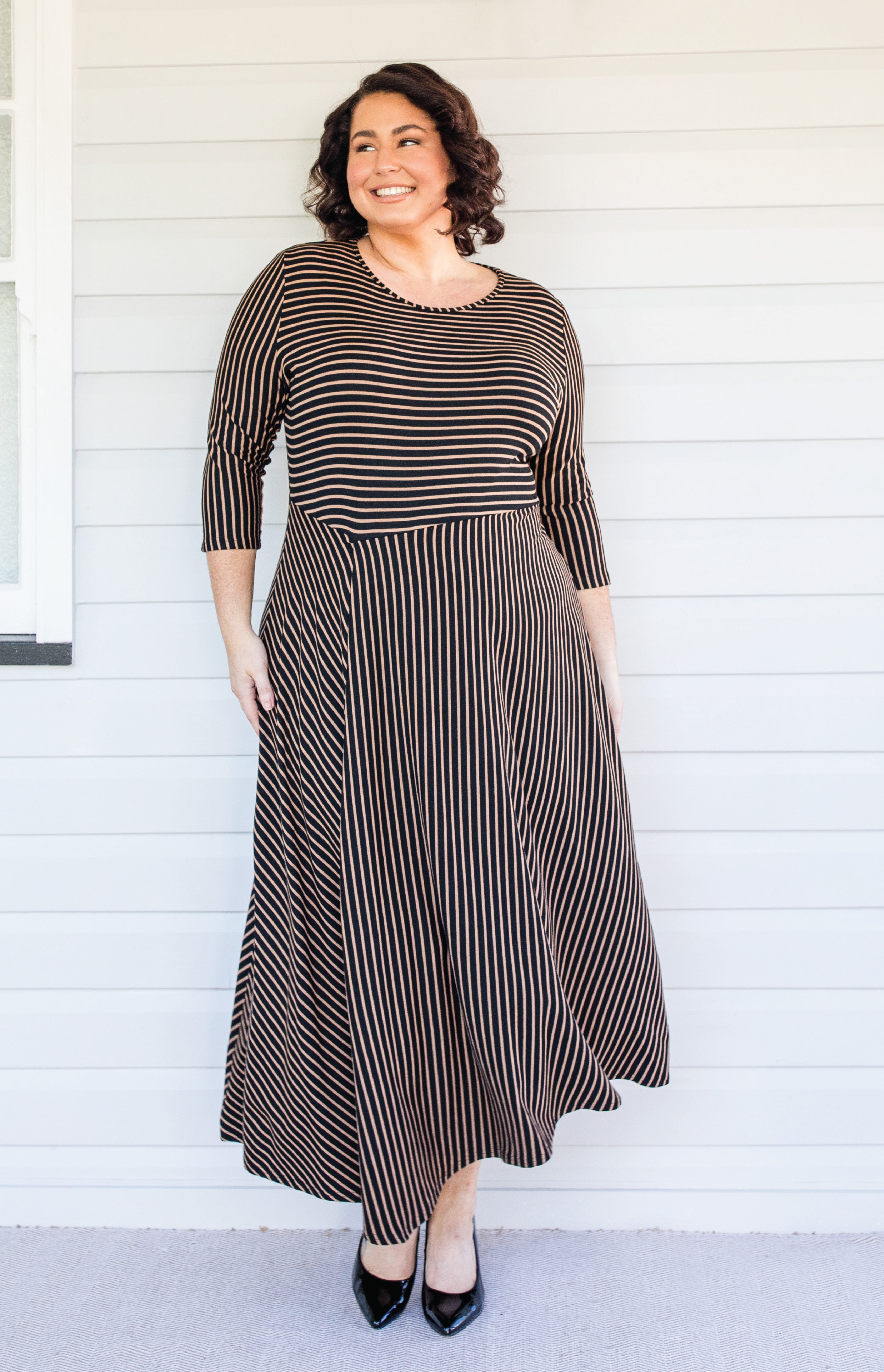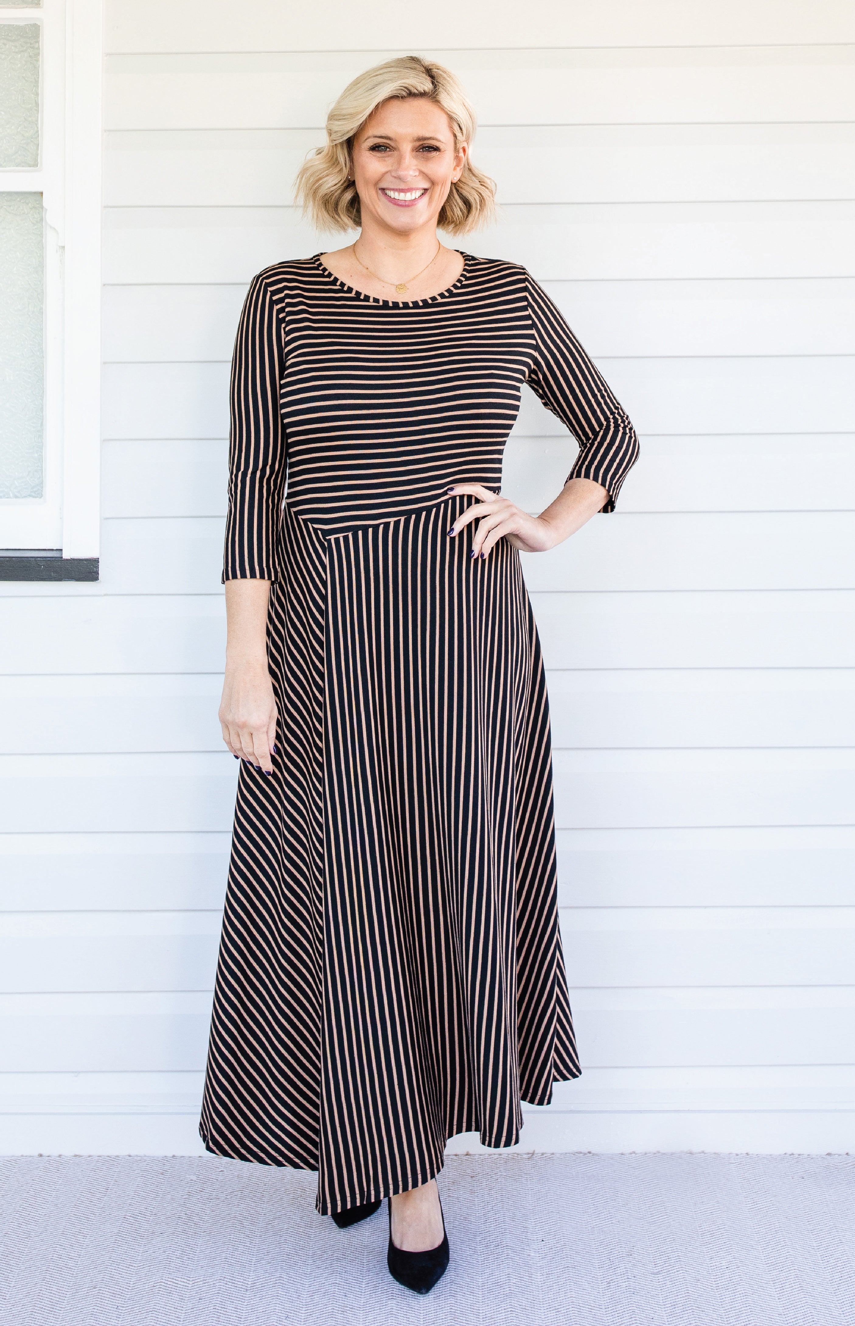 Zoe Dress 3/4 Sleeve in sienna stripe