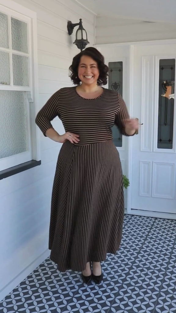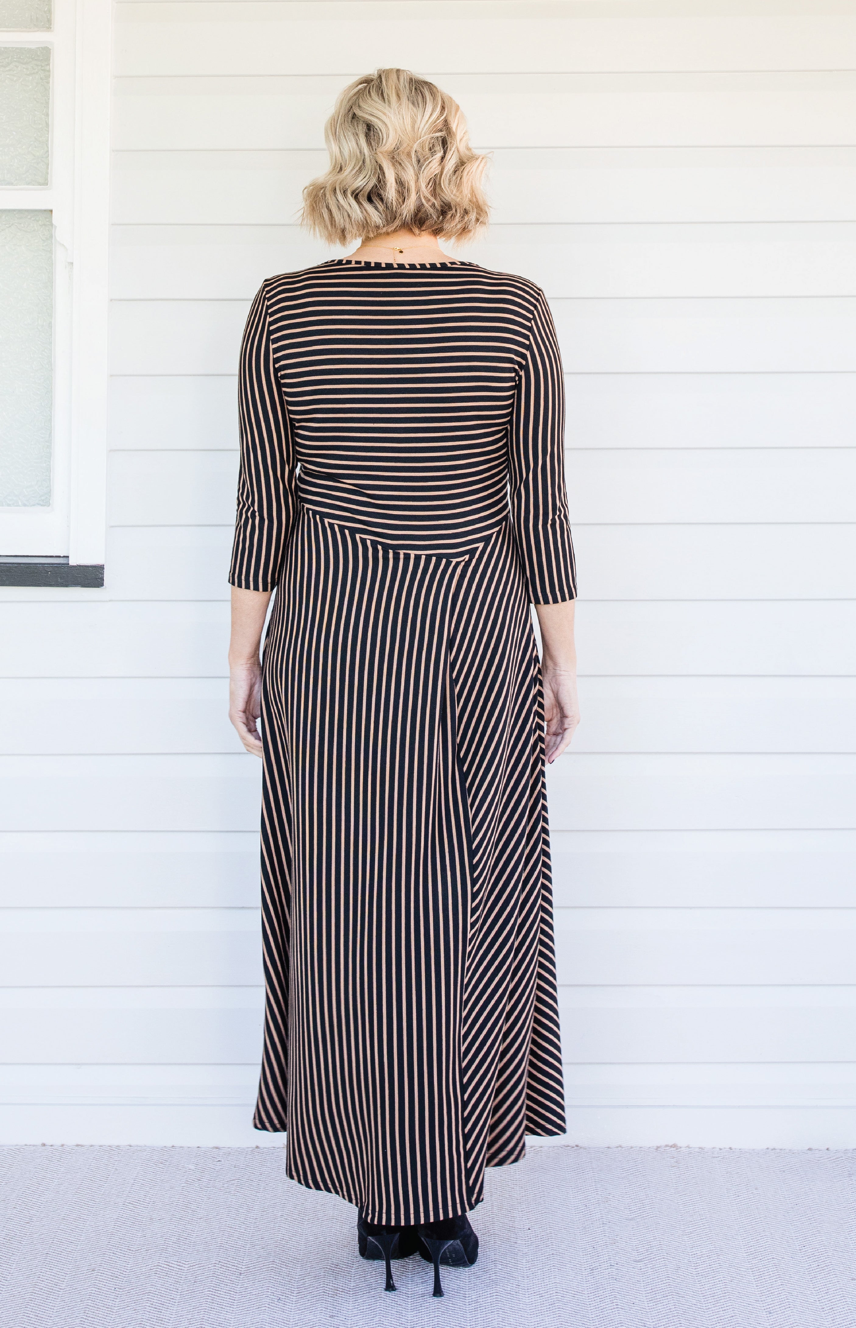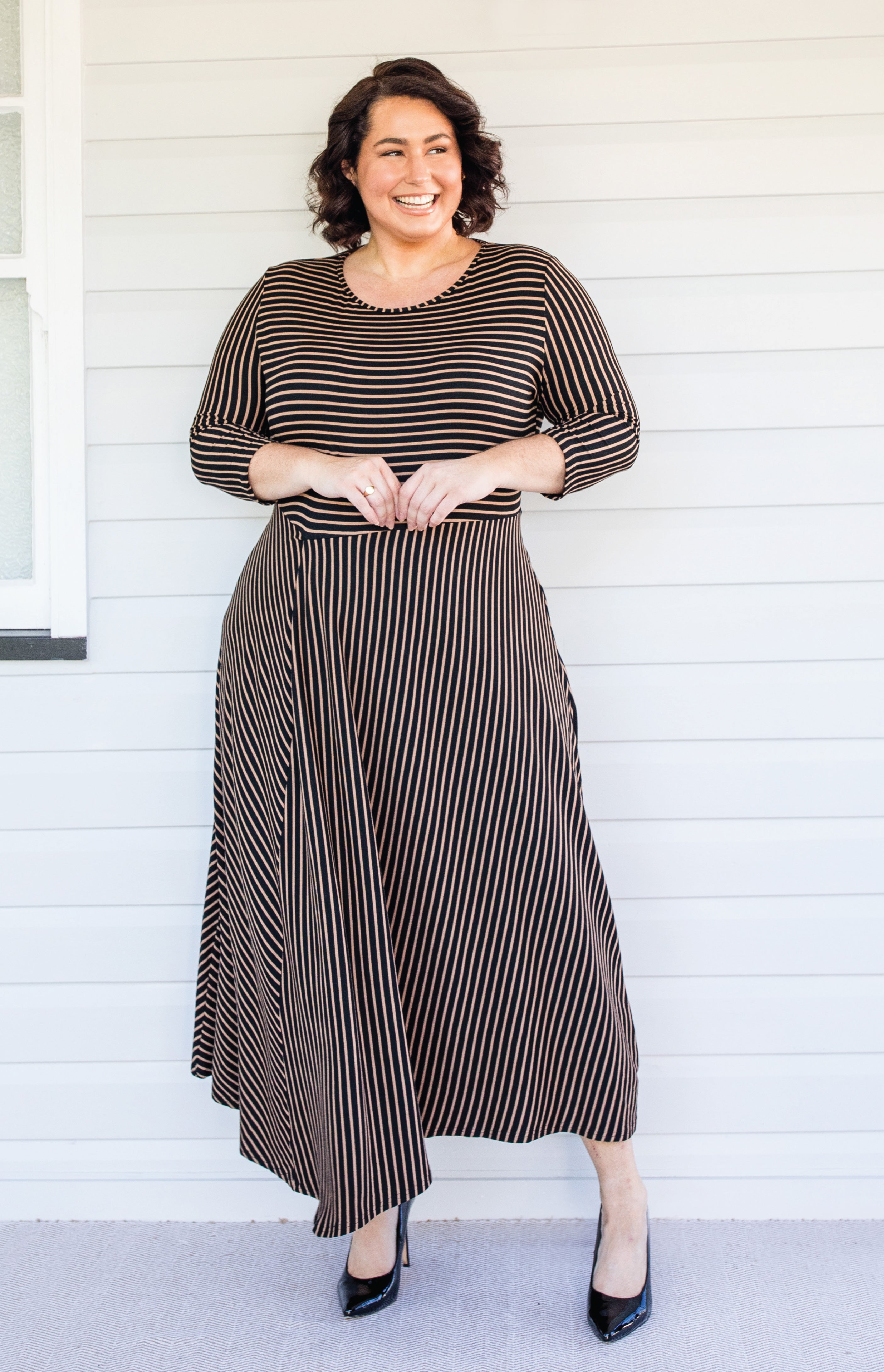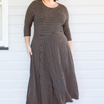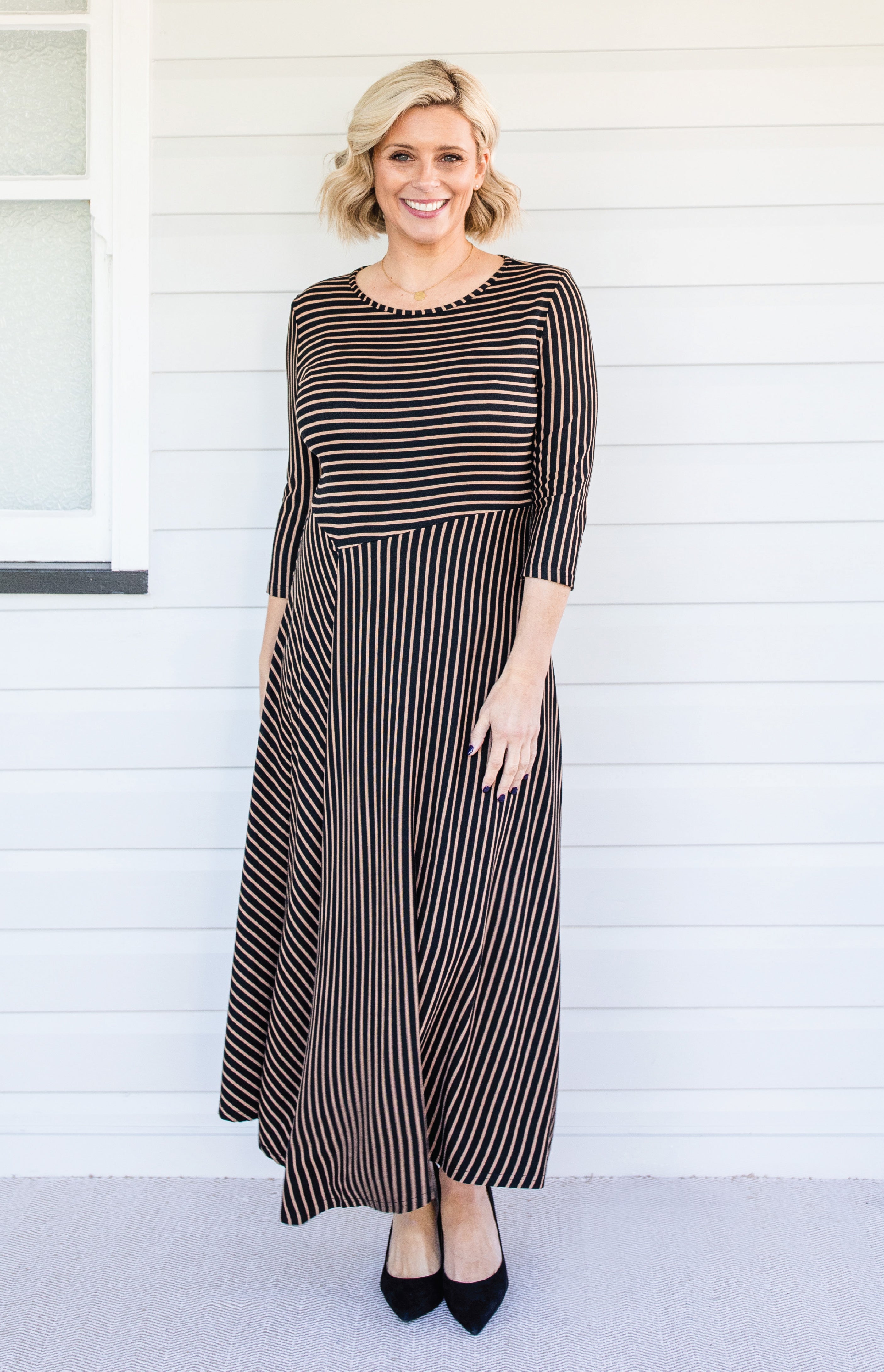 Zoe Dress 3/4 Sleeve in sienna stripe