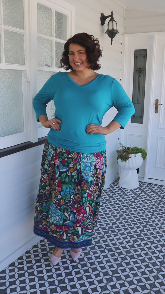 This clever little top is like a fashion transformer…choose the scooped or the v neckline… the choice is yours!