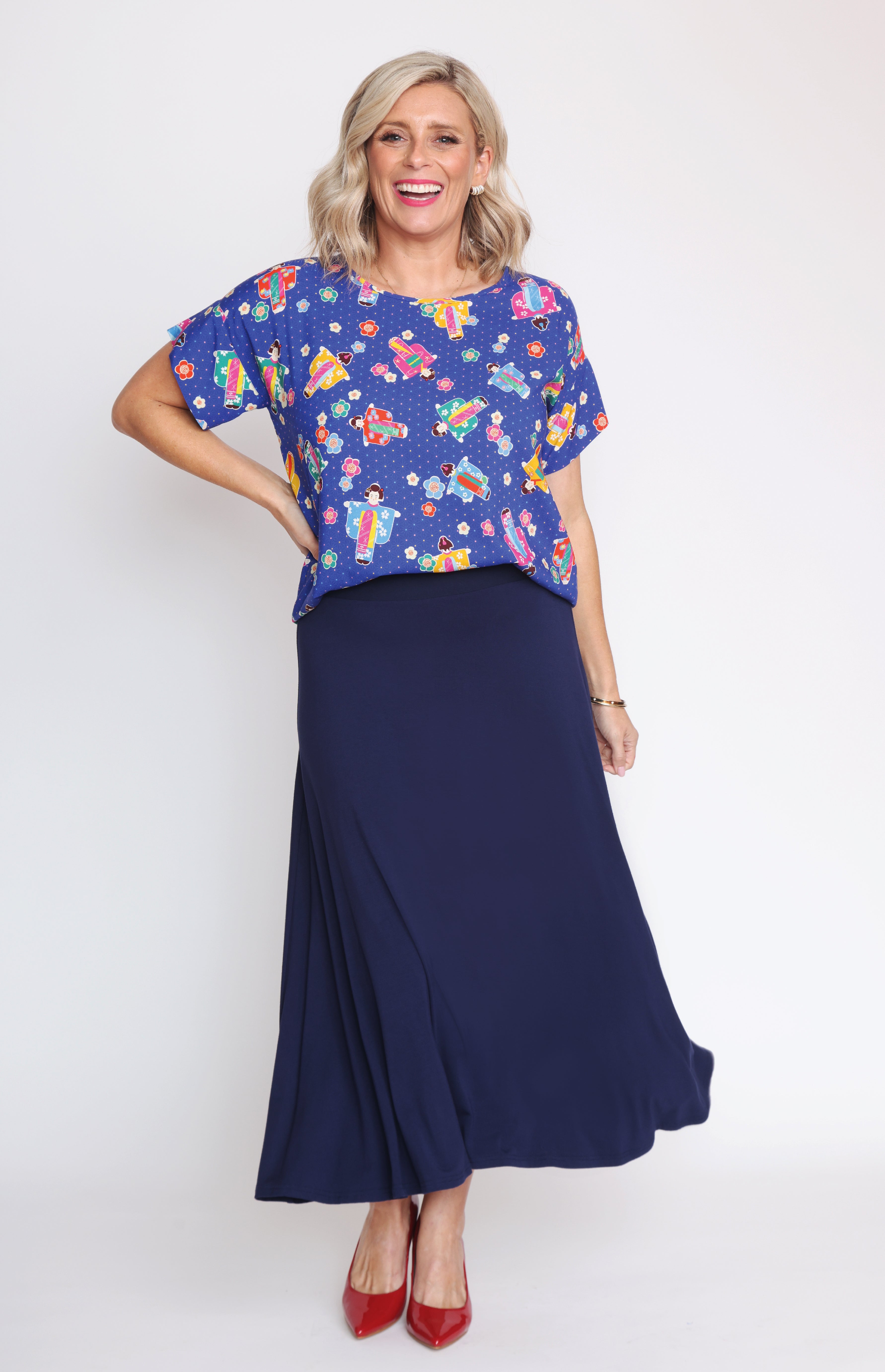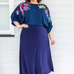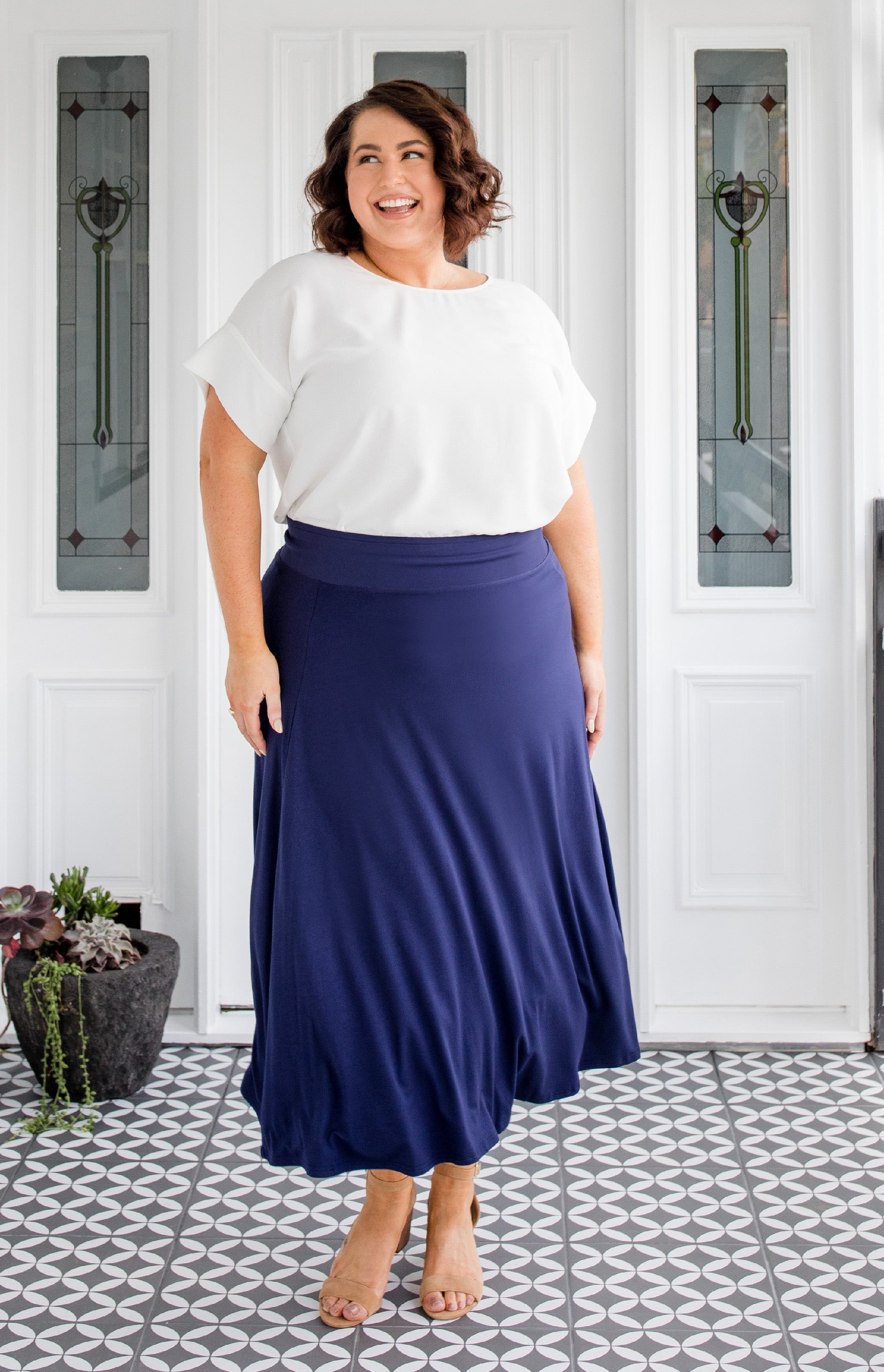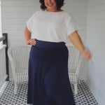 Fashioned in our beautiful bamboo jersey, with a thick stretchy ponte yoke. The ponte yoke will hold you in, and the bamboo skirt feels oh so soft and comfortable to wear.