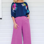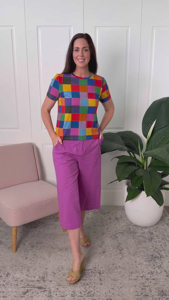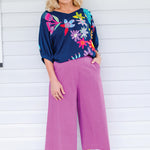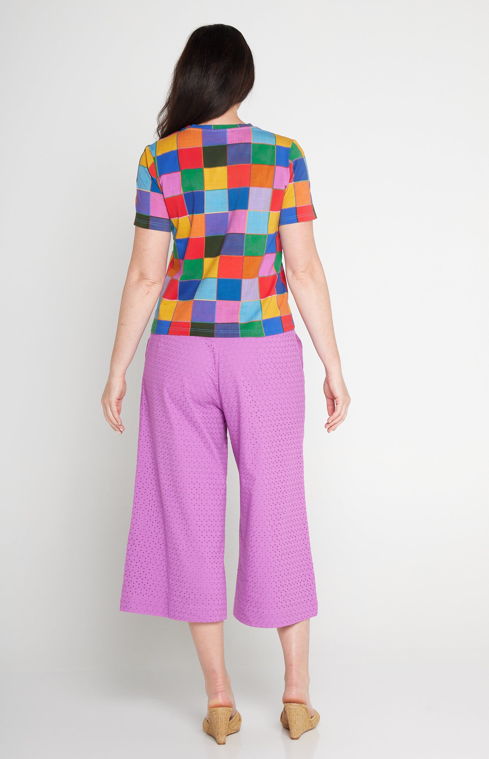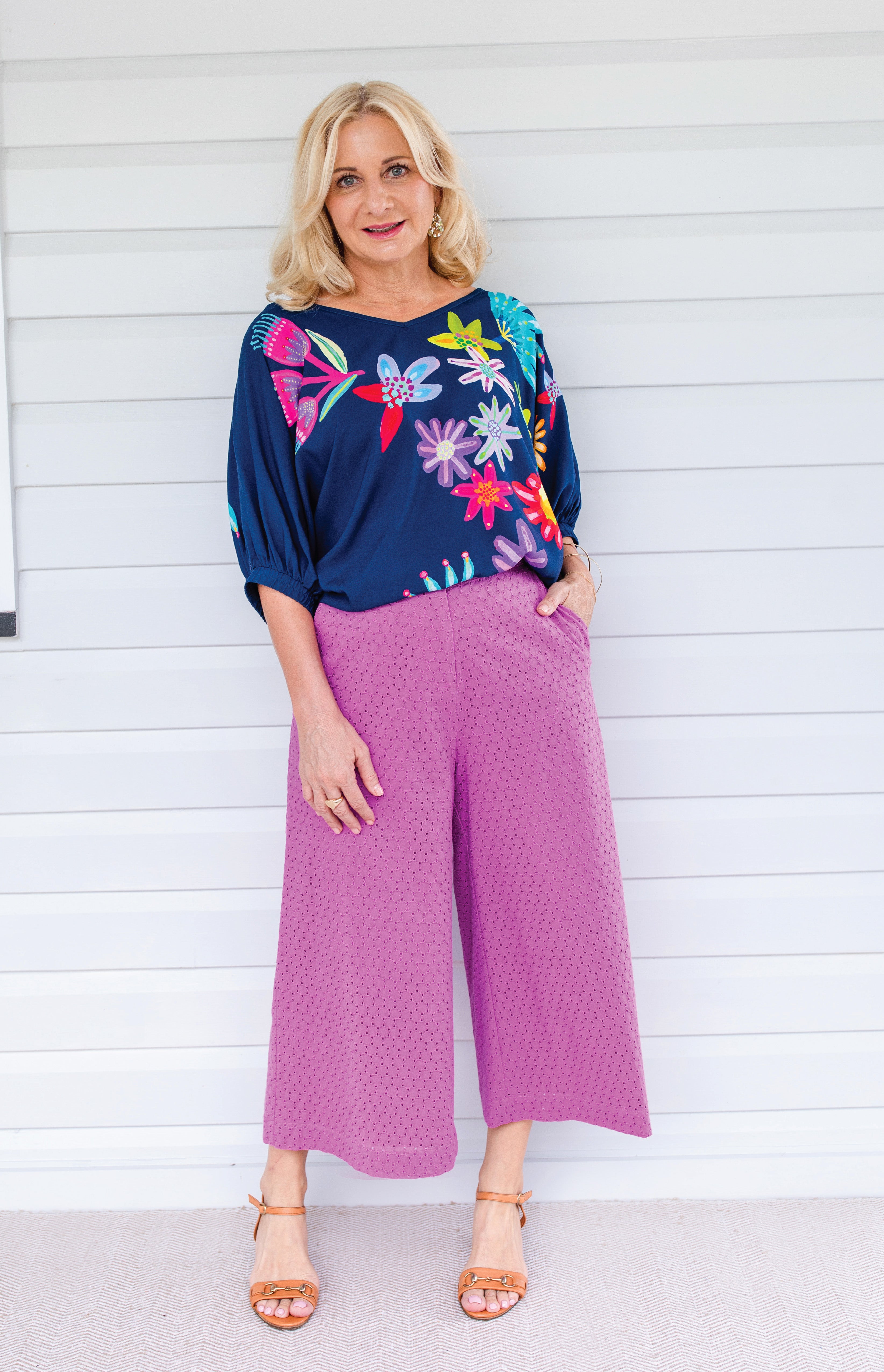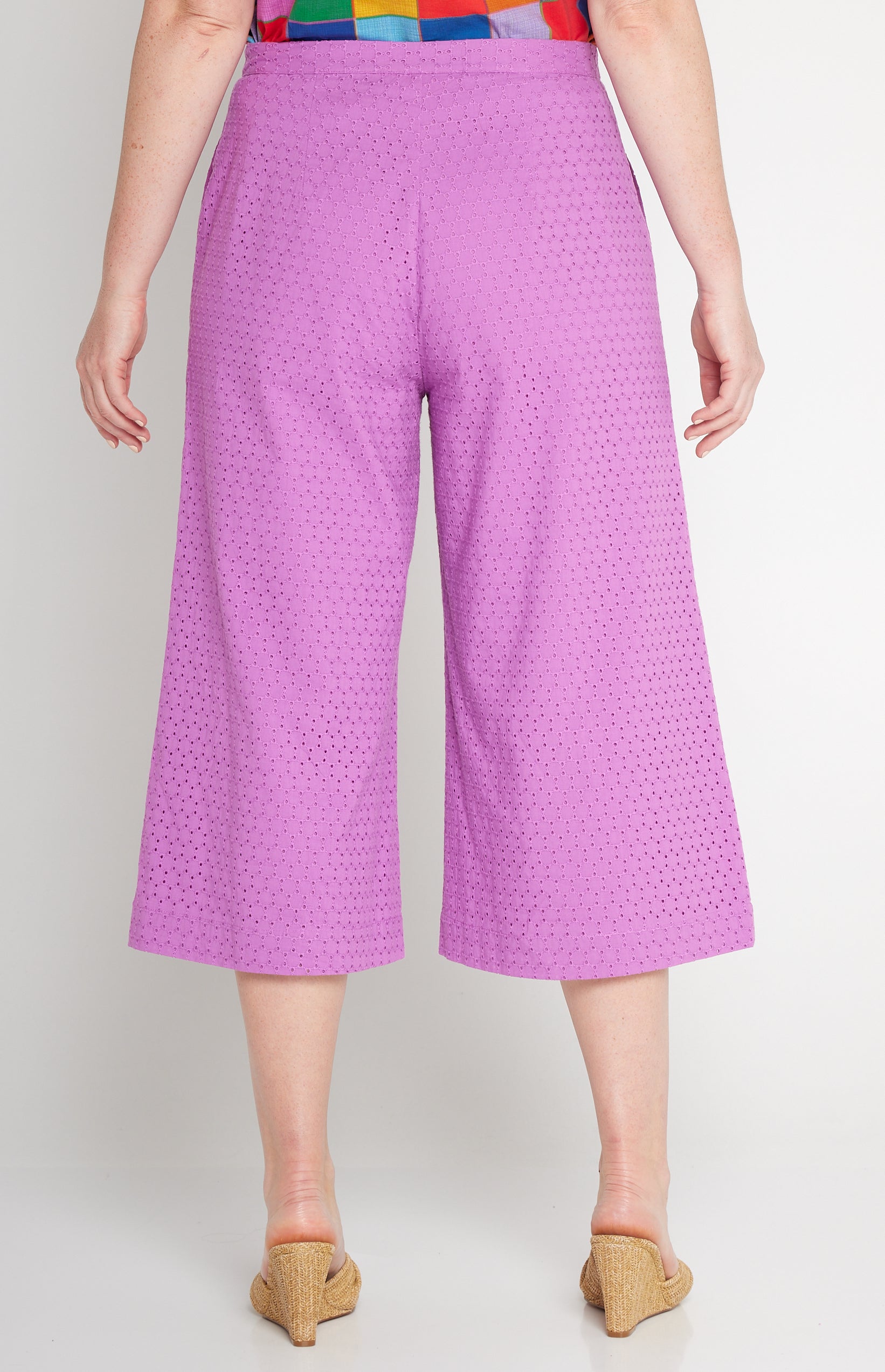 Step out in style and comfort in the Jane, she is the perfect wear anywhere pant, with her wide cropped leg. These ones are fashioned in a gorgeous lilac broderie lace.