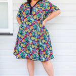 This dress is not as easy fitting as our Holiday Dress - if you are bigger in the bust or shoulders - then go up a size in this dress for an easier fit.