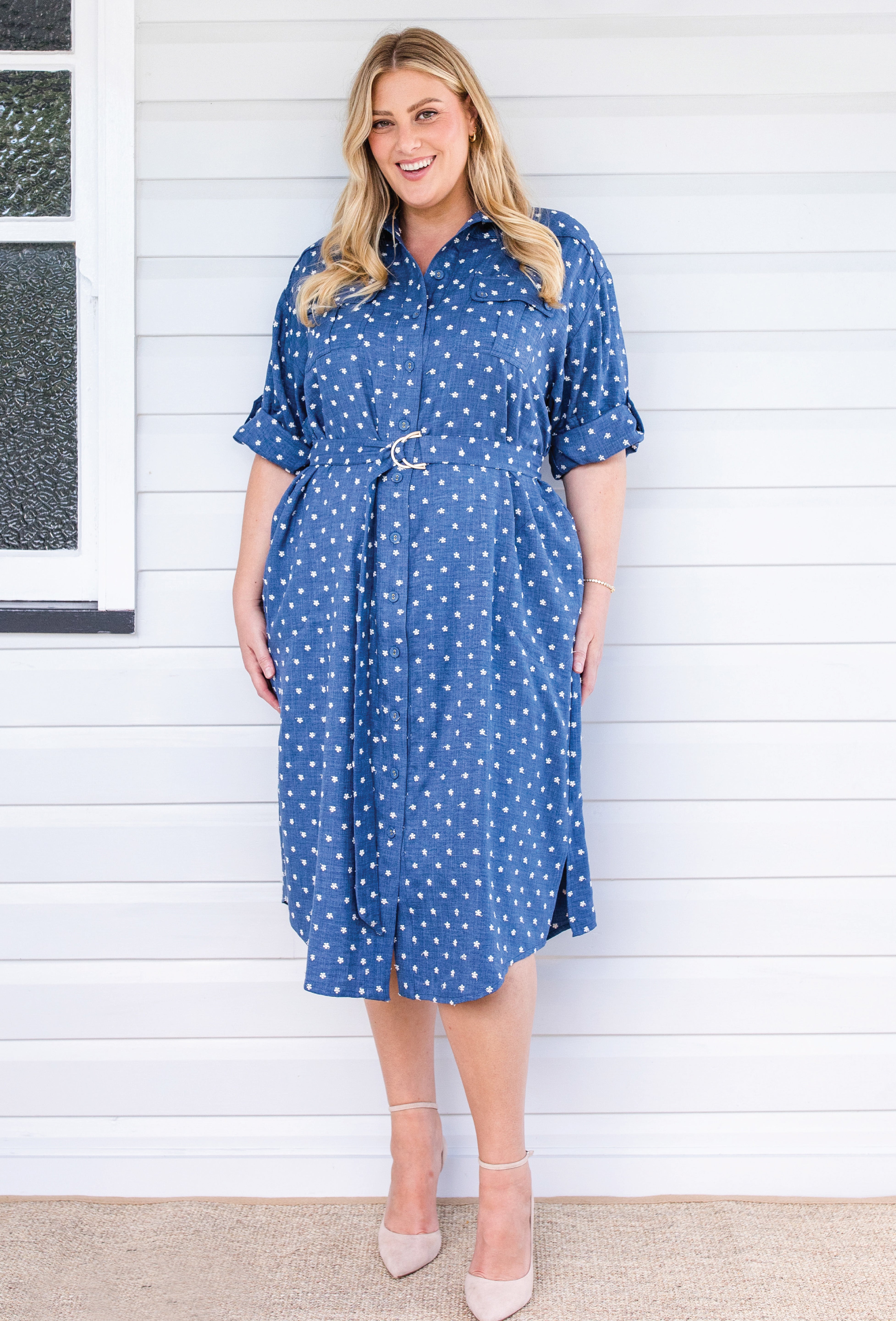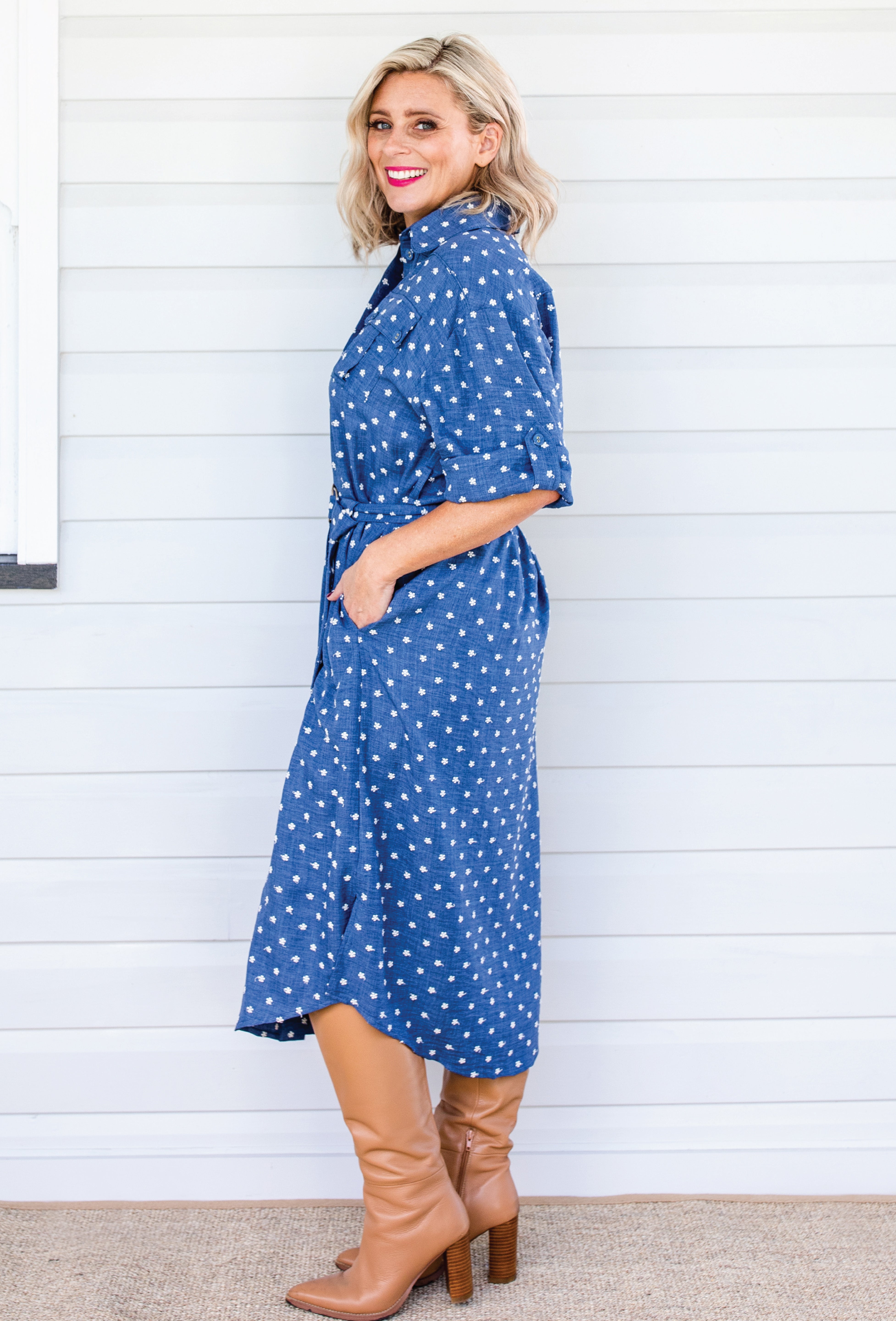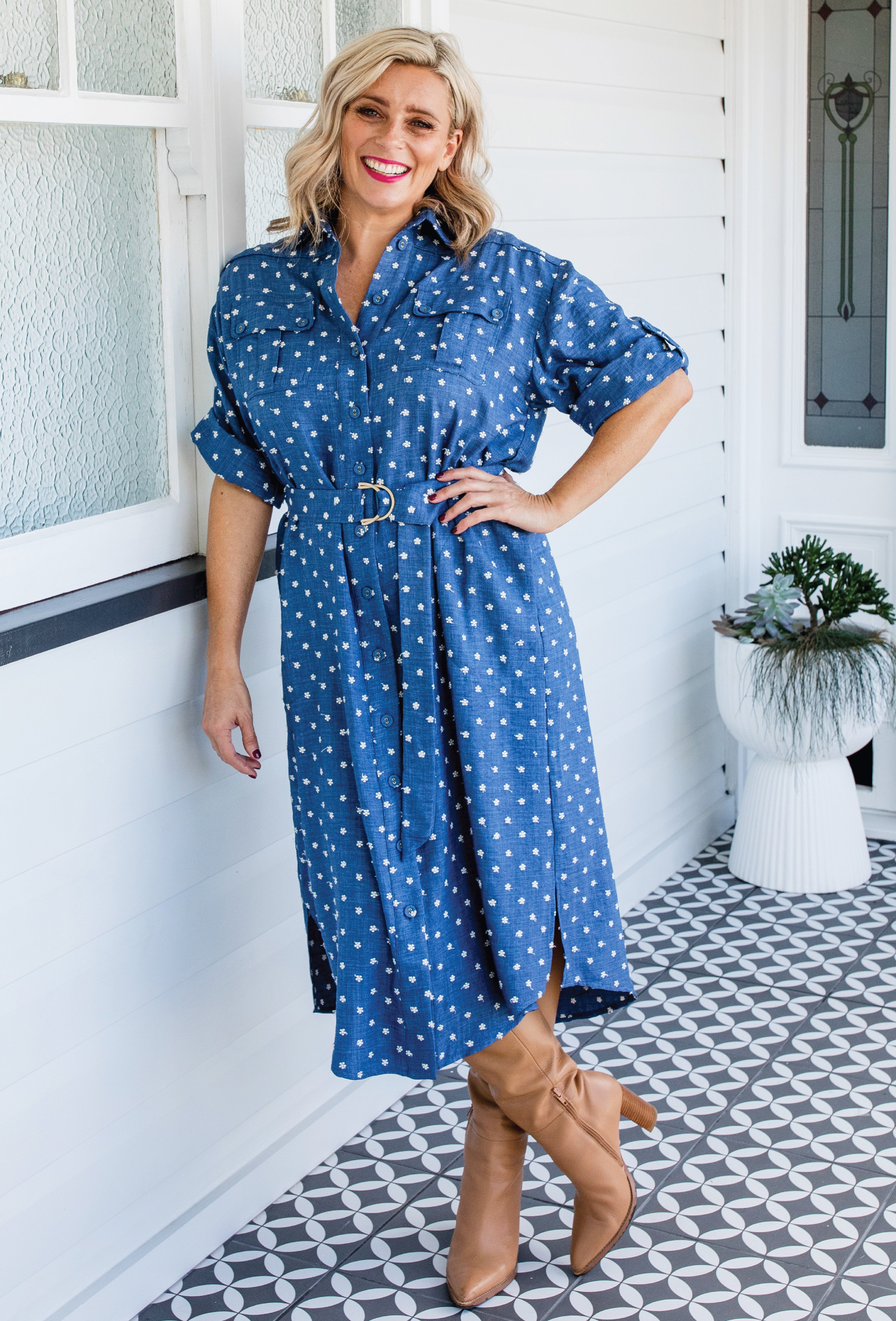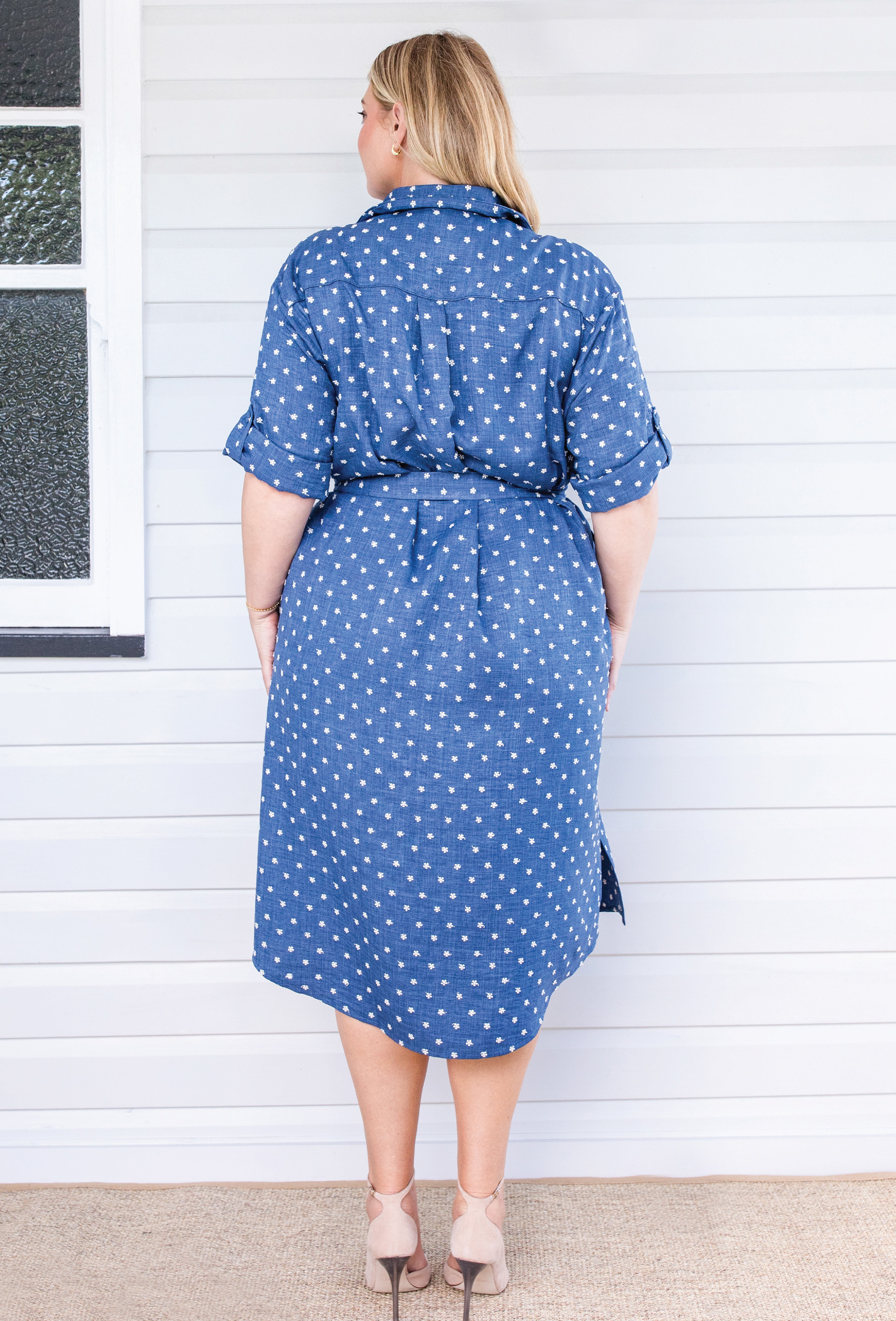 Stylish and effortlessly elegant, our new Alison Shirt Dress in floral denim is the perfect throw on and go style that you'll wear and love forever.
