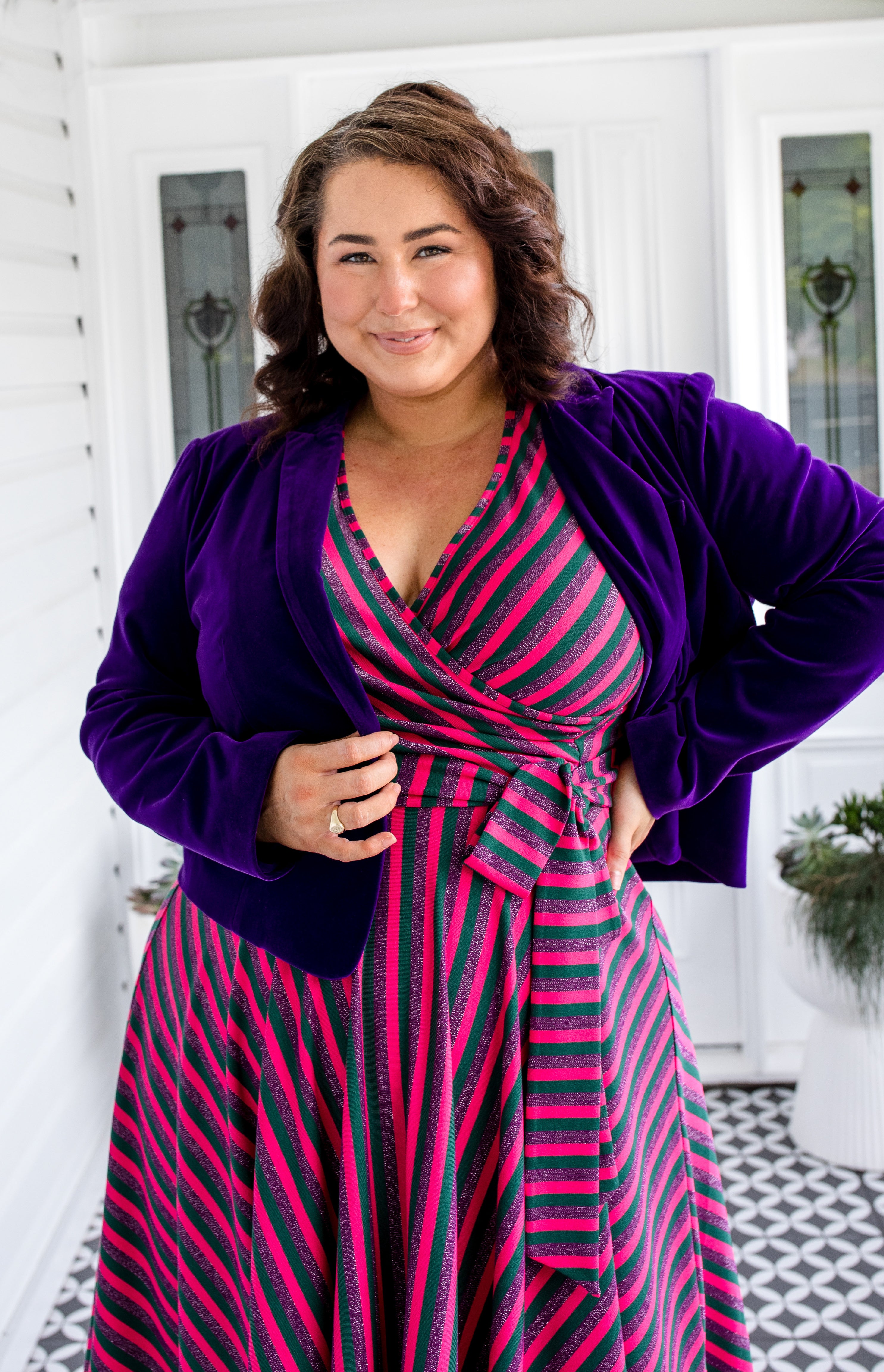 The perfect match... pair this frock with our Perfect Velvet Blazer in amethyst.