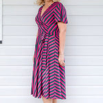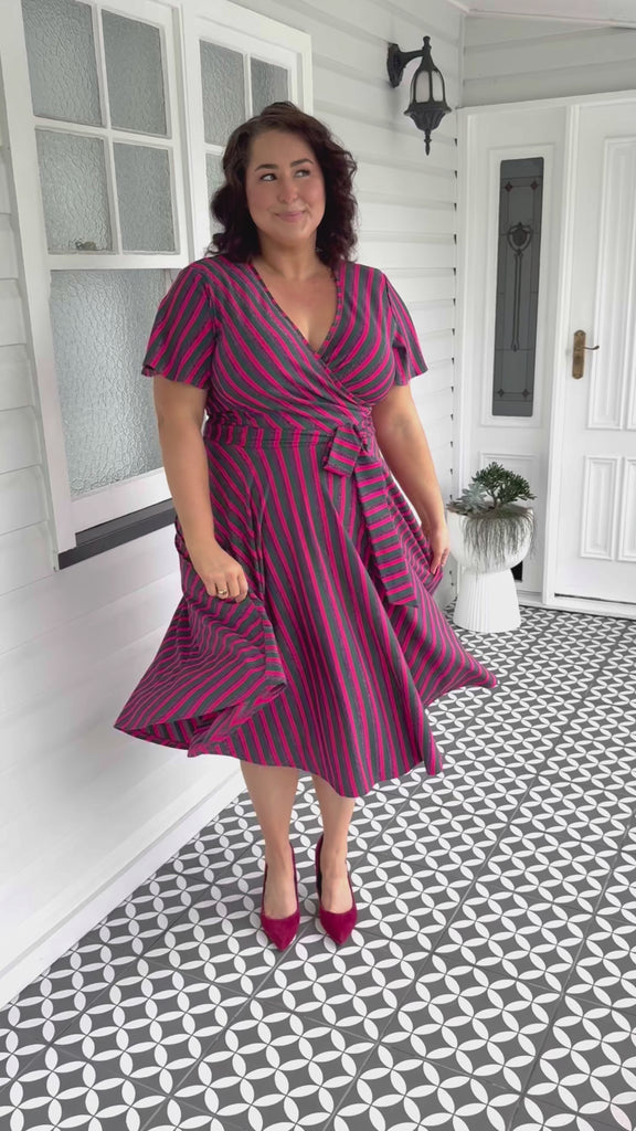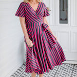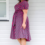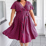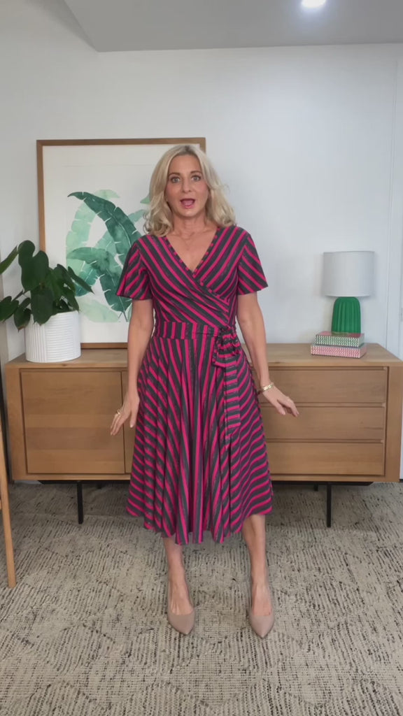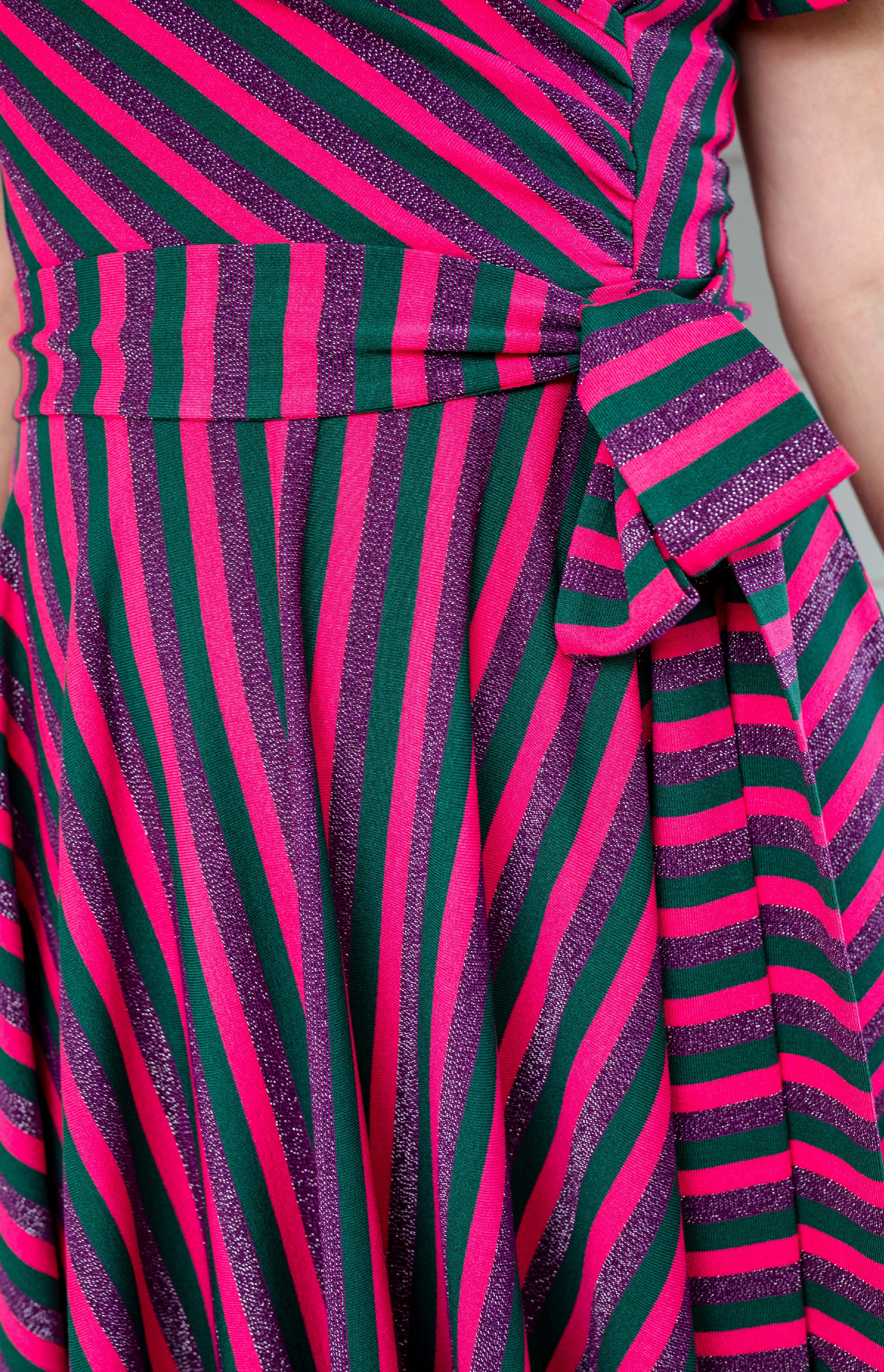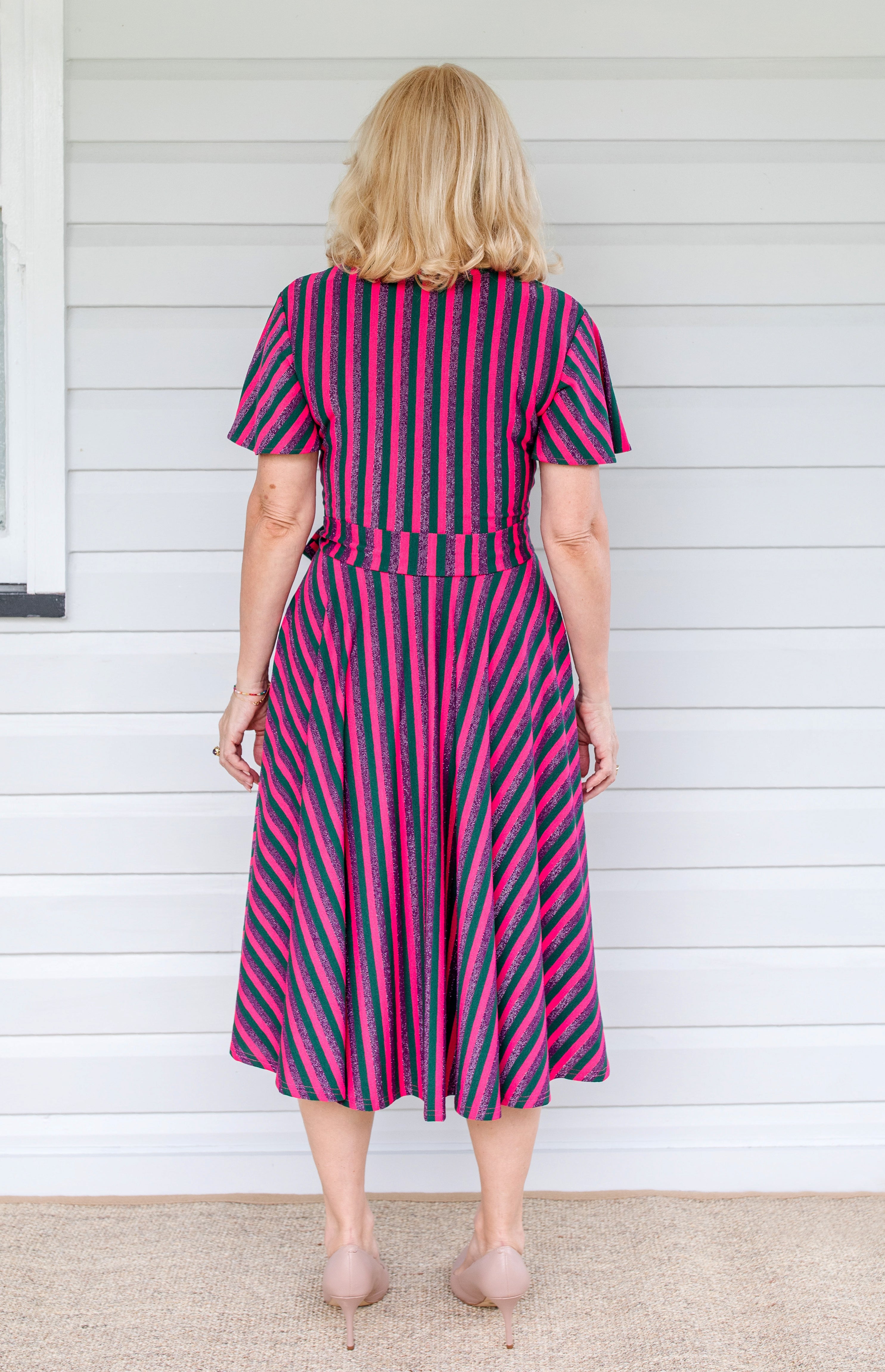 Guaranteed to make you shine, our Arabella Dress is winter wardrobe perfection in these opulent metallic stripes. This dress will be sure to turn every head in the room at your next special event.