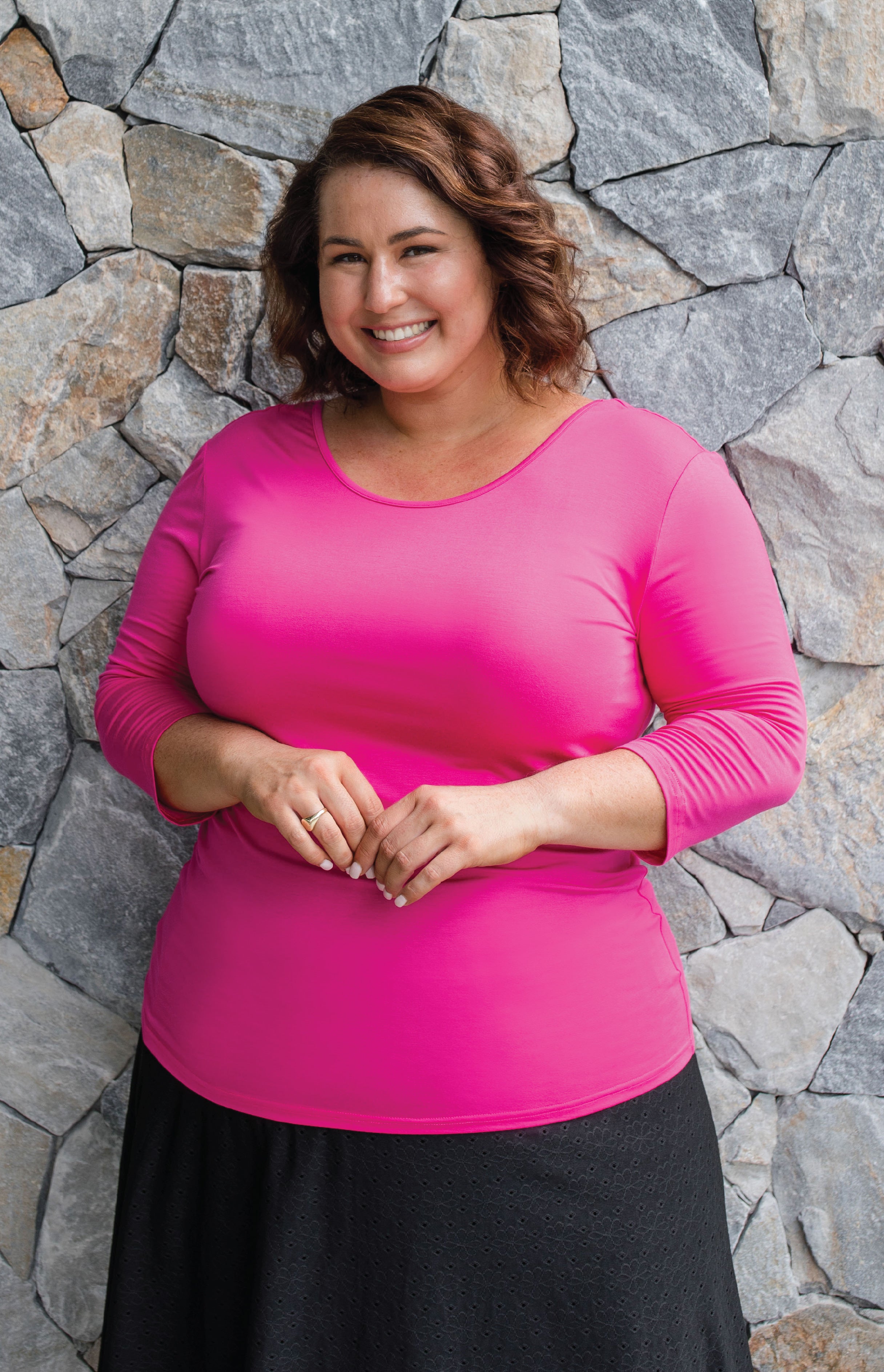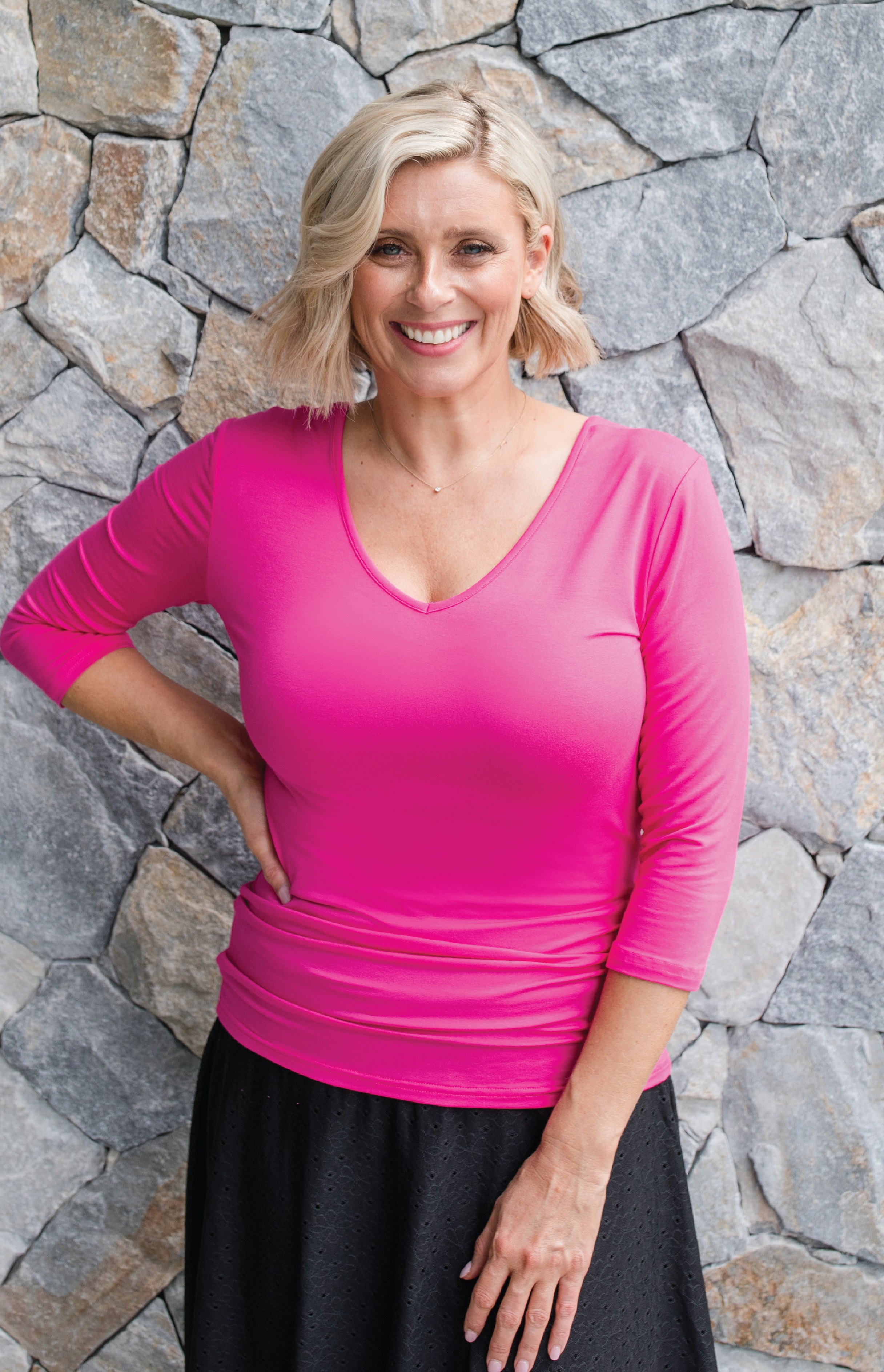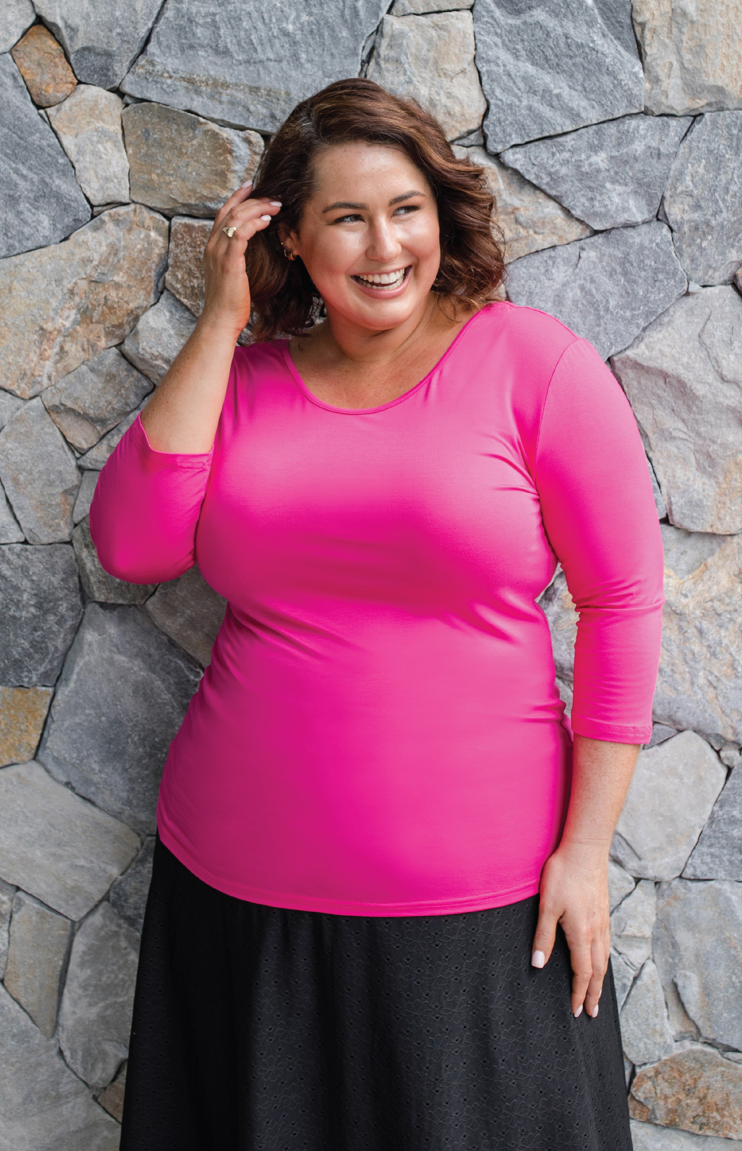 Bamboo Reversible Tee 3/4 sleeve in neon pink
