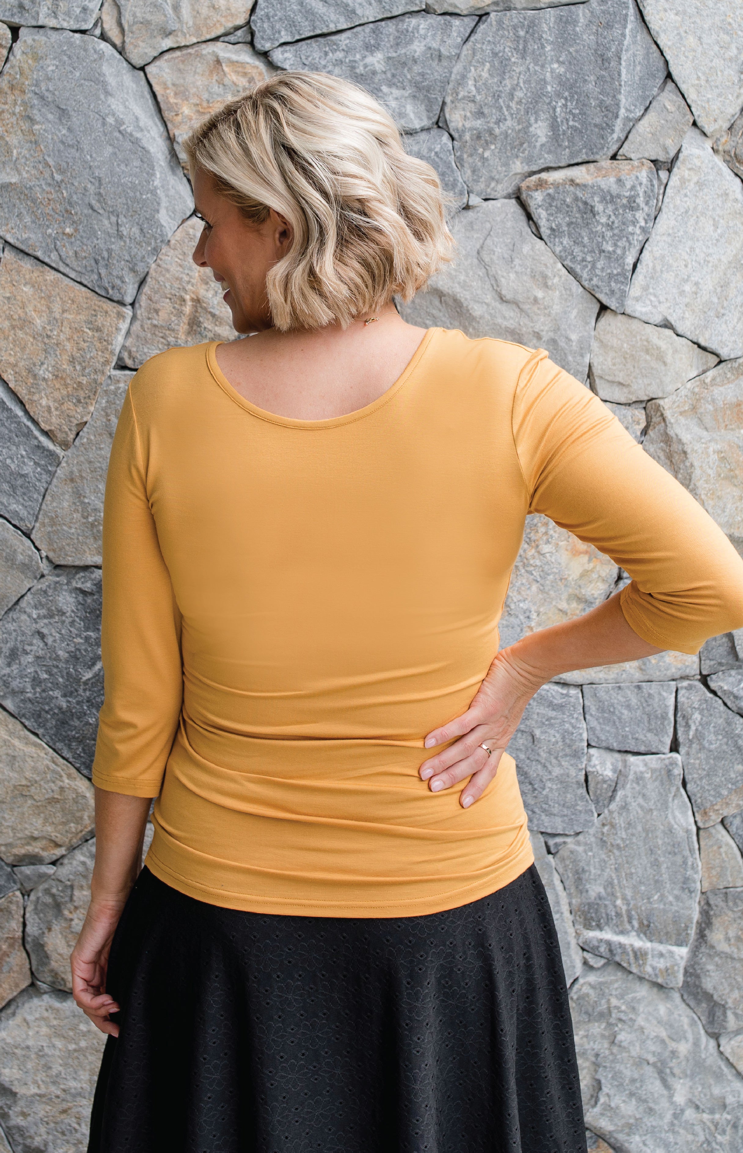 Bamboo Reversible Tee 3/4 sleeve in saffron