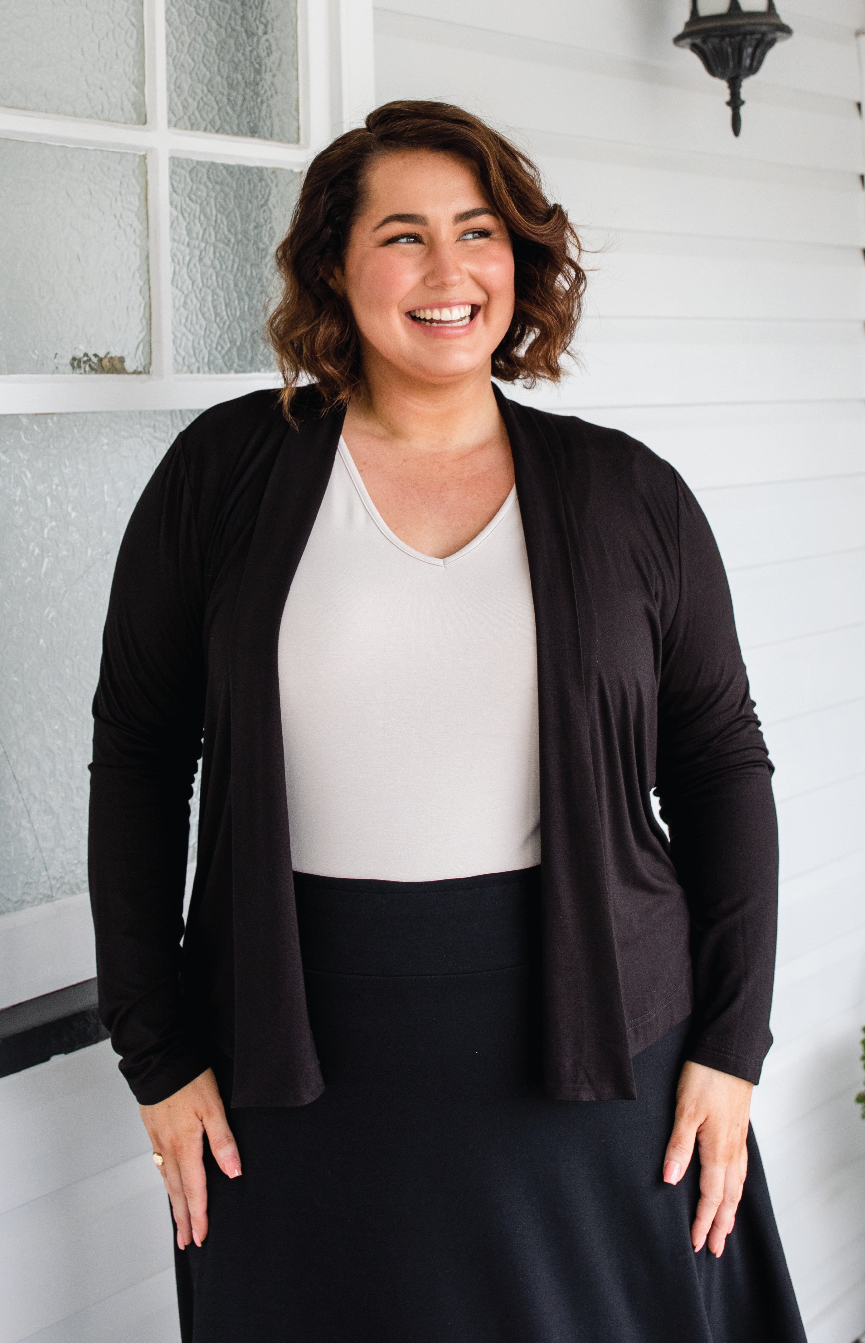 Our Bella Cardie in buttery soft, breathable bamboo is the perfect layering piece that you will wear and love forever.